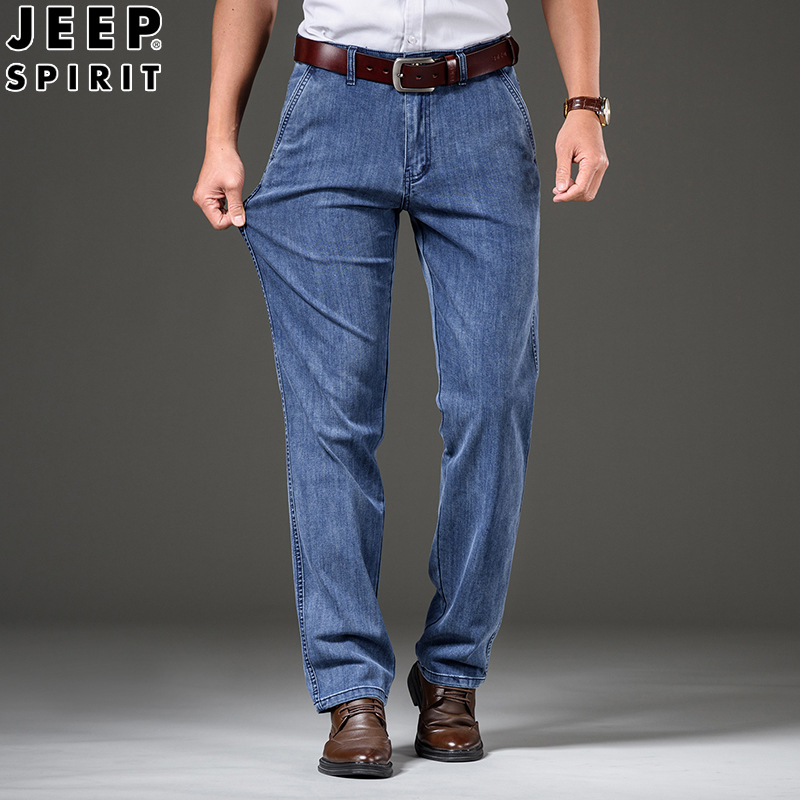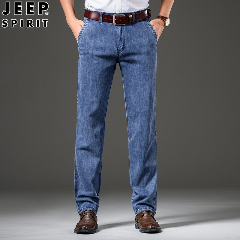 服饰配饰>男装>牛仔裤> JEEP SPIRIT春夏新款牛仔裤男士宽松直筒商务休闲长裤中年大码弹力裤子男 H-J768A