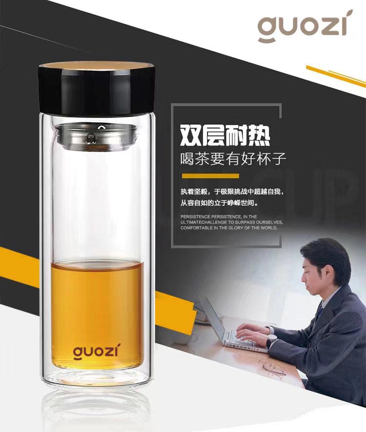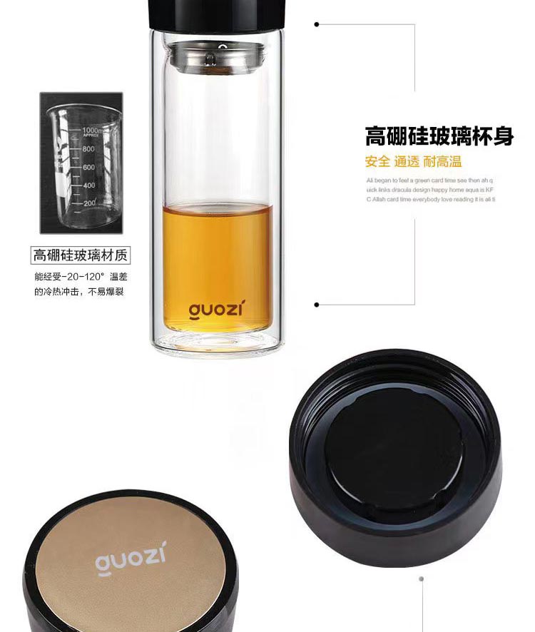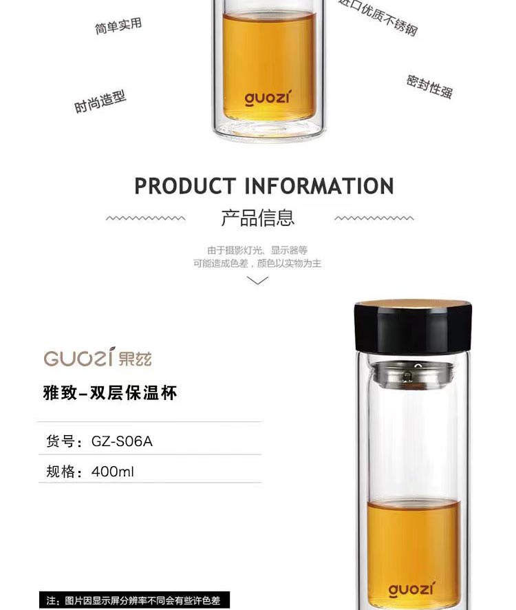 GUOZI果兹雅致双层保温杯GZ-S06A双层男士车载保温杯直身杯子办公室泡茶水杯大容量400ml