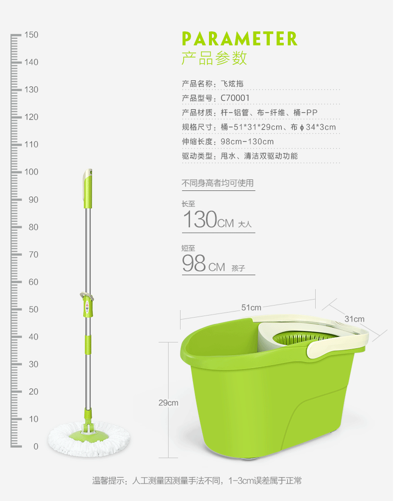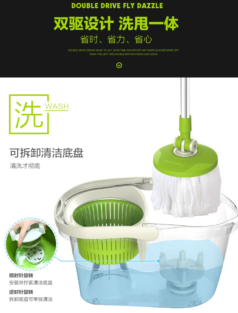 日用百货>家庭清洁>扫把/拖把> 茶花超炫拖·手压式双驱动旋转拖把C70001