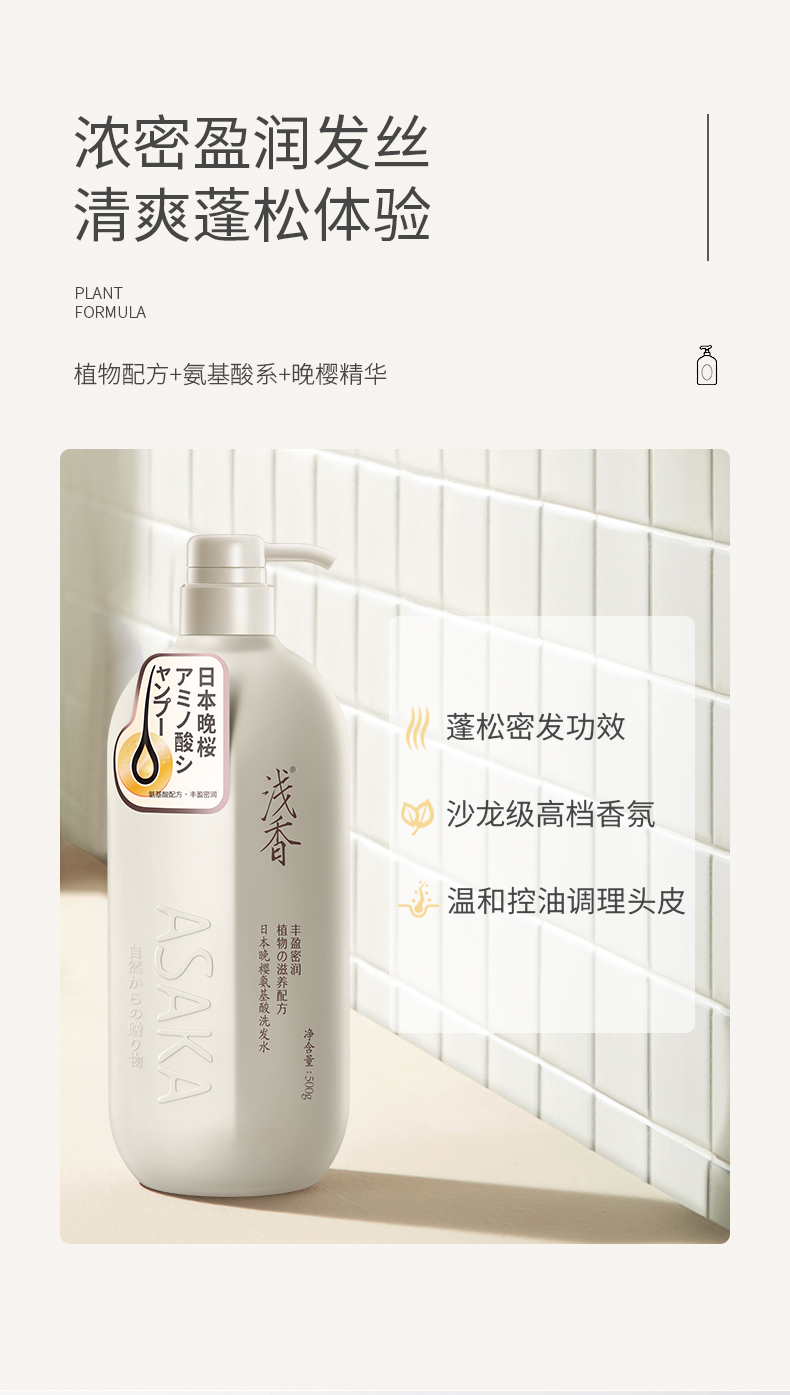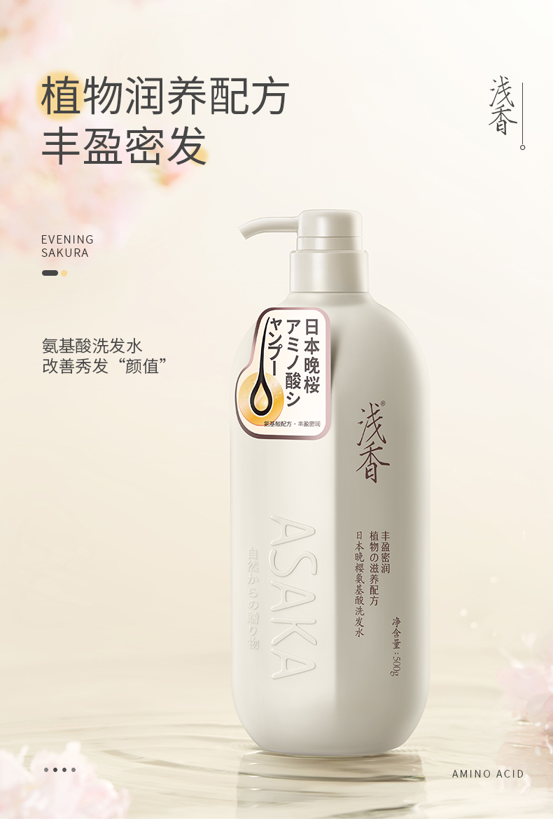 浅香(ASAKA)日本晚樱氨基酸洗发水丰盈蓬松持久留香柔顺经典版洗发水 750g