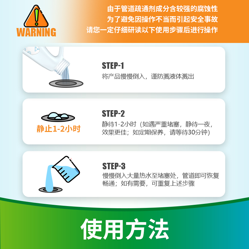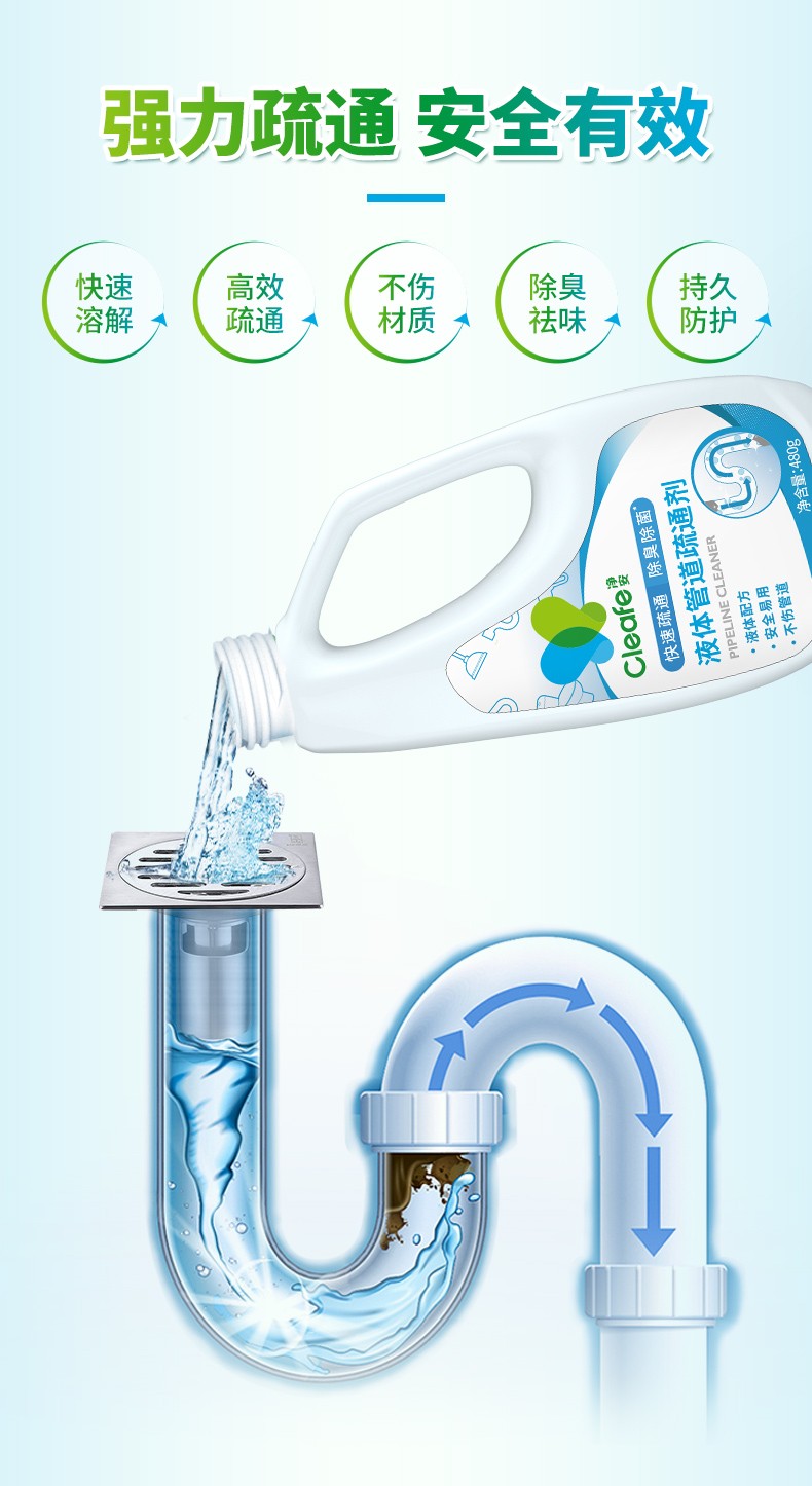 净安管道疏通剂下水道疏通剂马桶管道地漏清洁疏通神器480g*3