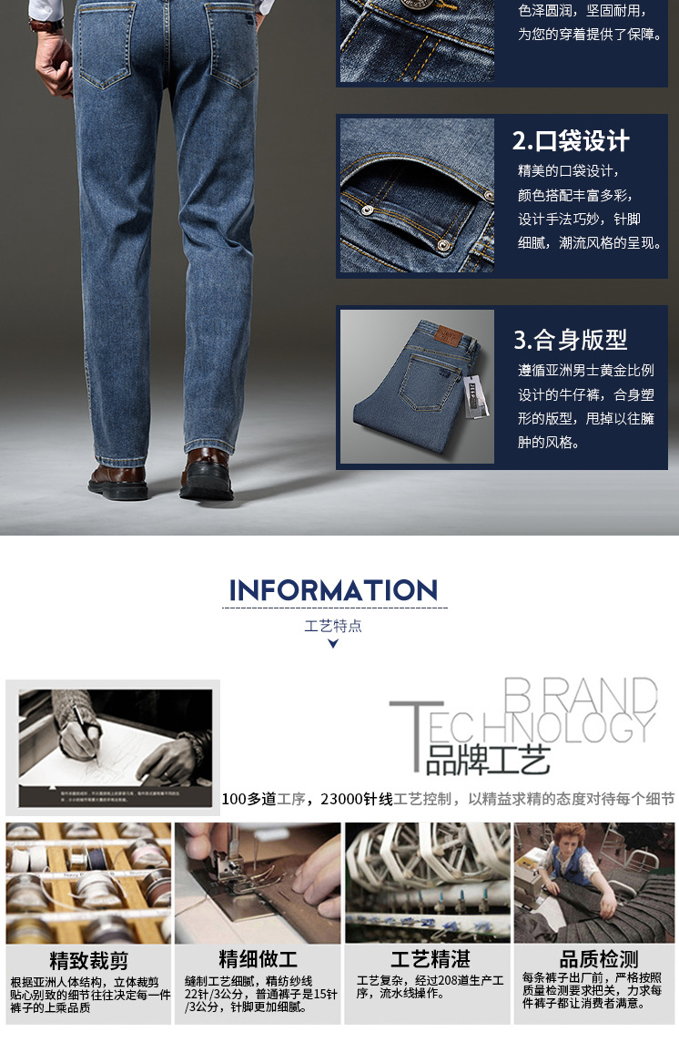 JEEP SPIRIT秋冬季新款男式休闲牛仔裤休闲舒适透气百搭时尚潮流经典SD-8013