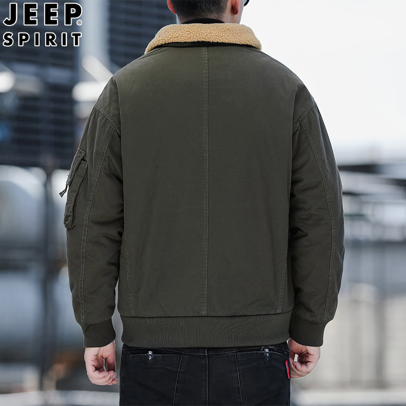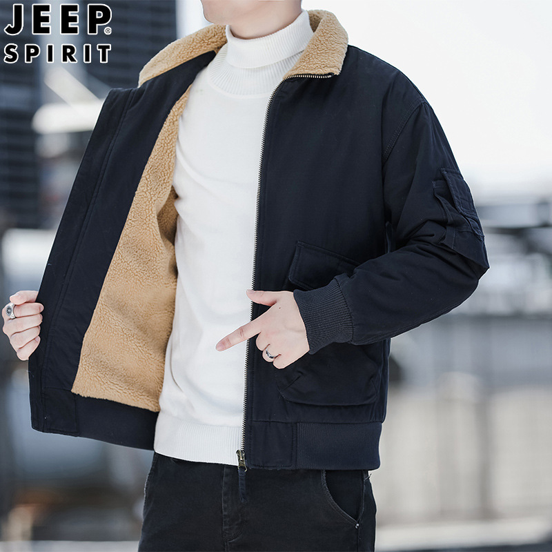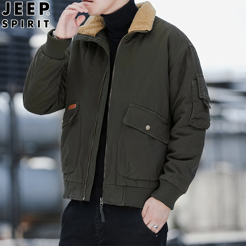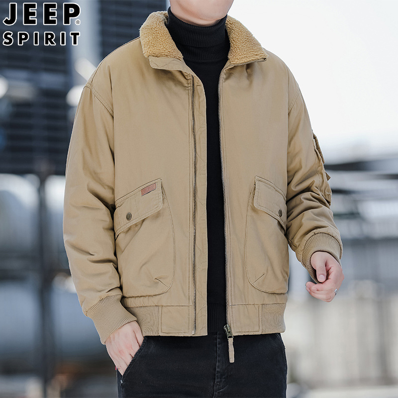 JEEP SPIRIT秋冬加厚棉衣男工装棉服外套男立领中年水洗棉袄宽松纯色H-83679
