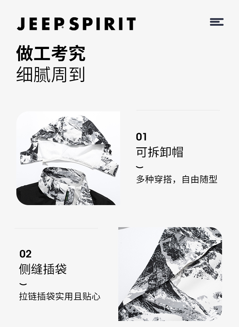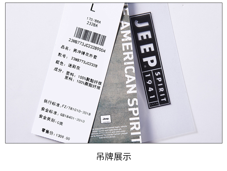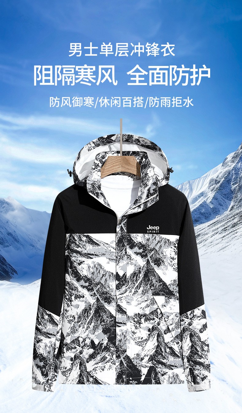 JEEP SPIRIT秋冬季新款男式单层冲锋衣防风御寒休闲百搭防御拒水透气舒适JP6525
