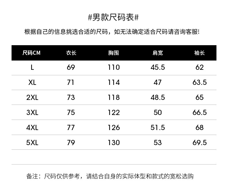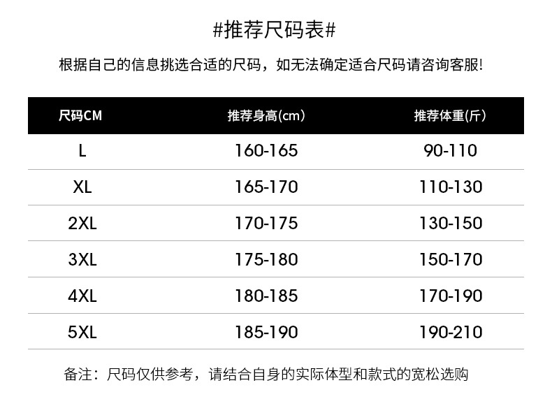 规格 :L XL 2XL 3XL 4XL 5XL 6XL