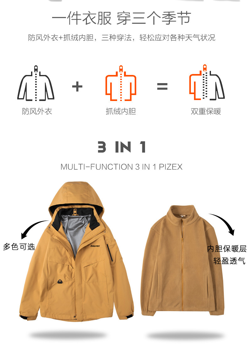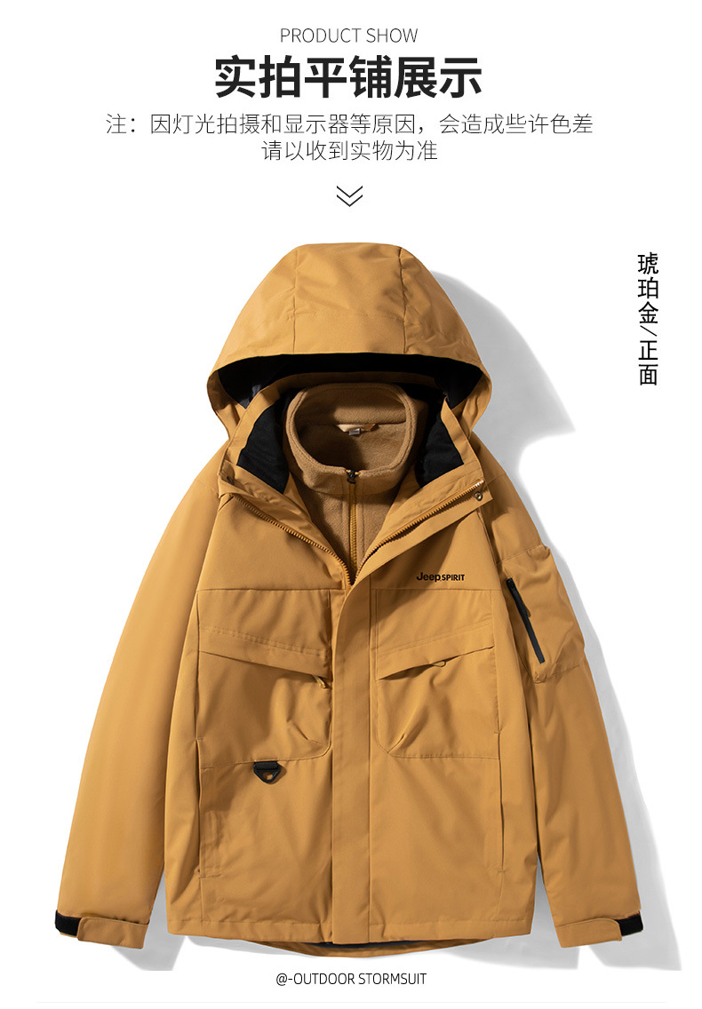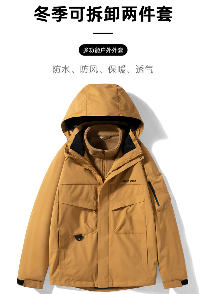 JEEP SPIRIT秋冬季新款男式休闲冲锋衣防风连帽设计防水透气面料防刮耐穿JP6533