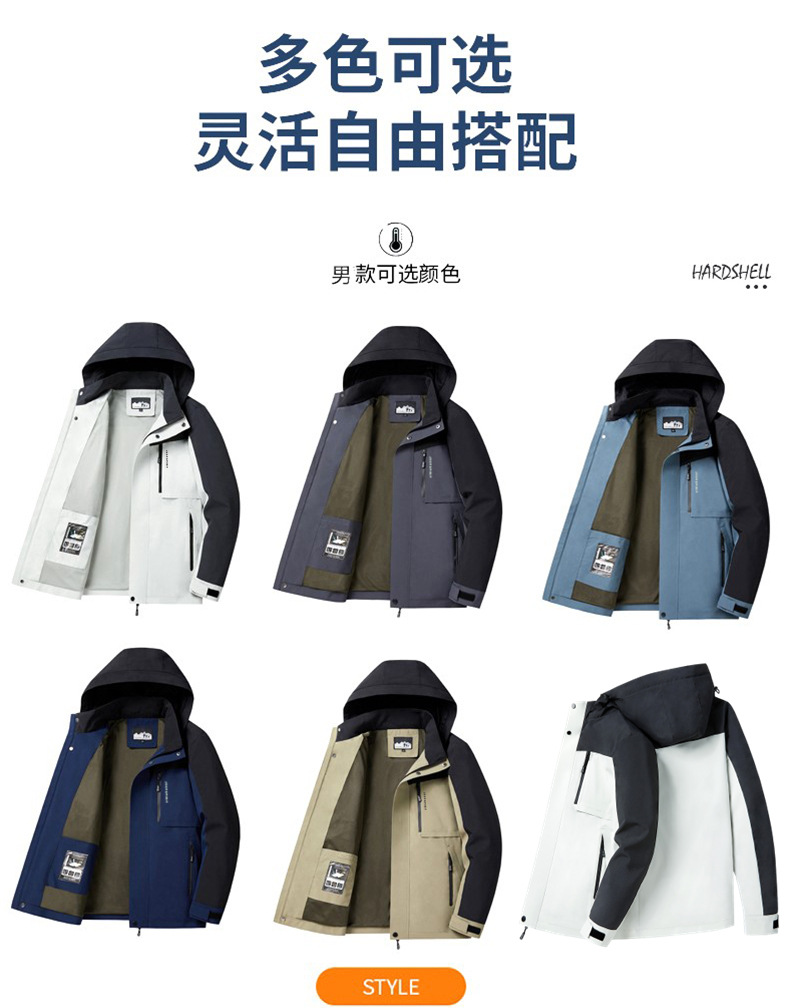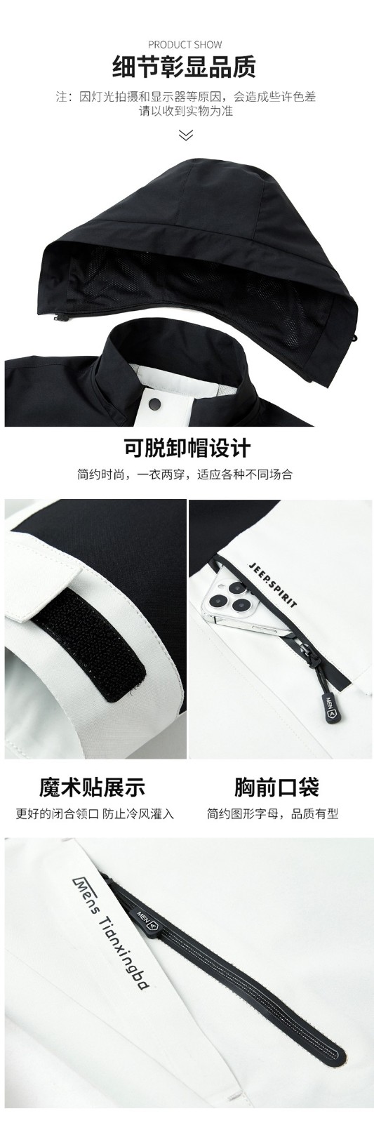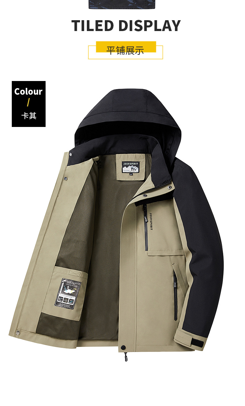 JEEP SPIRIT秋冬季新款男式冲锋衣耐洗耐磨防风透气舒适柔软面料HM-0701