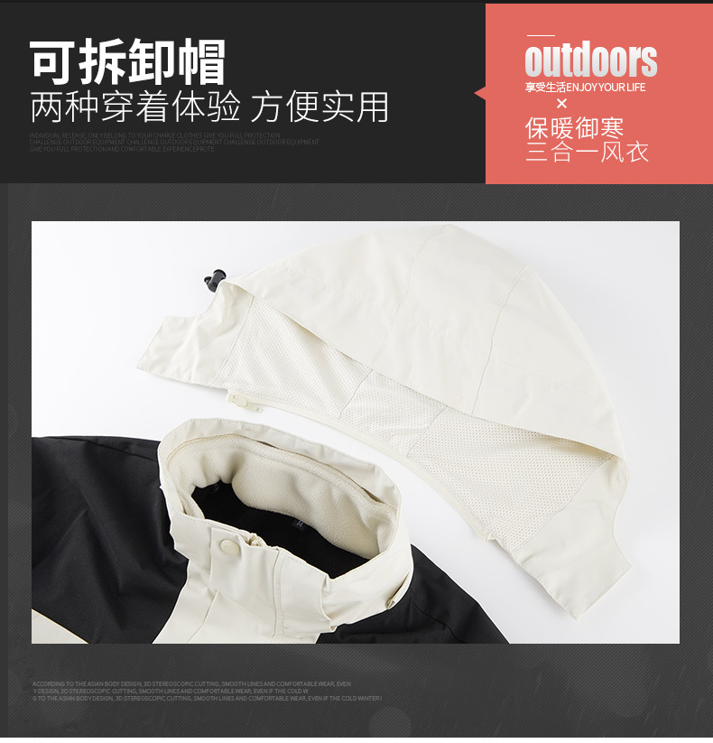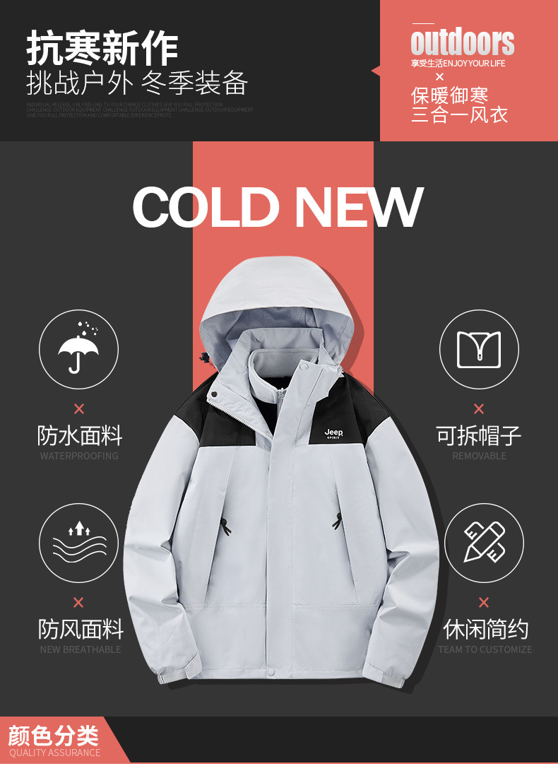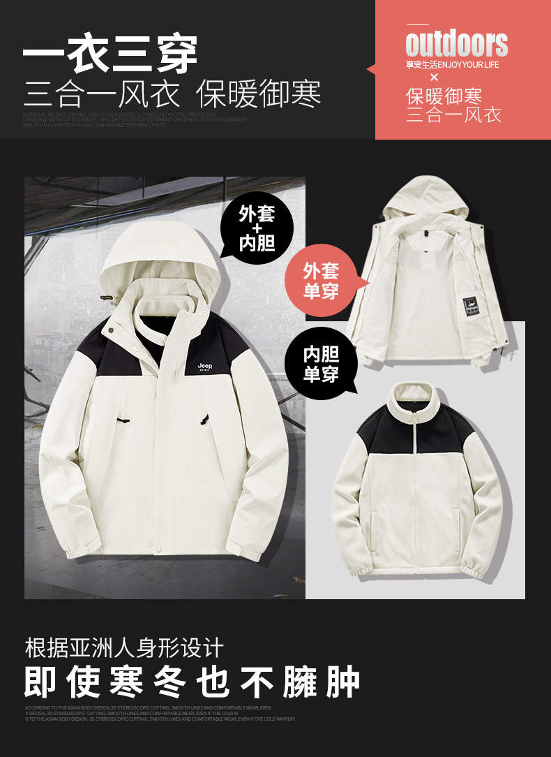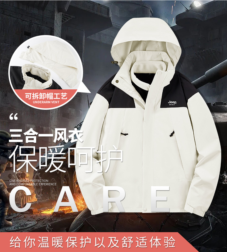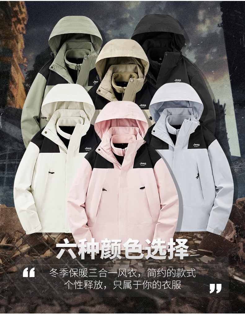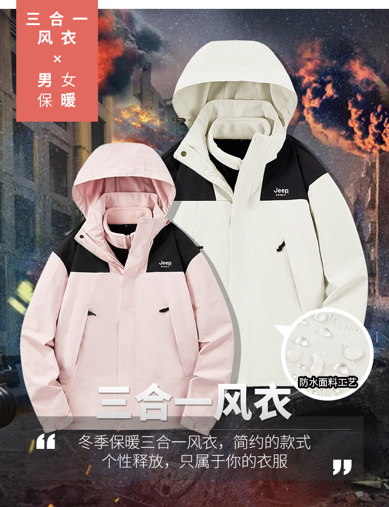 JEEP SPIRIT秋冬季新款男女情侣款休闲冲锋衣防水防风三合一透气保暖JP6558