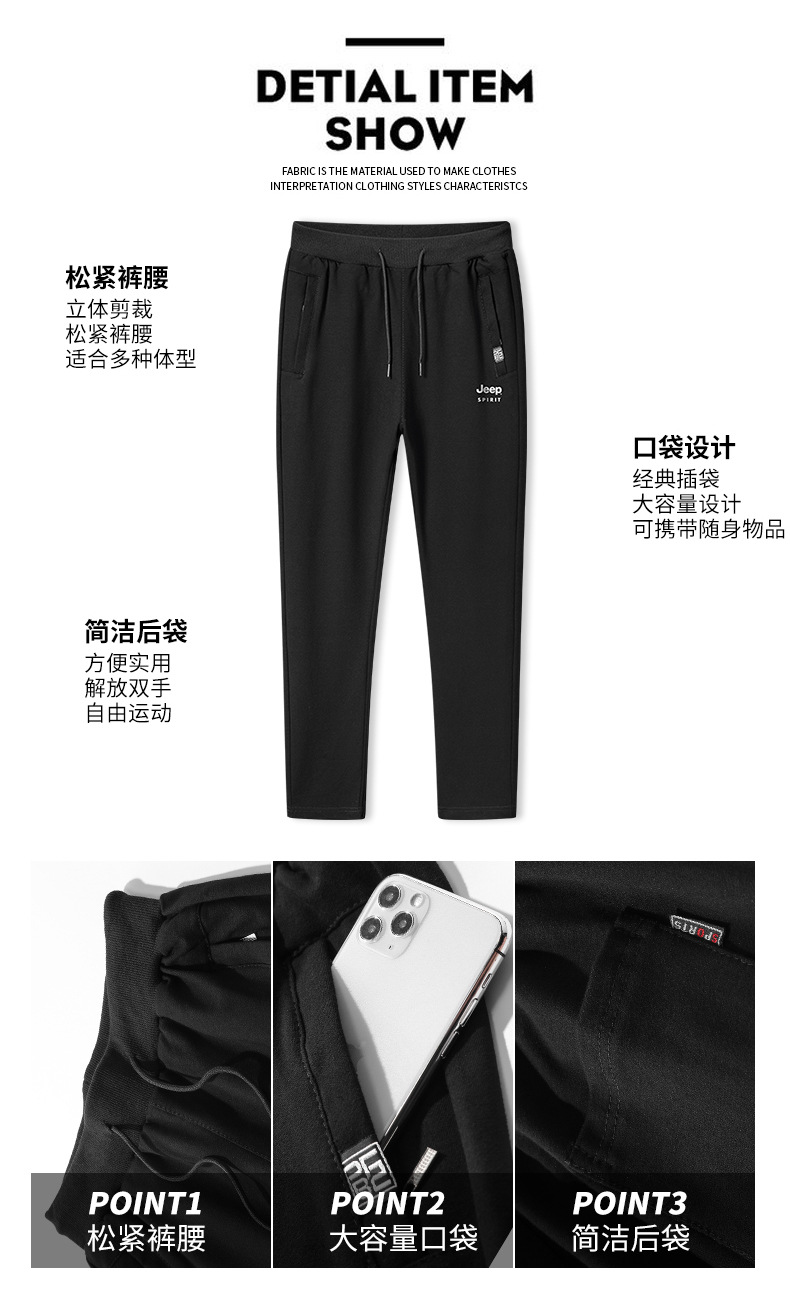 JEEP SPIRIT秋冬季新款男式休闲加绒裤柔软舒适防盗口袋舒适裤脚SP1818