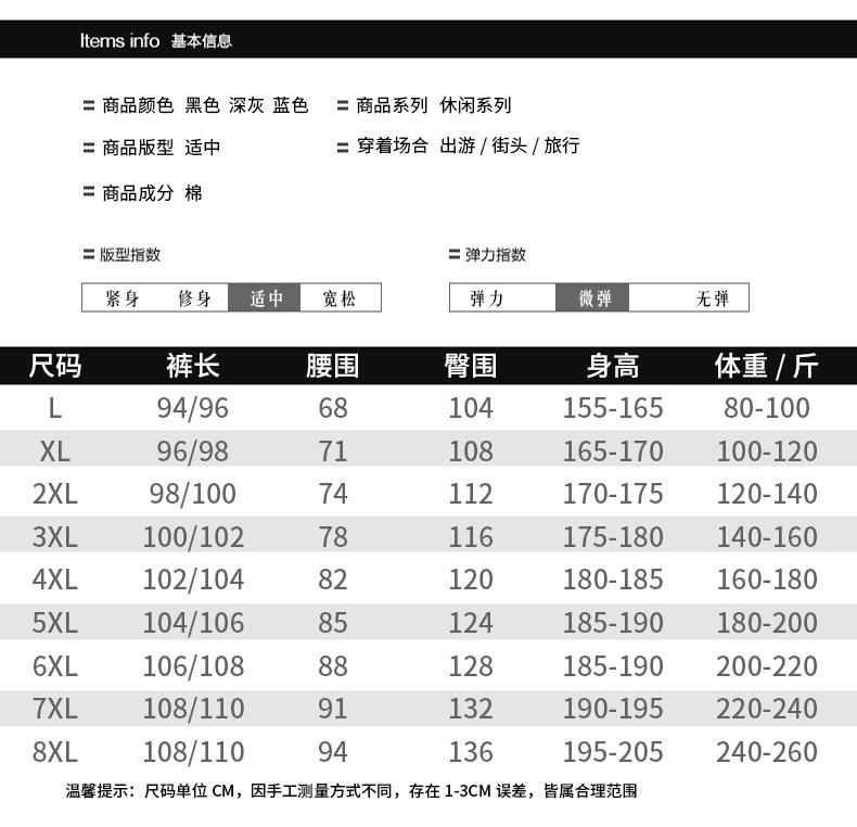 规格 :L XL 2XL 3XL 4XL 5XL 6XL 7XL