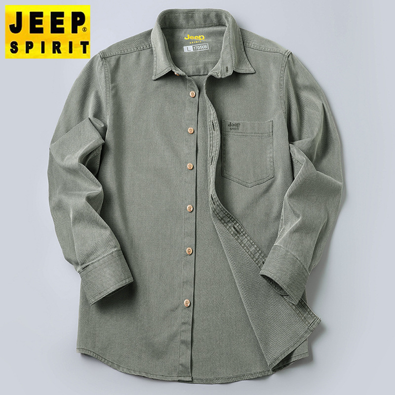 JEEP SPIRIT秋冬新款男士衬衫长袖休闲简约百搭透气日常开衫纯色时尚户外 SD-2057