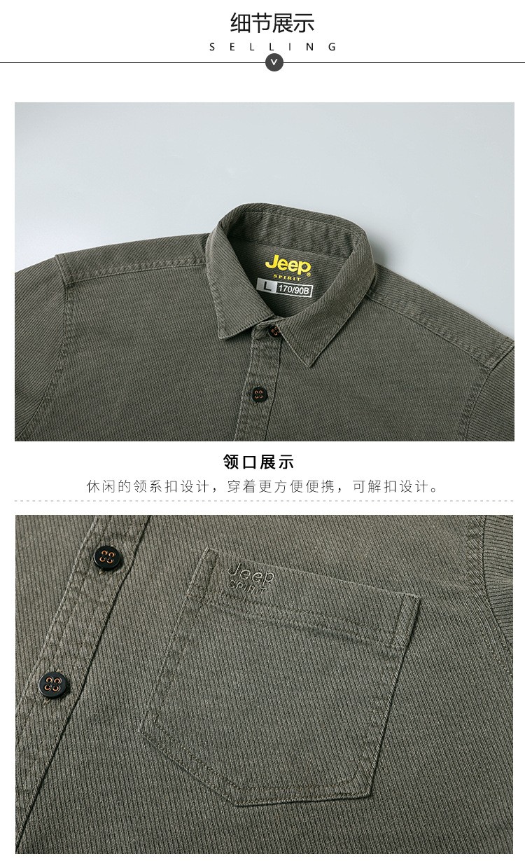 JEEP SPIRIT秋冬新款男士衬衫长袖开衫户外休闲商务轻熟简约百搭日常时尚 SD-2056