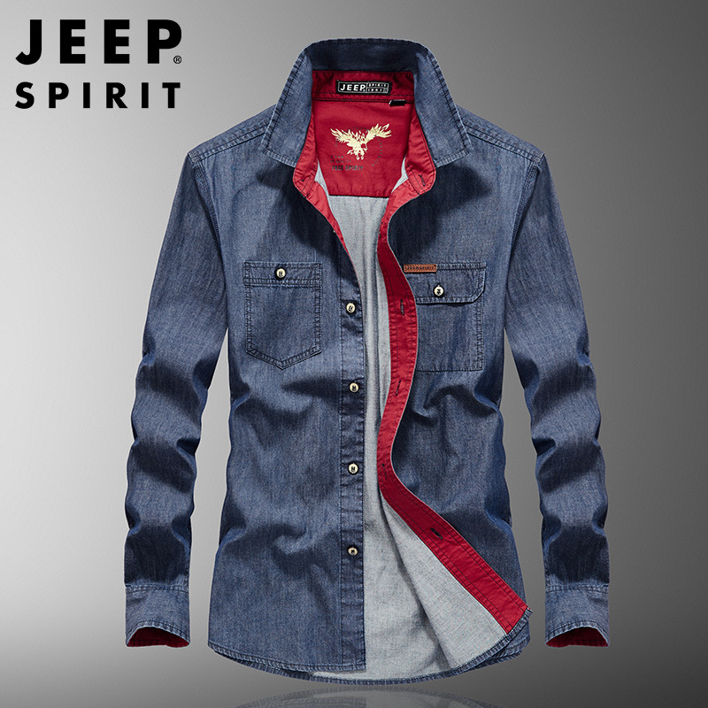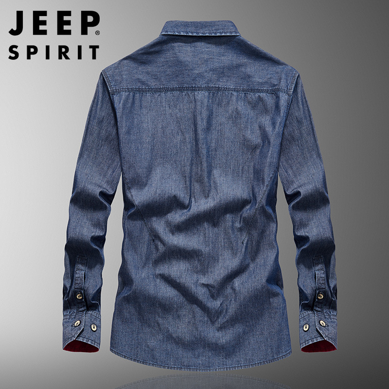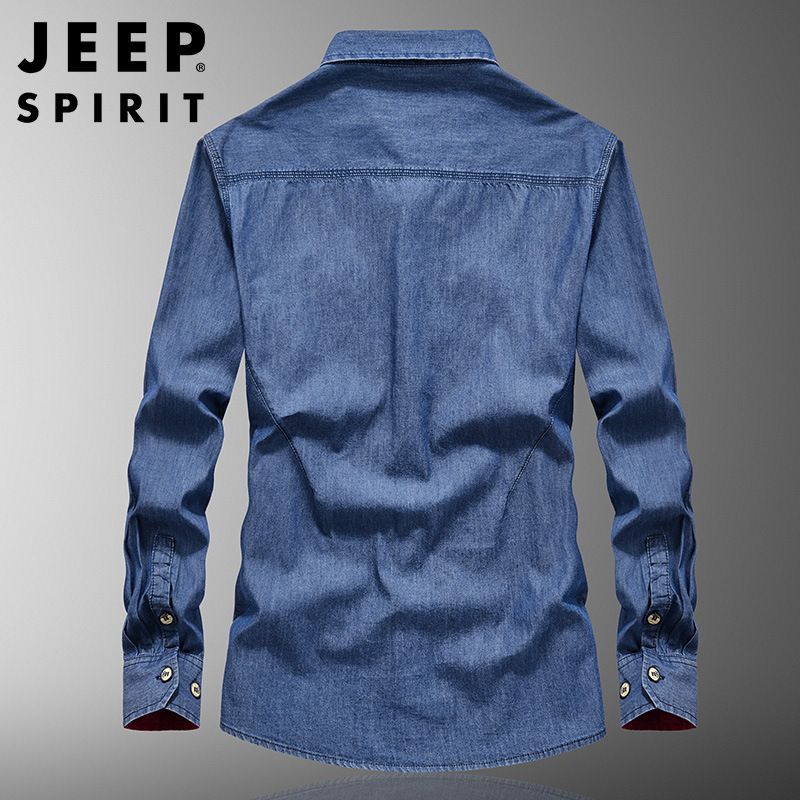 JEEP SPIRIT秋冬季新款男式休闲牛仔长袖衬衫不易起球透气吸汗百搭JPL0346