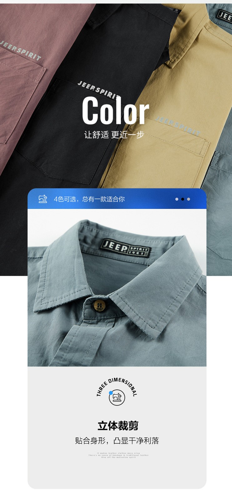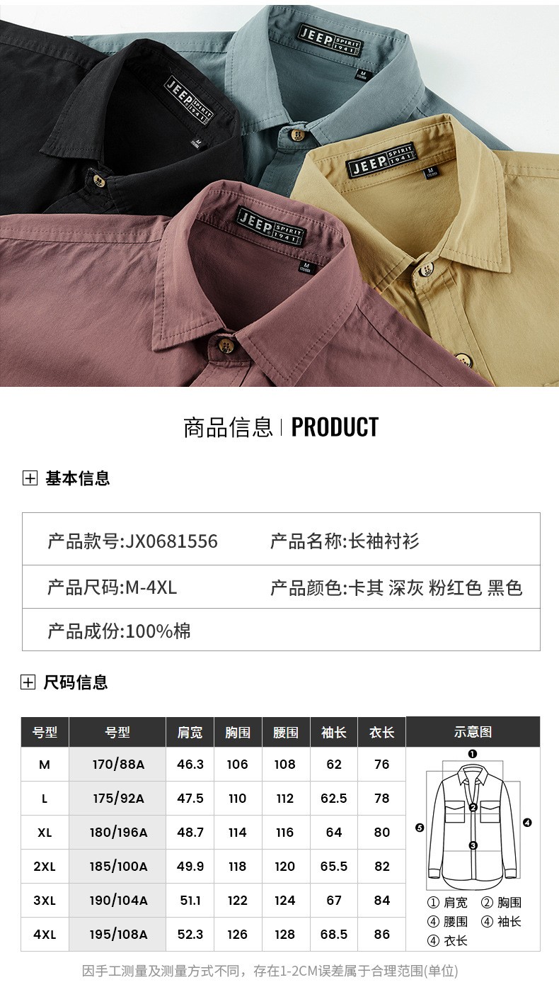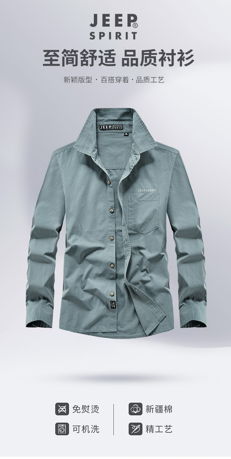JEEP SPIRIT秋冬季新款男式休闲时尚长袖衬衫透气舒适百搭面料采用新疆棉JPL1556