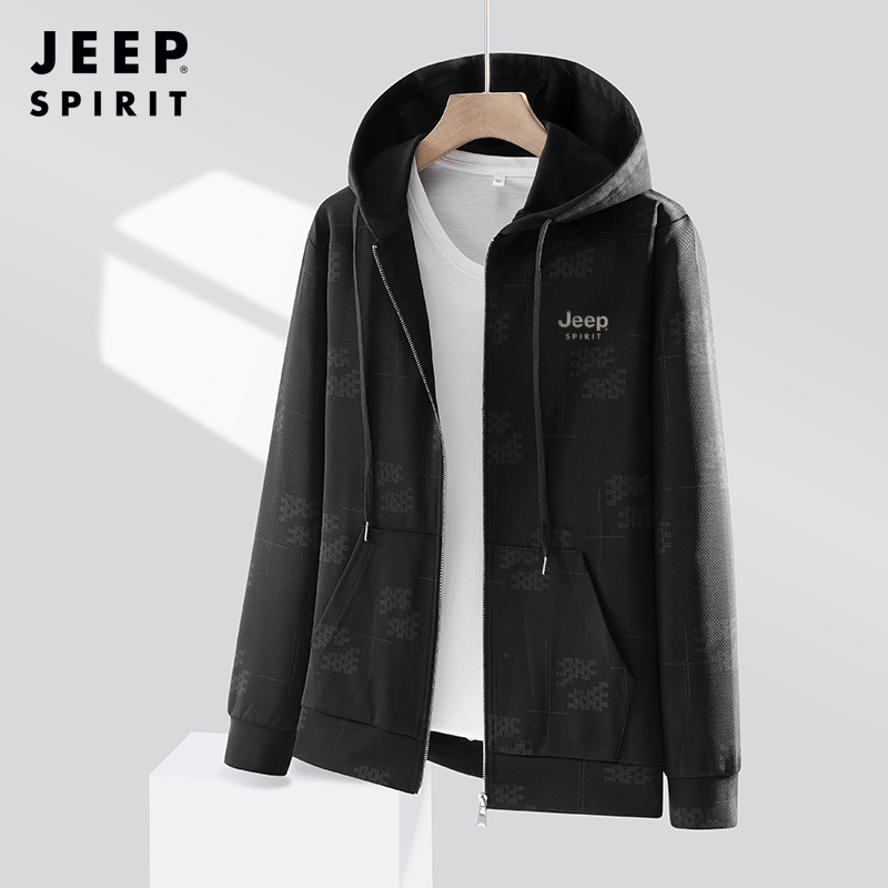 JEEP SPIRIT秋冬新款男士休闲卫衣开衫连帽休闲简约百搭户外运动居家日常JP6382