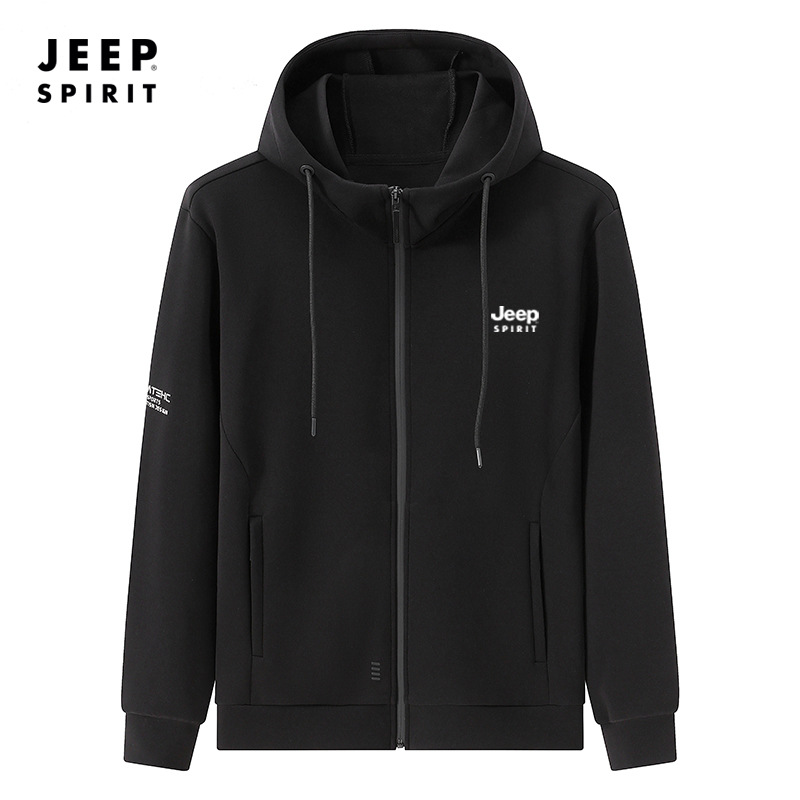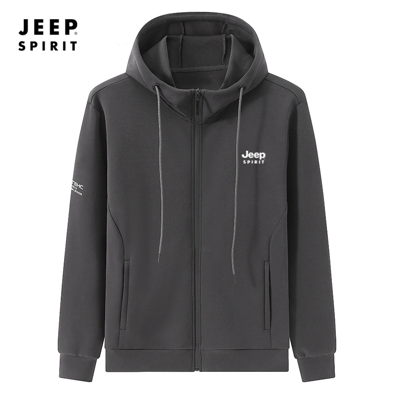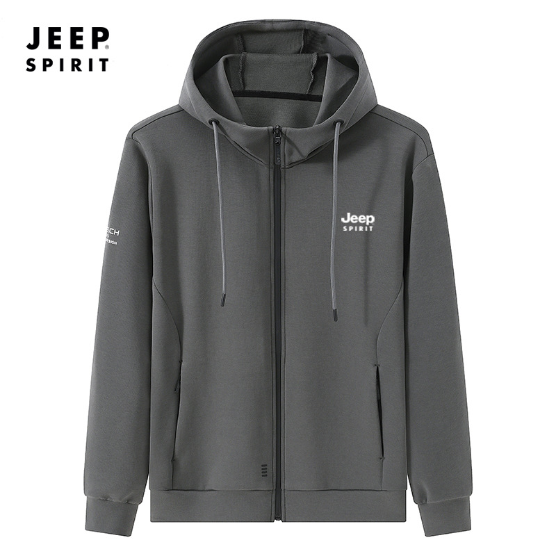 JEEP SPIRIT秋冬新款男休闲连帽开衫卫衣防风透气简约百搭户外运动品质款JP561