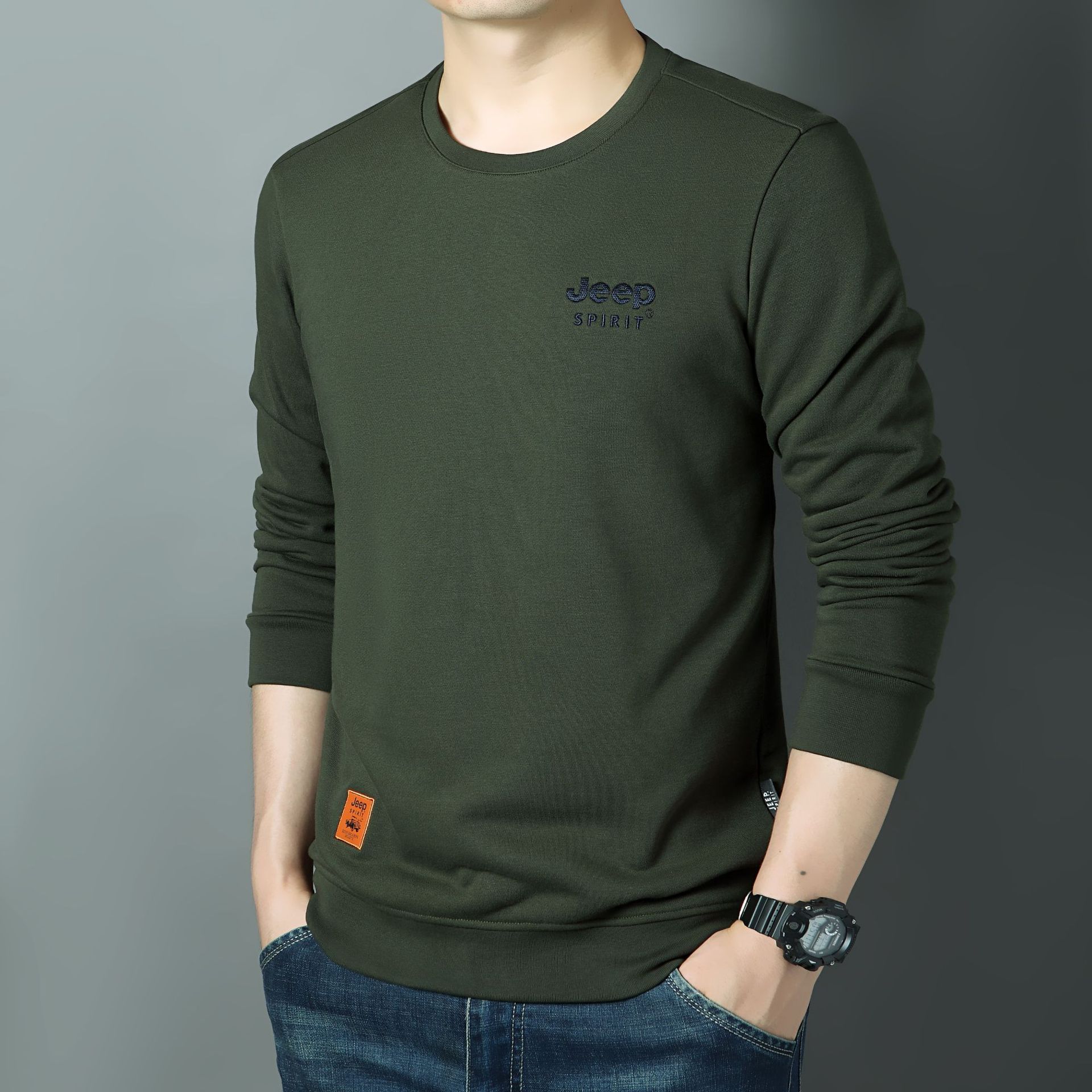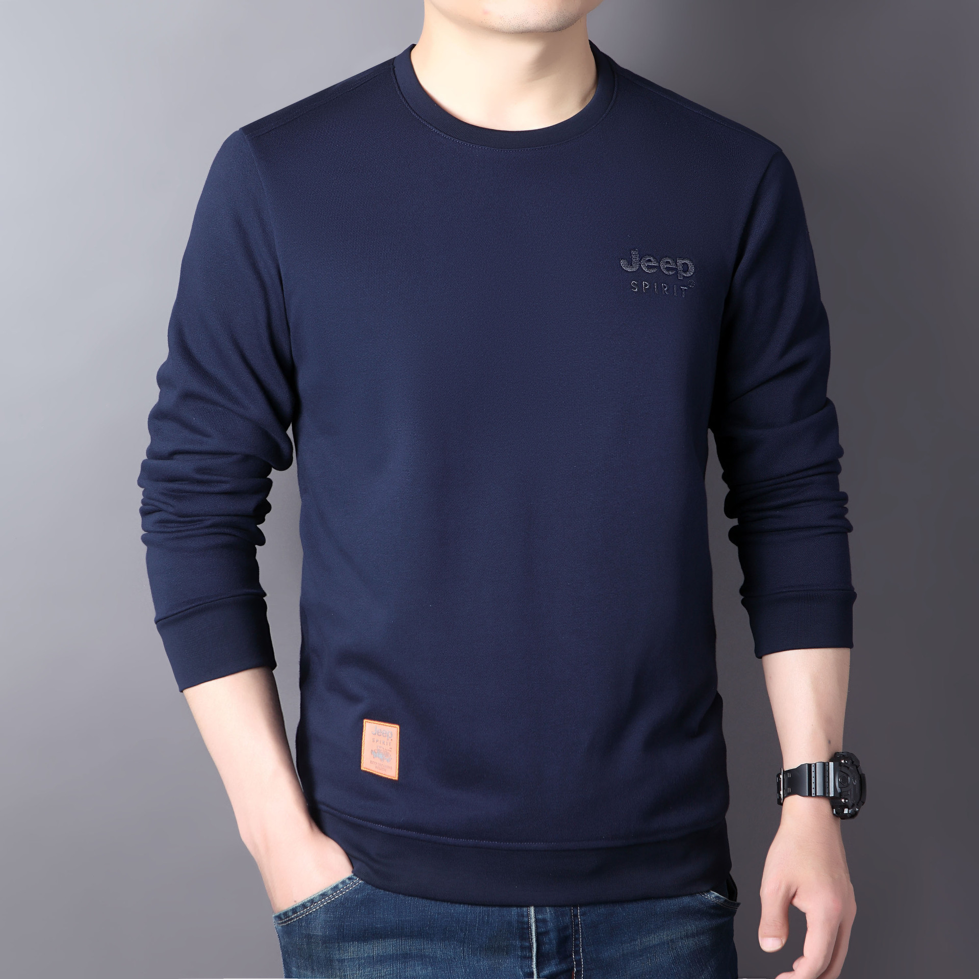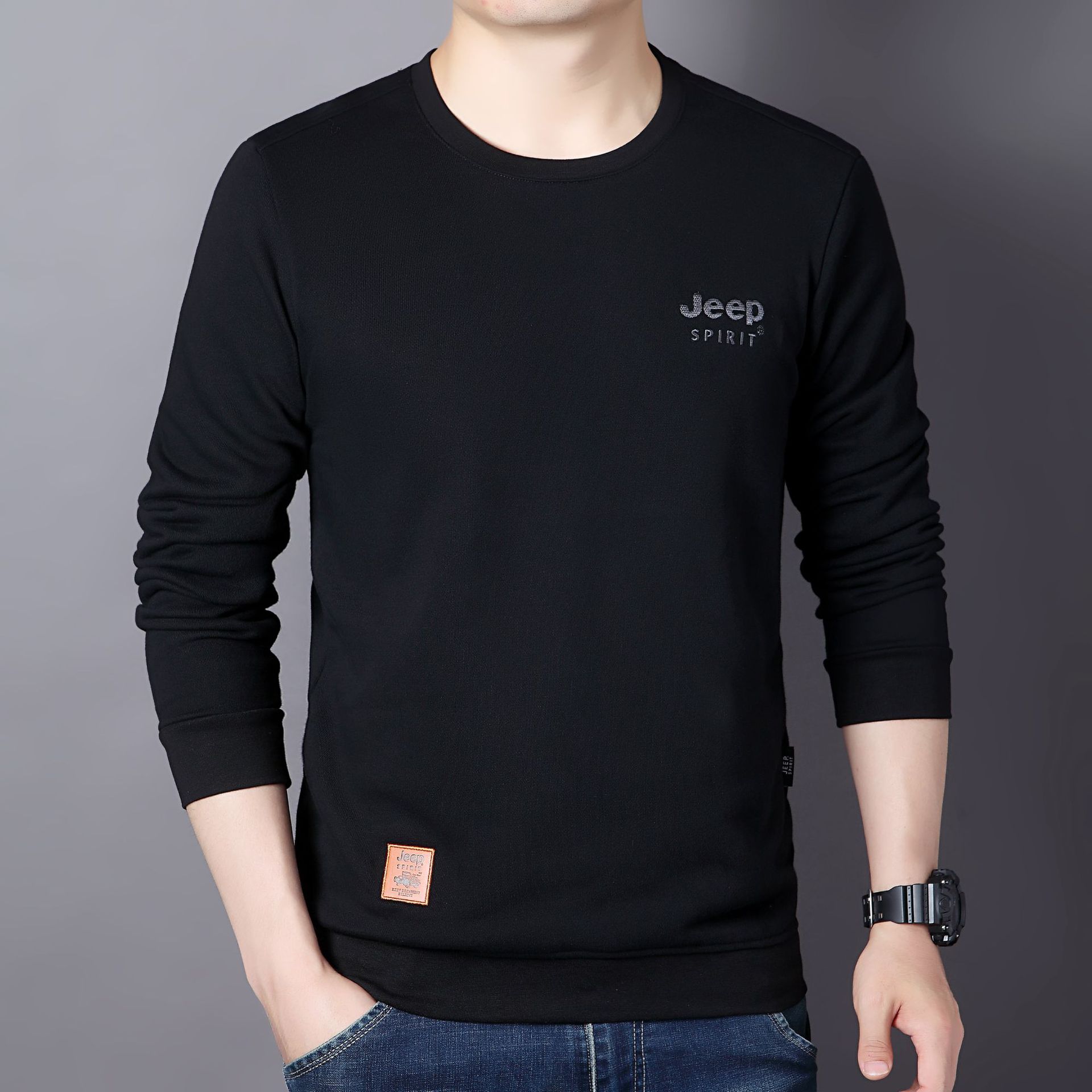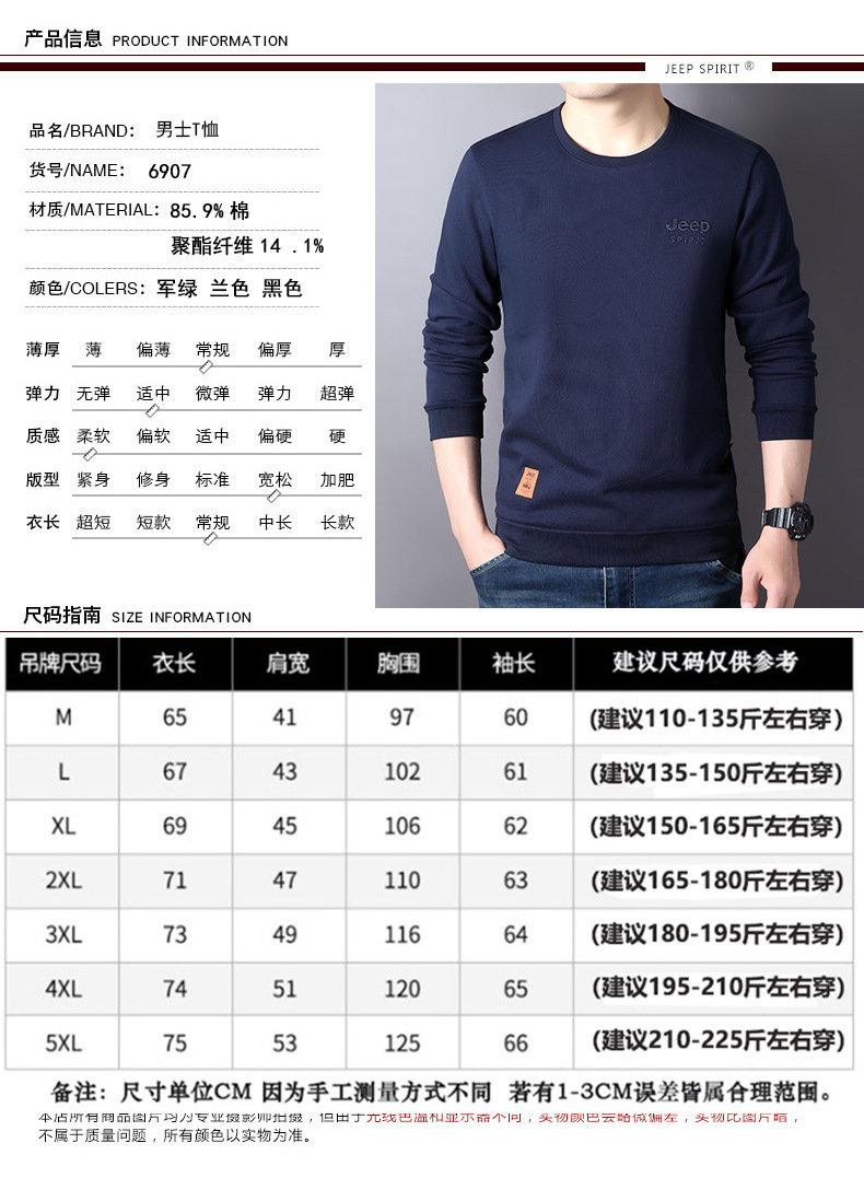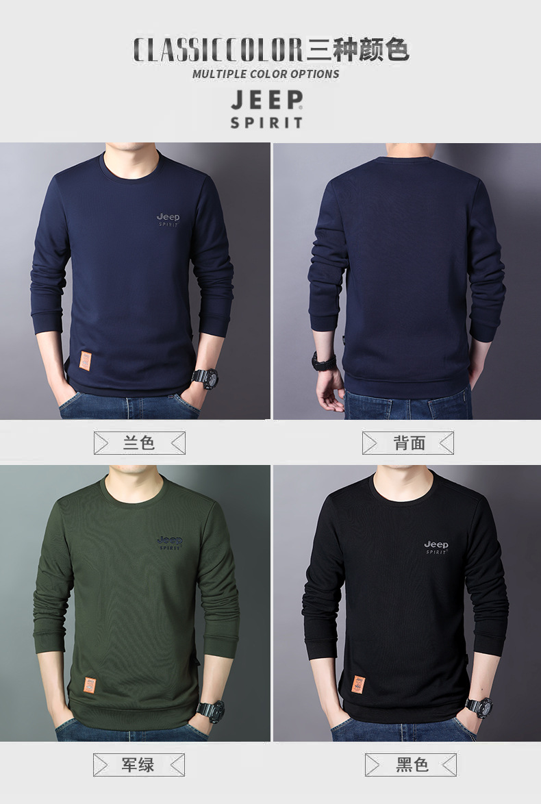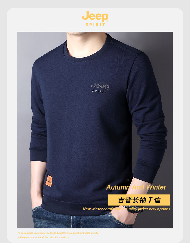 JEEP SPIRIT秋冬新款男户外休闲T恤简约时尚商务轻熟百搭打底衣透气舒适DS-6907