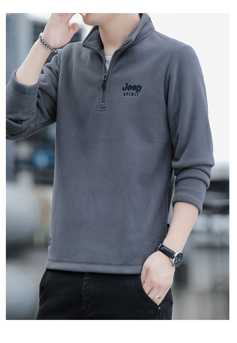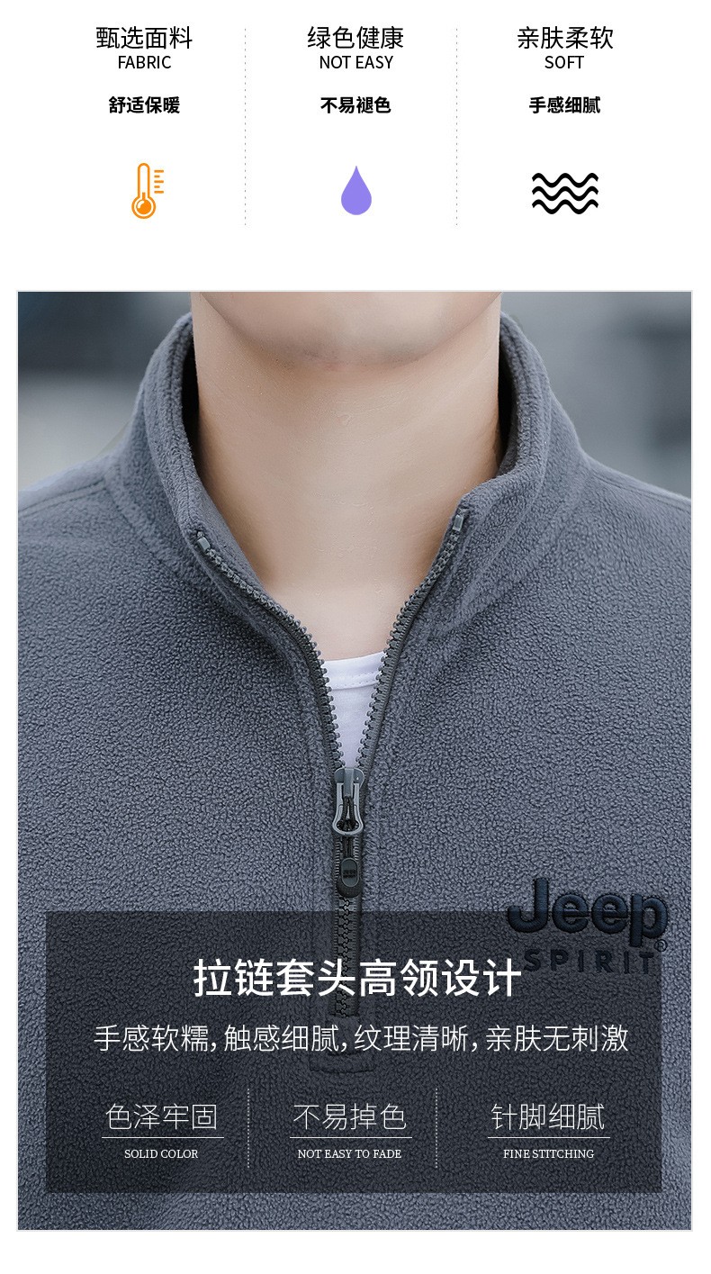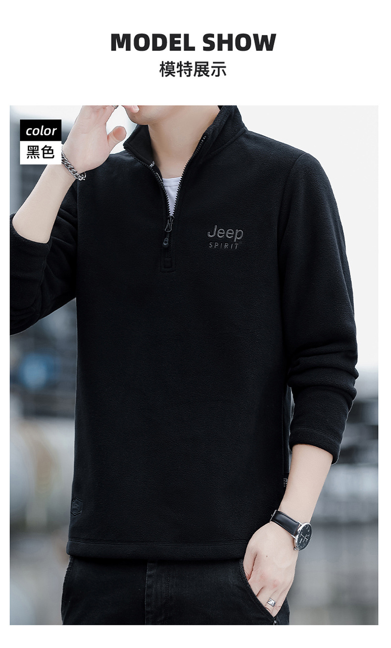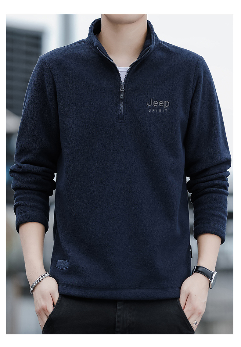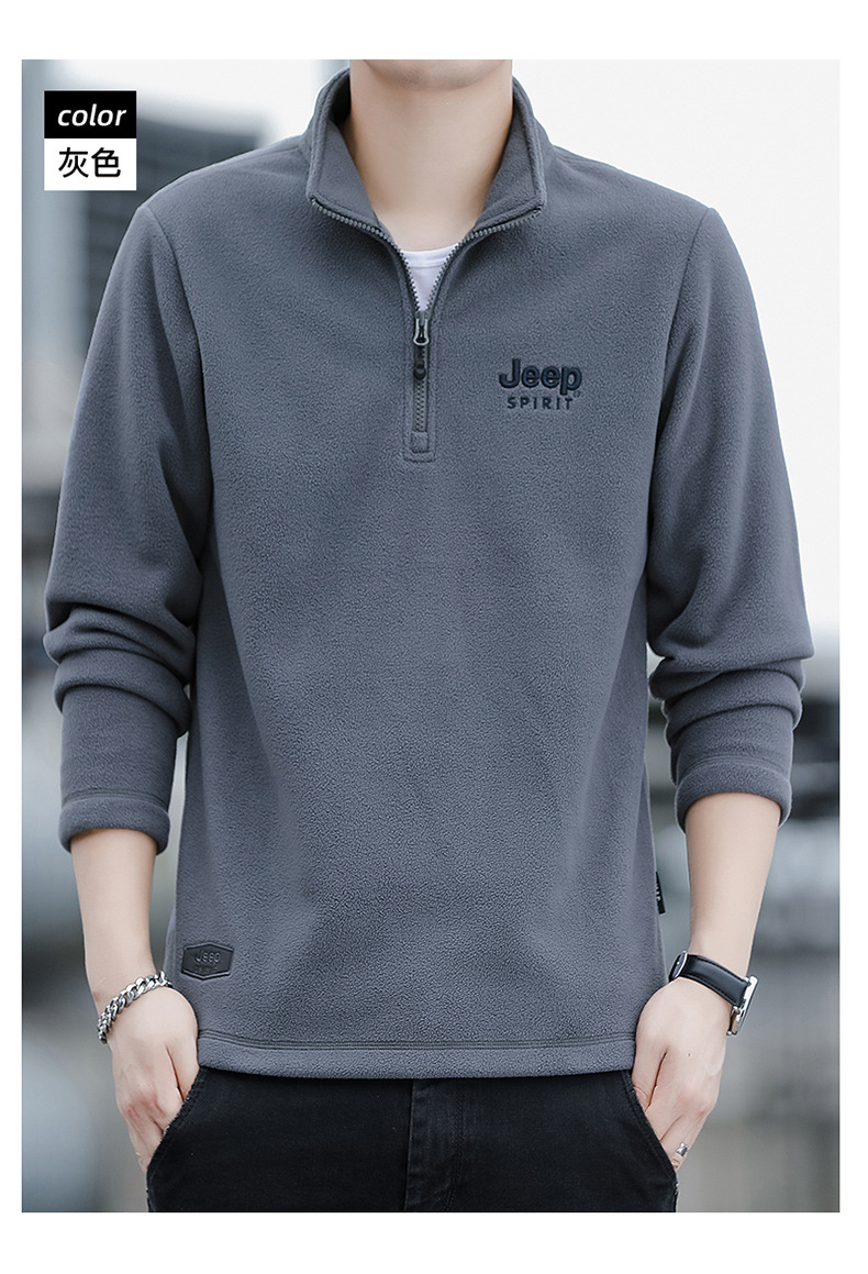服饰配饰>男装>T恤> JEEP SPIRIT秋冬季新款男式休闲立领加绒卫衣色泽牢固不易掉色保暖H-7016