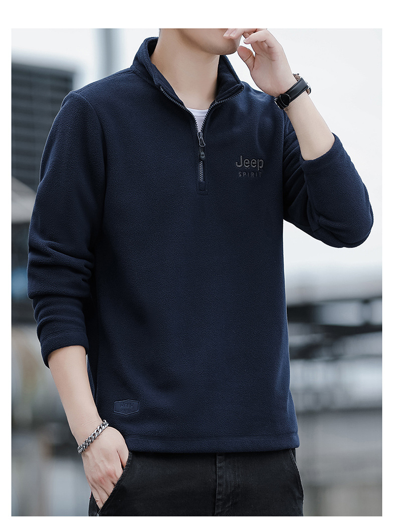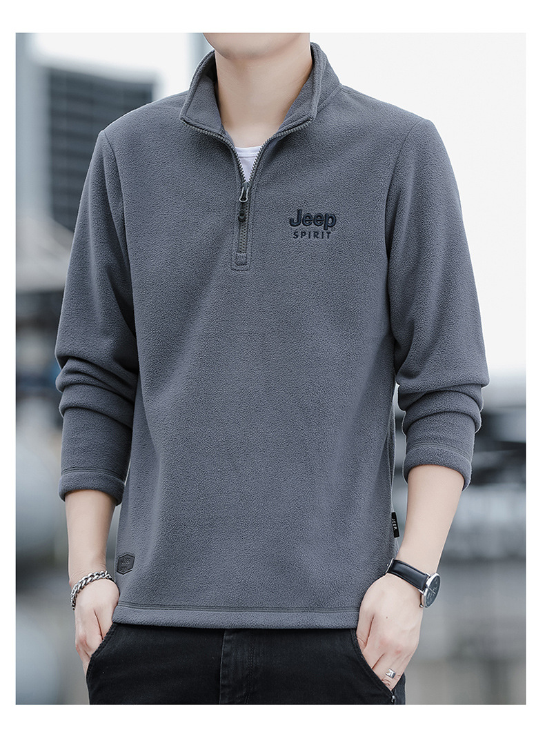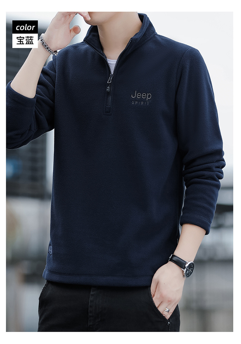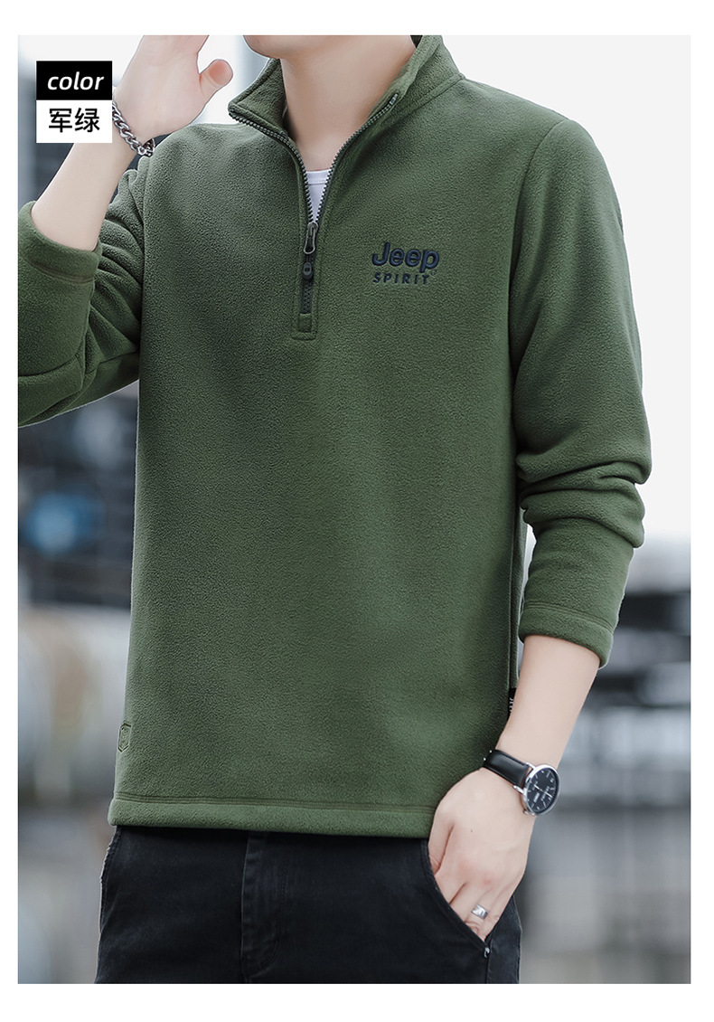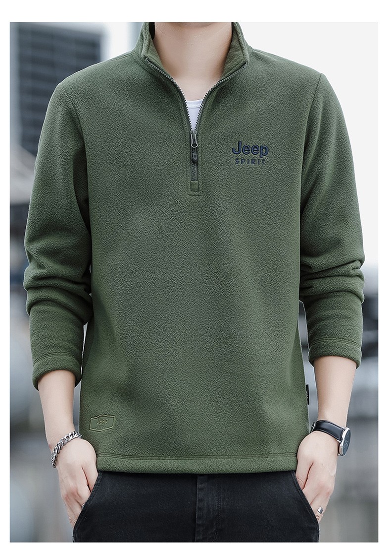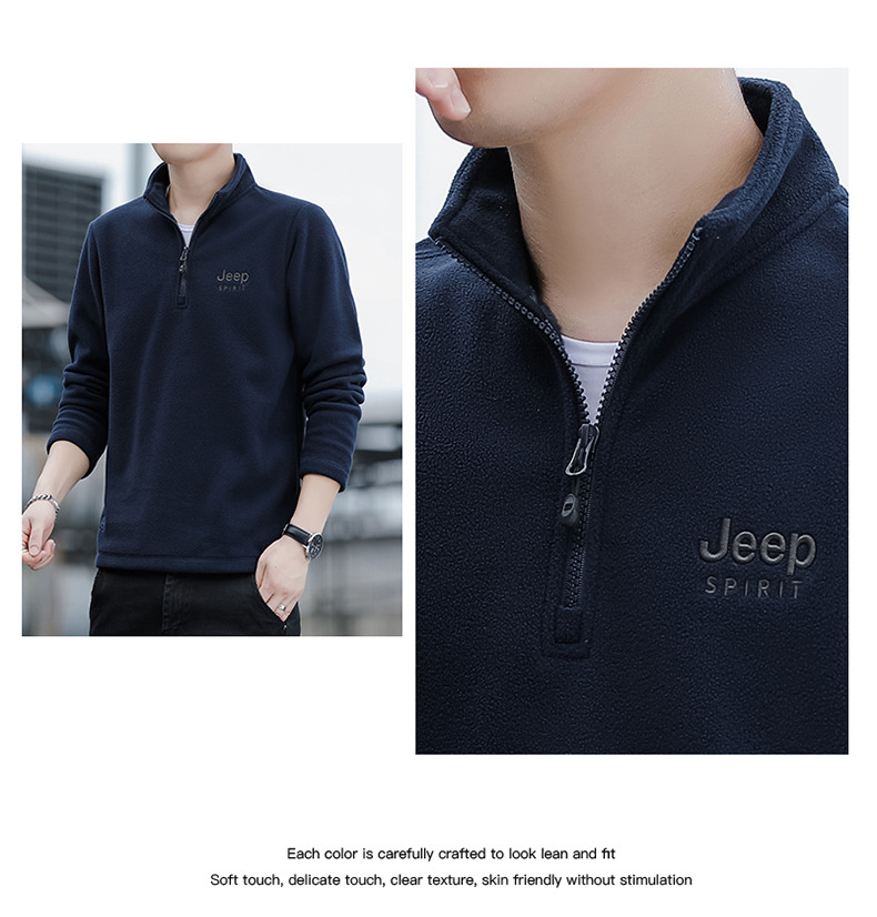 服饰配饰>男装>T恤> JEEP SPIRIT秋冬季新款男式休闲立领加绒卫衣色泽牢固不易掉色保暖H-7016