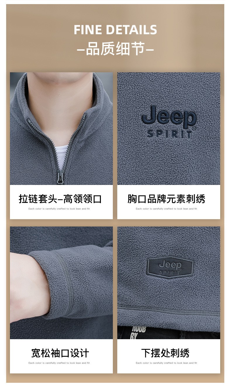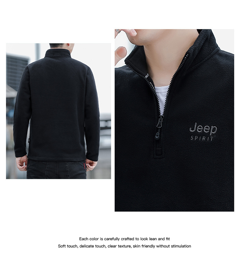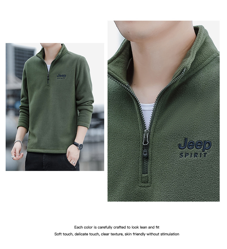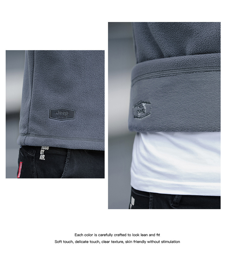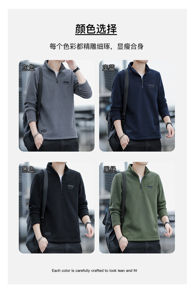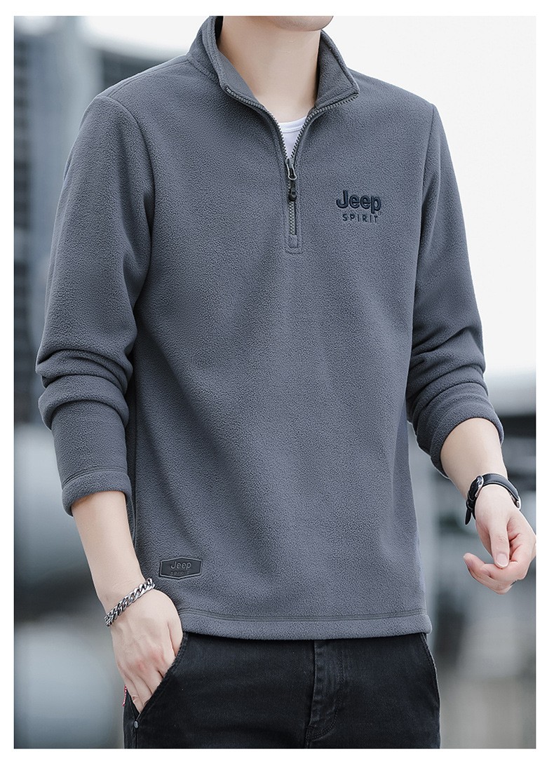 服饰配饰>男装>T恤> JEEP SPIRIT秋冬季新款男式休闲立领加绒卫衣色泽牢固不易掉色保暖H-7016