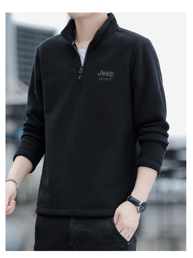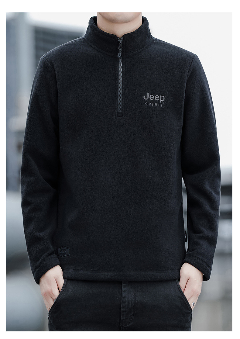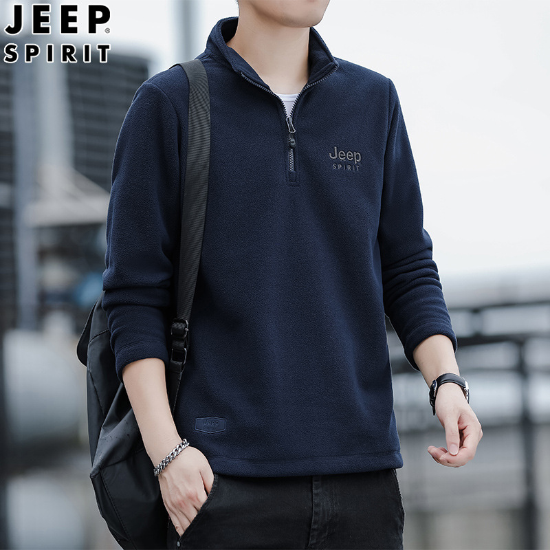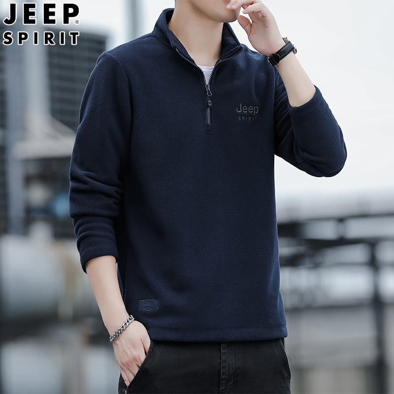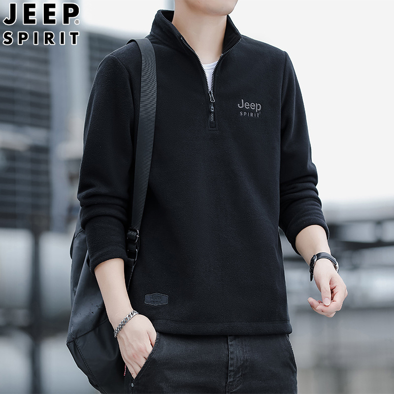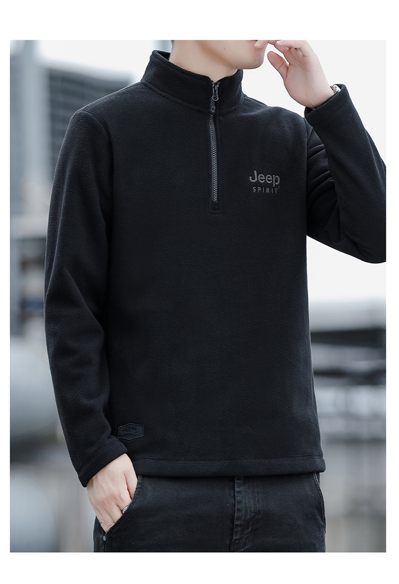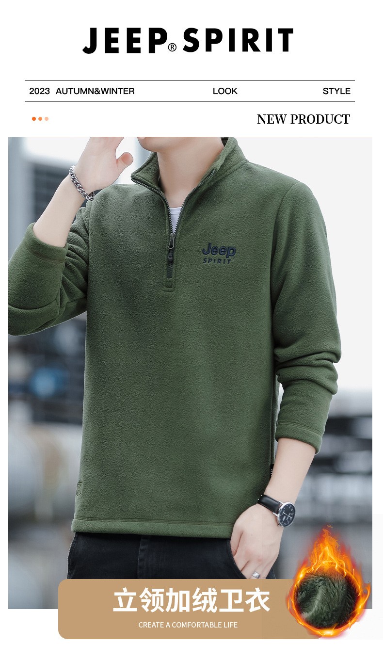 JEEP SPIRIT秋冬季新款男式休闲立领加绒卫衣色泽牢固不易掉色保暖H-7016