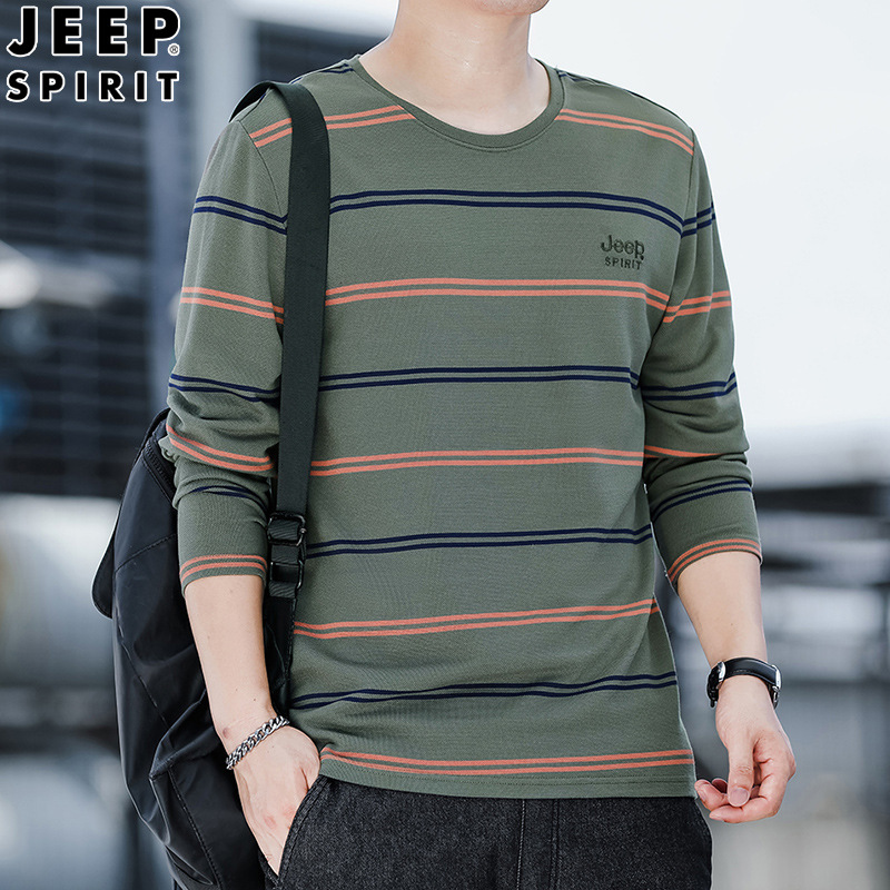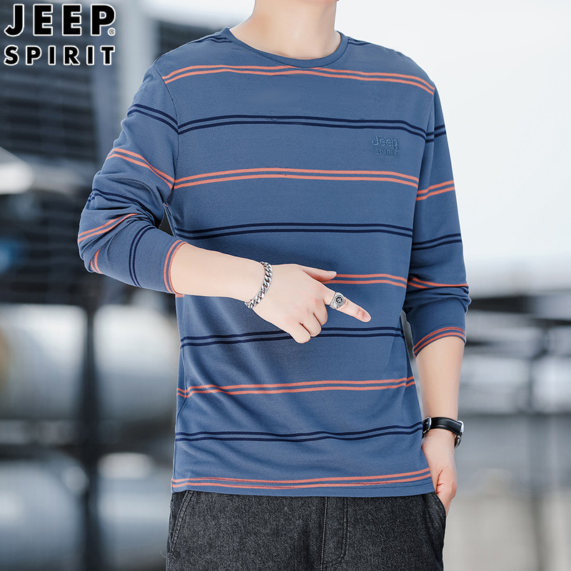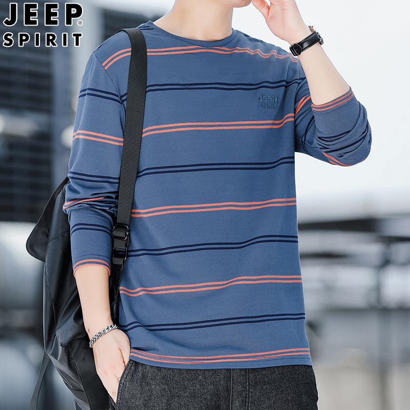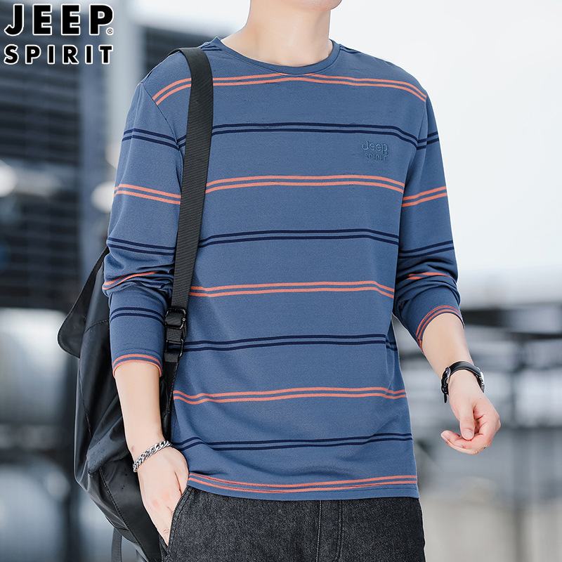 JEEP SPIRIT秋冬季新款男式休闲时尚条纹圆领T恤透气舒适手感细腻H-6903