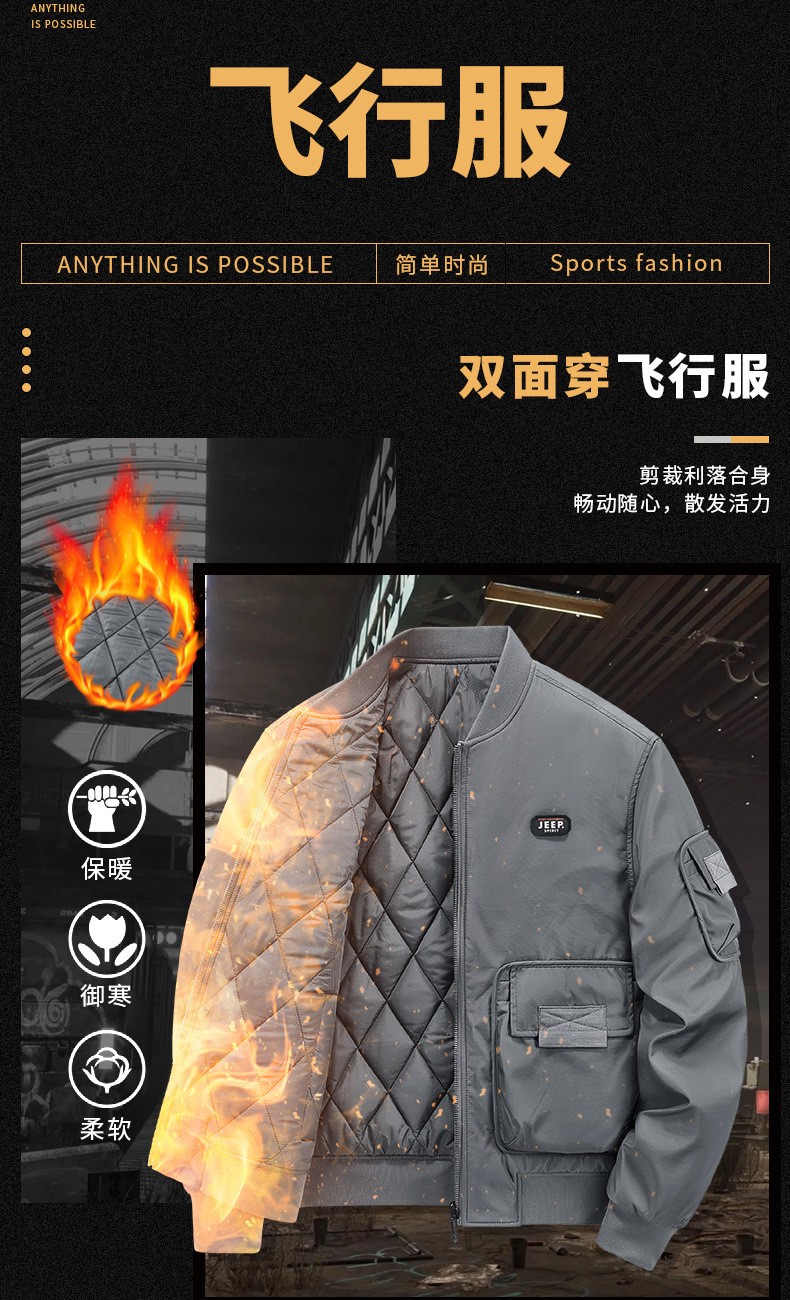 JEEP SPIRIT秋冬季新款男式飞行休闲工装双面夹克 舒适透气百搭潮流JP6522