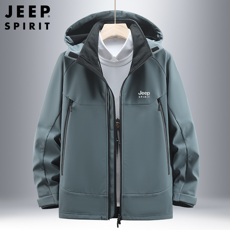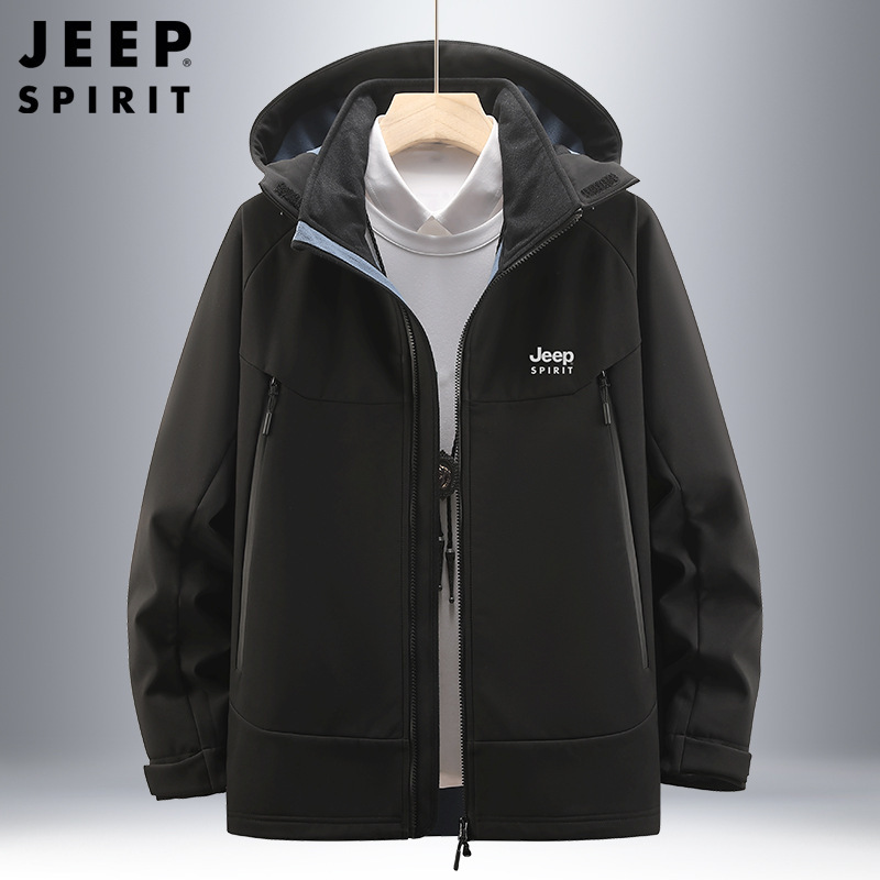 服饰配饰>男装>外套/夹克> JEEP SPIRIT新款男士户外夹克加绒软壳多袋大码男装户外登山服风JPCS8253HX