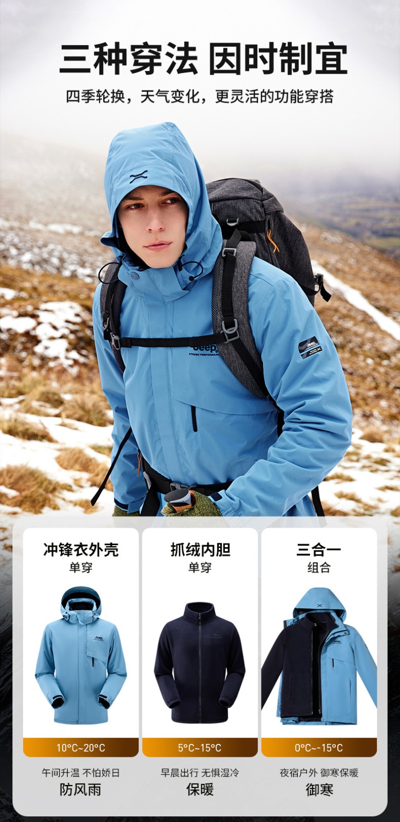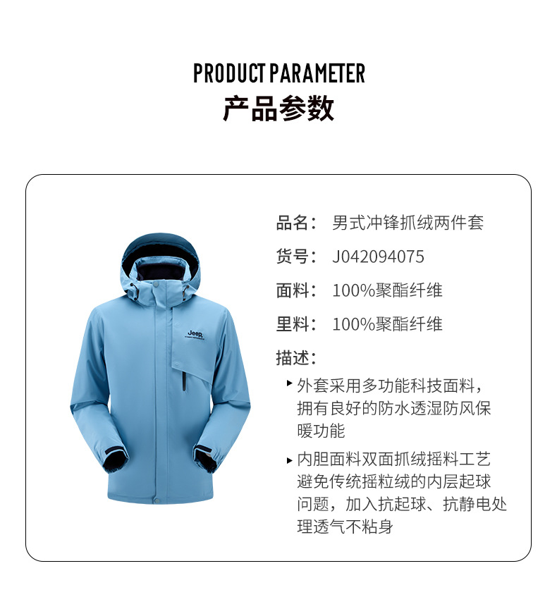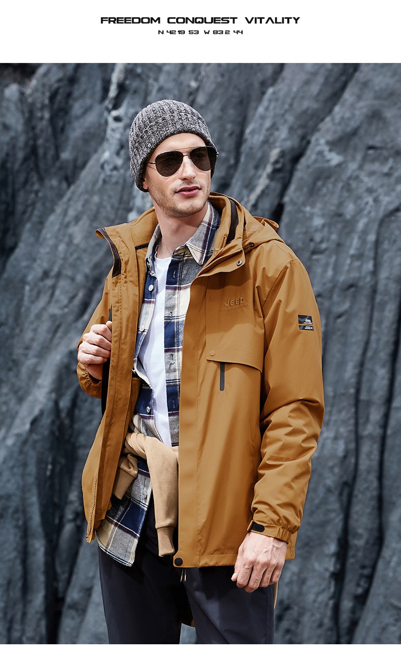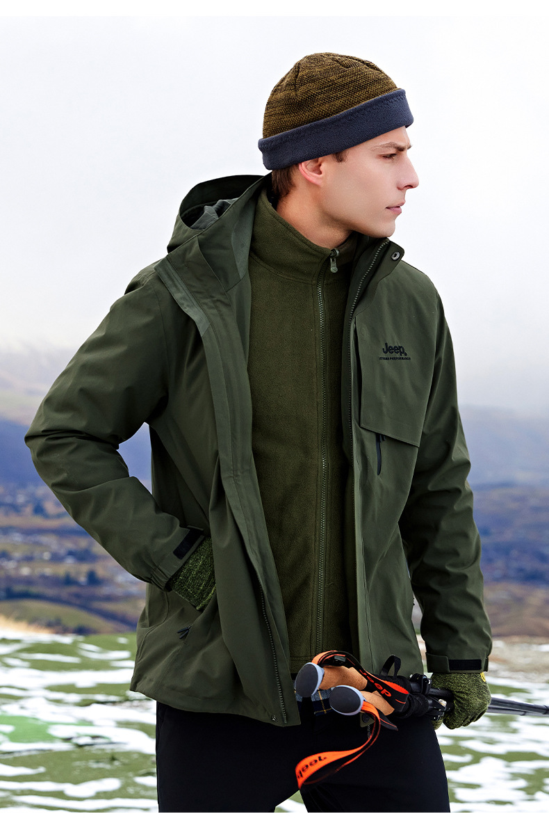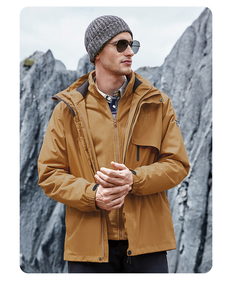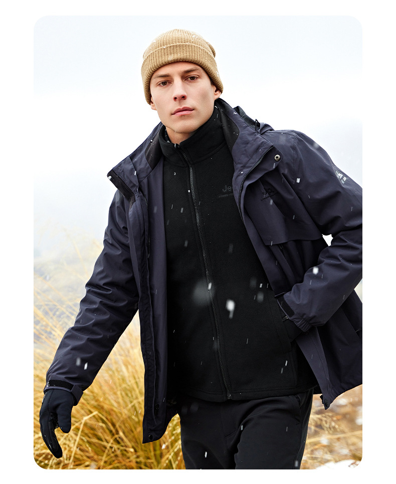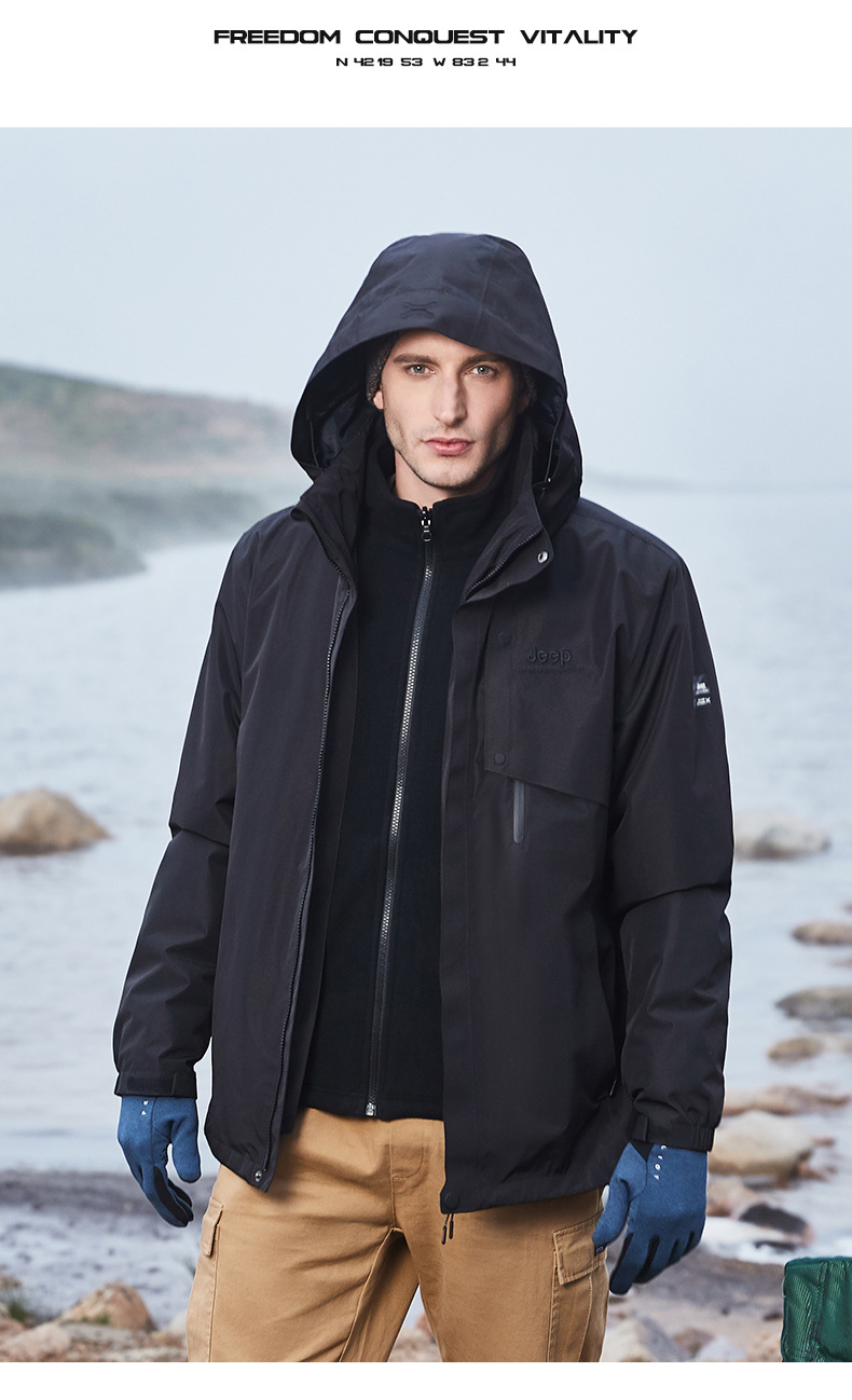 服饰配饰>男装>冲锋衣> JEEP 秋冬季新款男式休闲冲锋抓绒两件套舒适柔软亲肤保暖防水J042094075