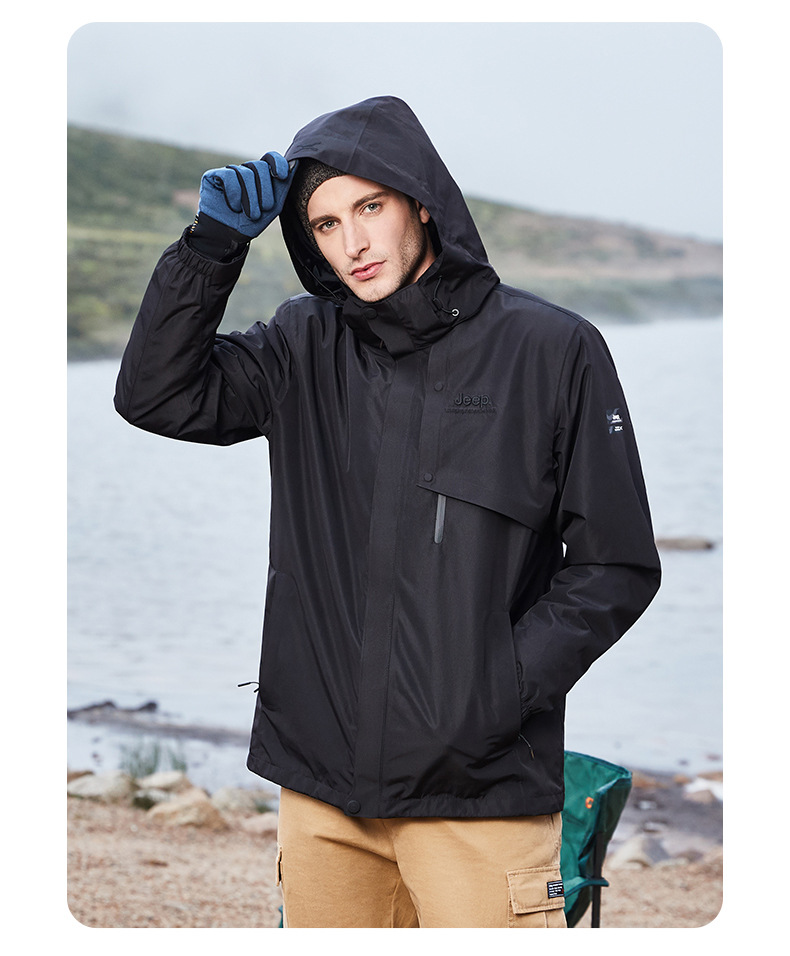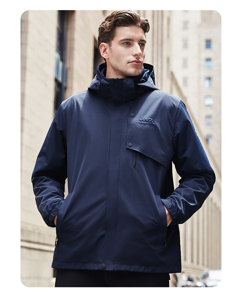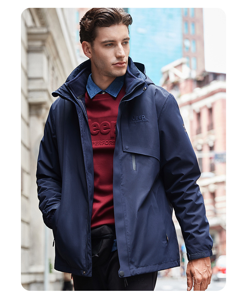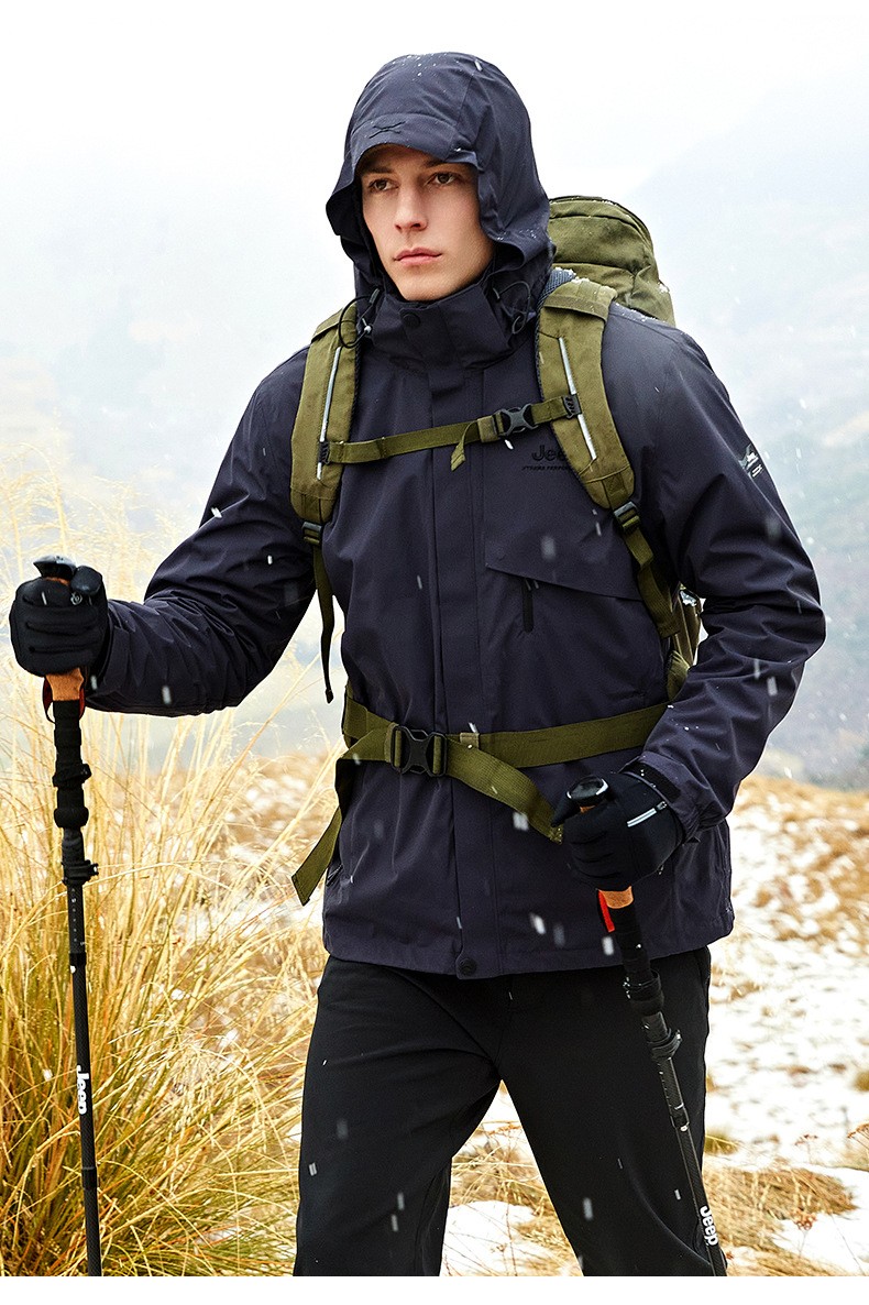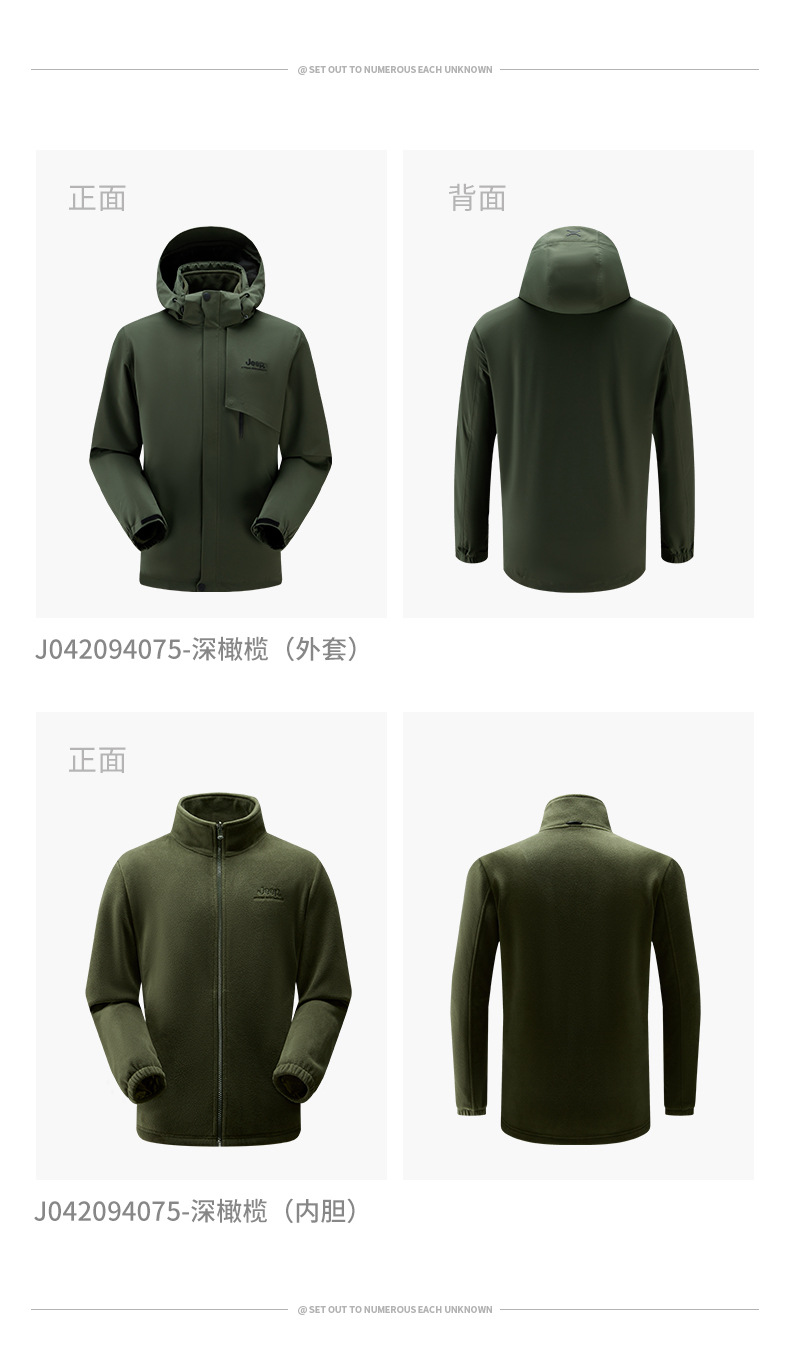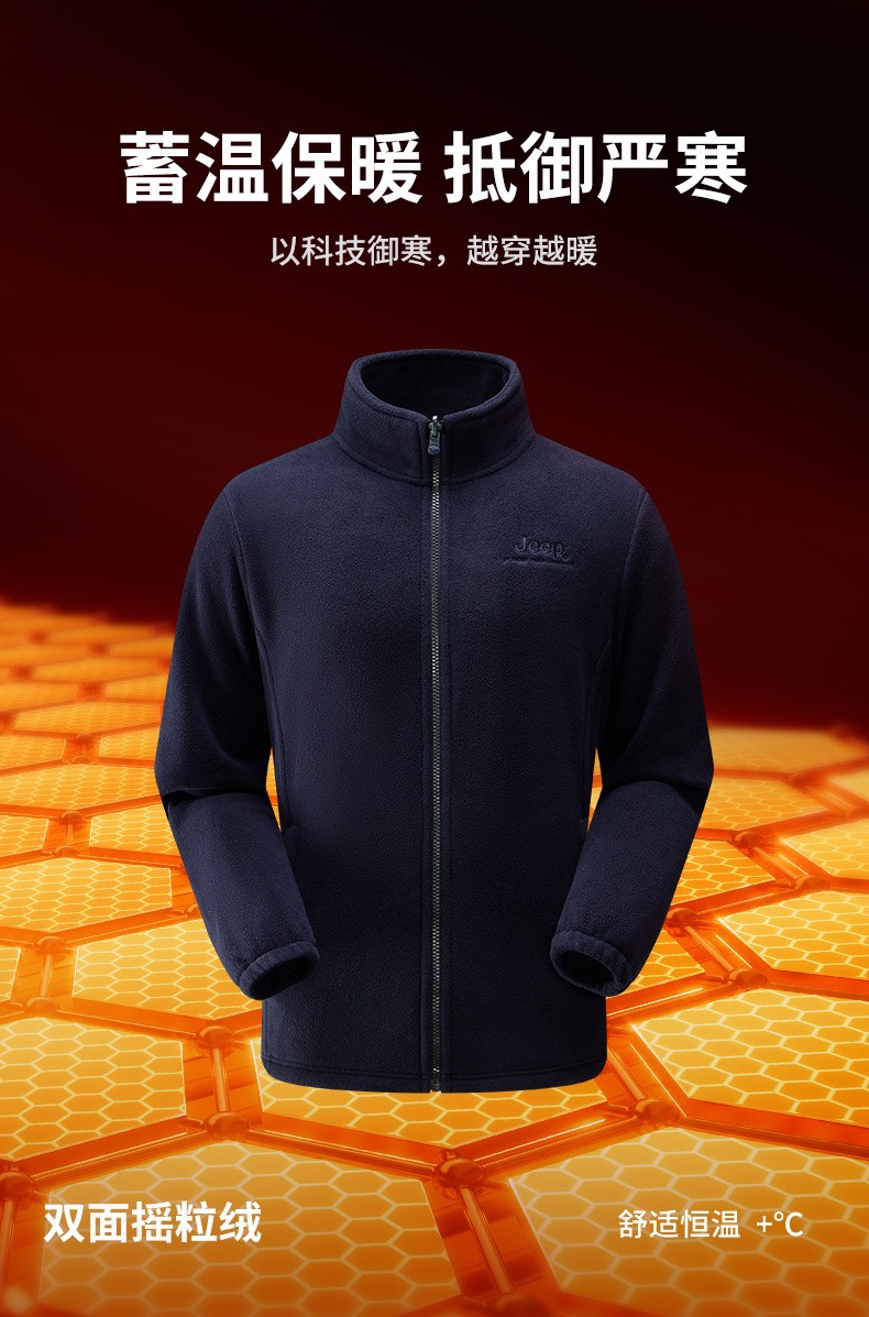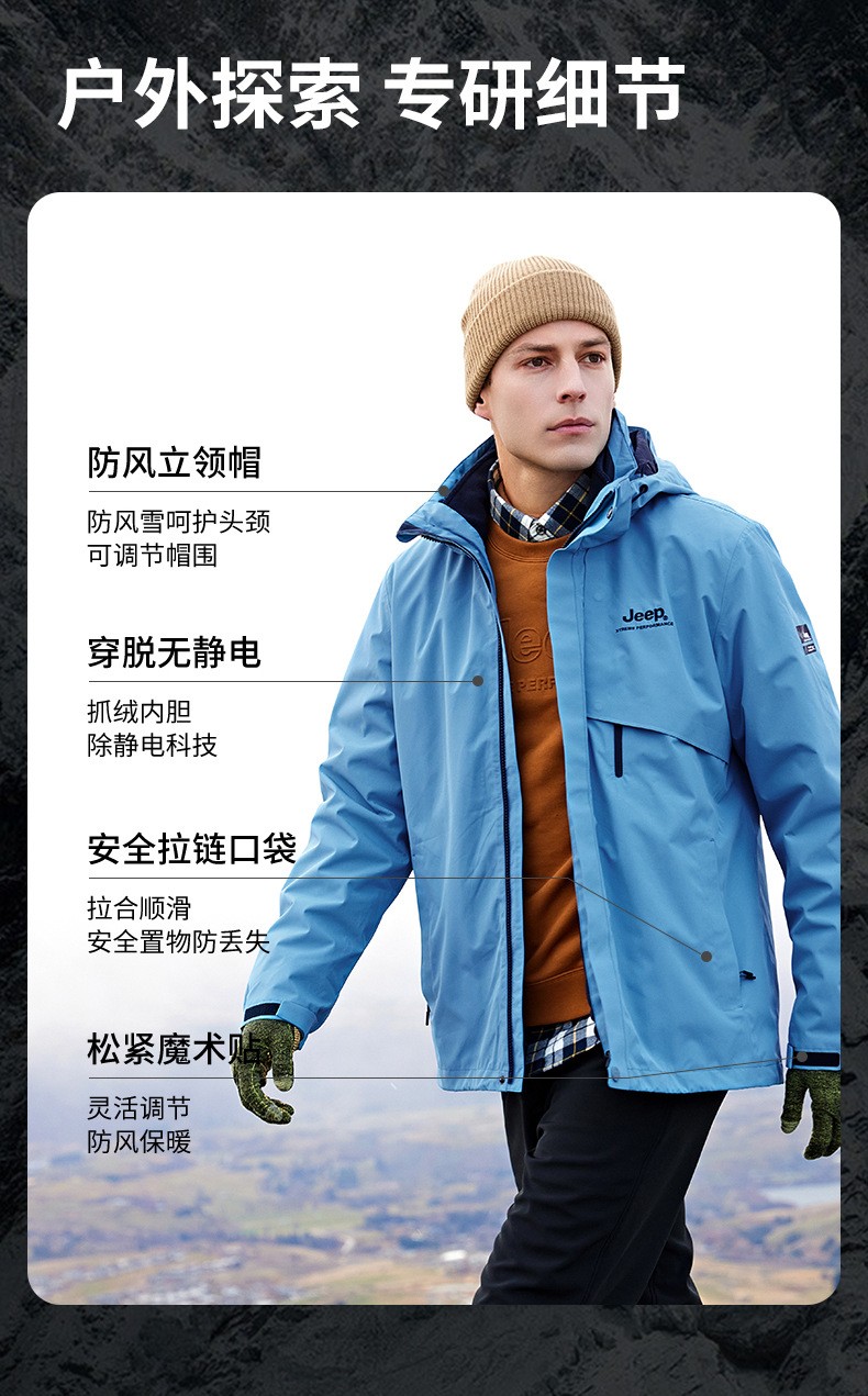 服饰配饰>男装>冲锋衣> JEEP 秋冬季新款男式休闲冲锋抓绒两件套舒适柔软亲肤保暖防水J042094075