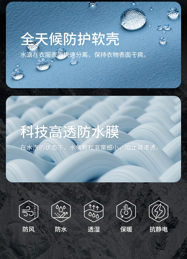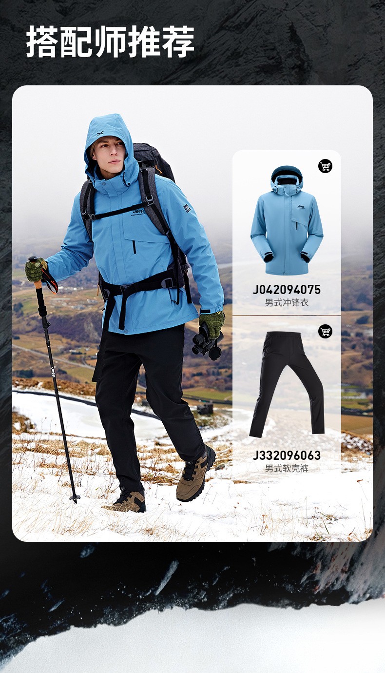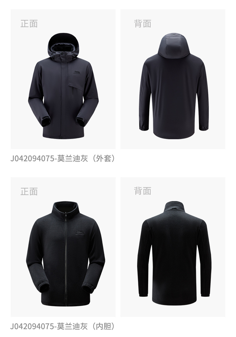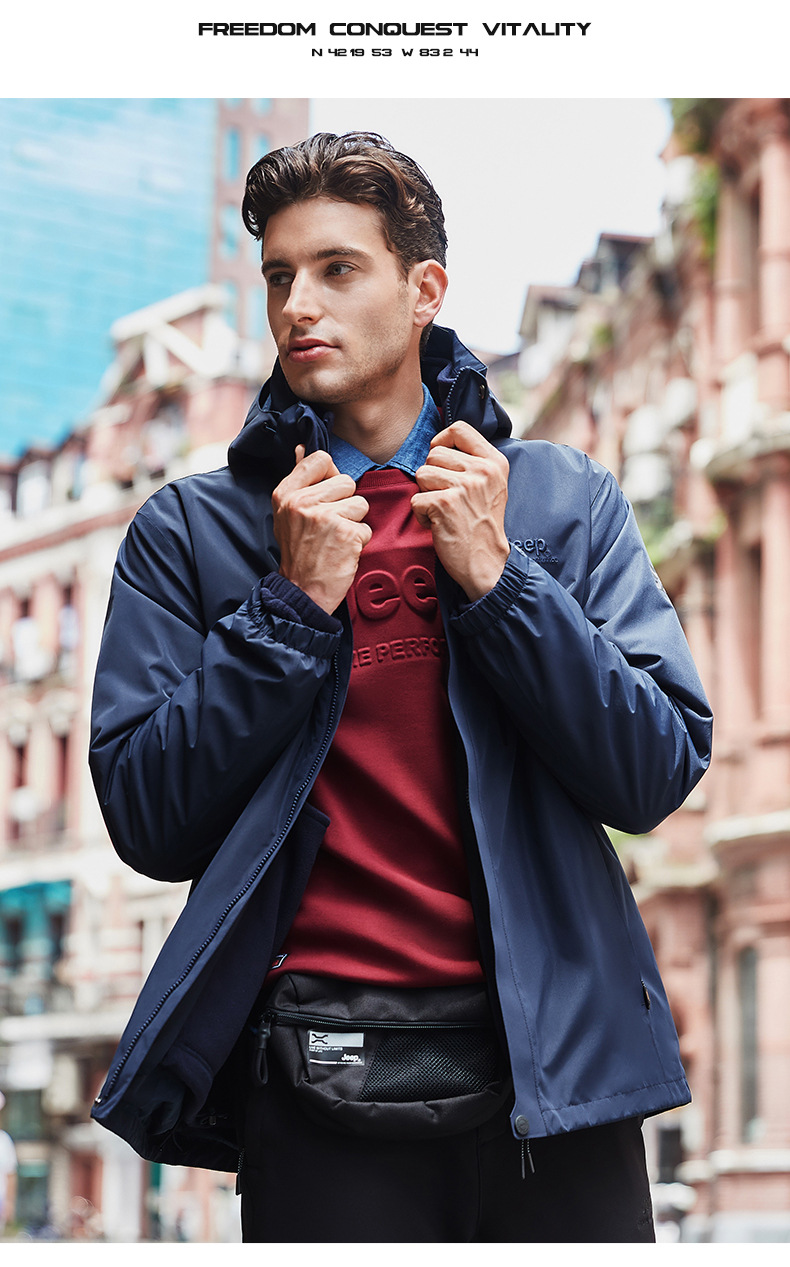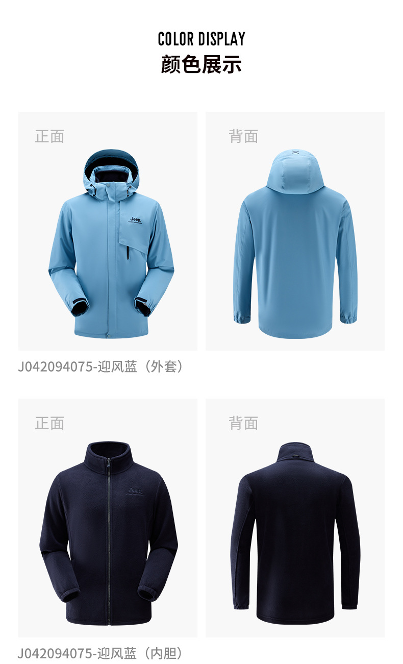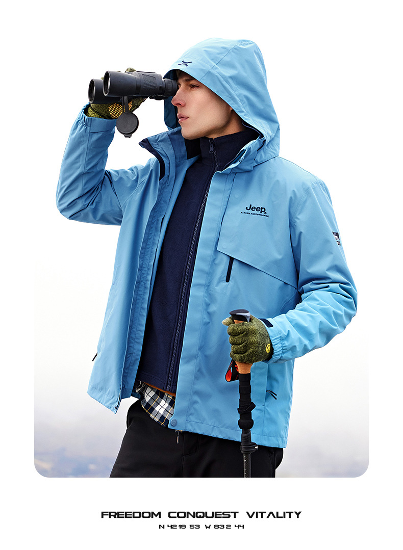 服饰配饰>男装>冲锋衣> JEEP 秋冬季新款男式休闲冲锋抓绒两件套舒适柔软亲肤保暖防水J042094075