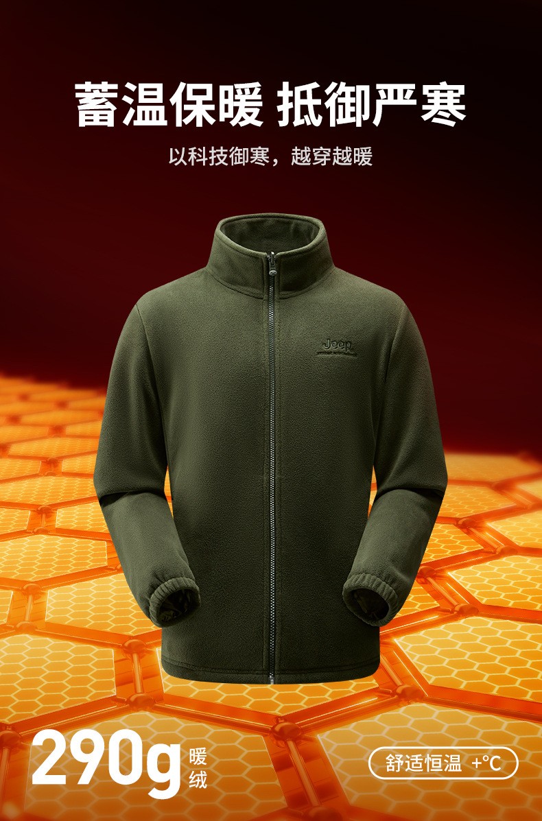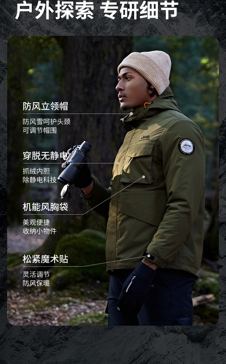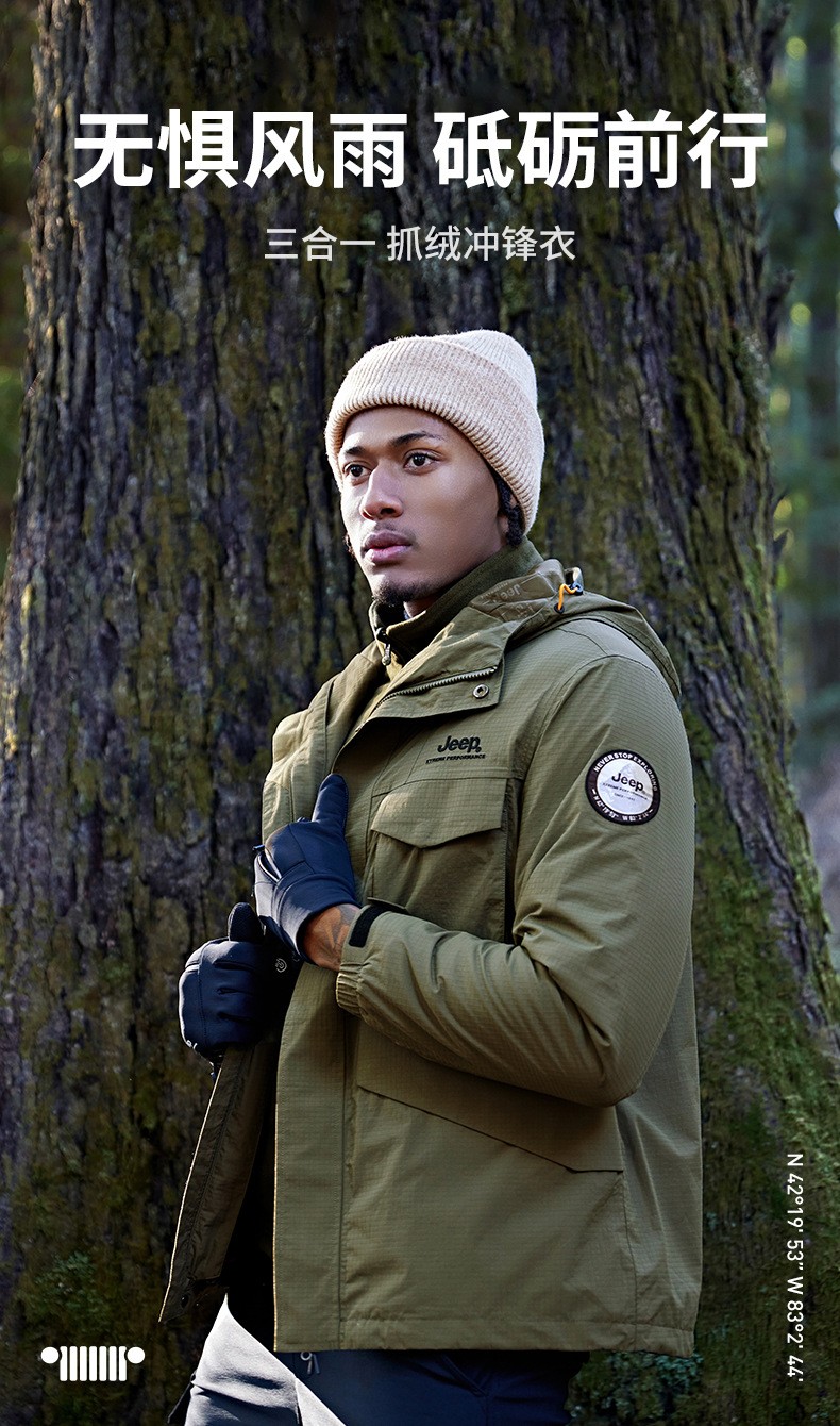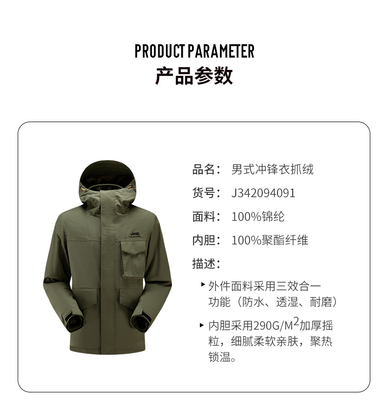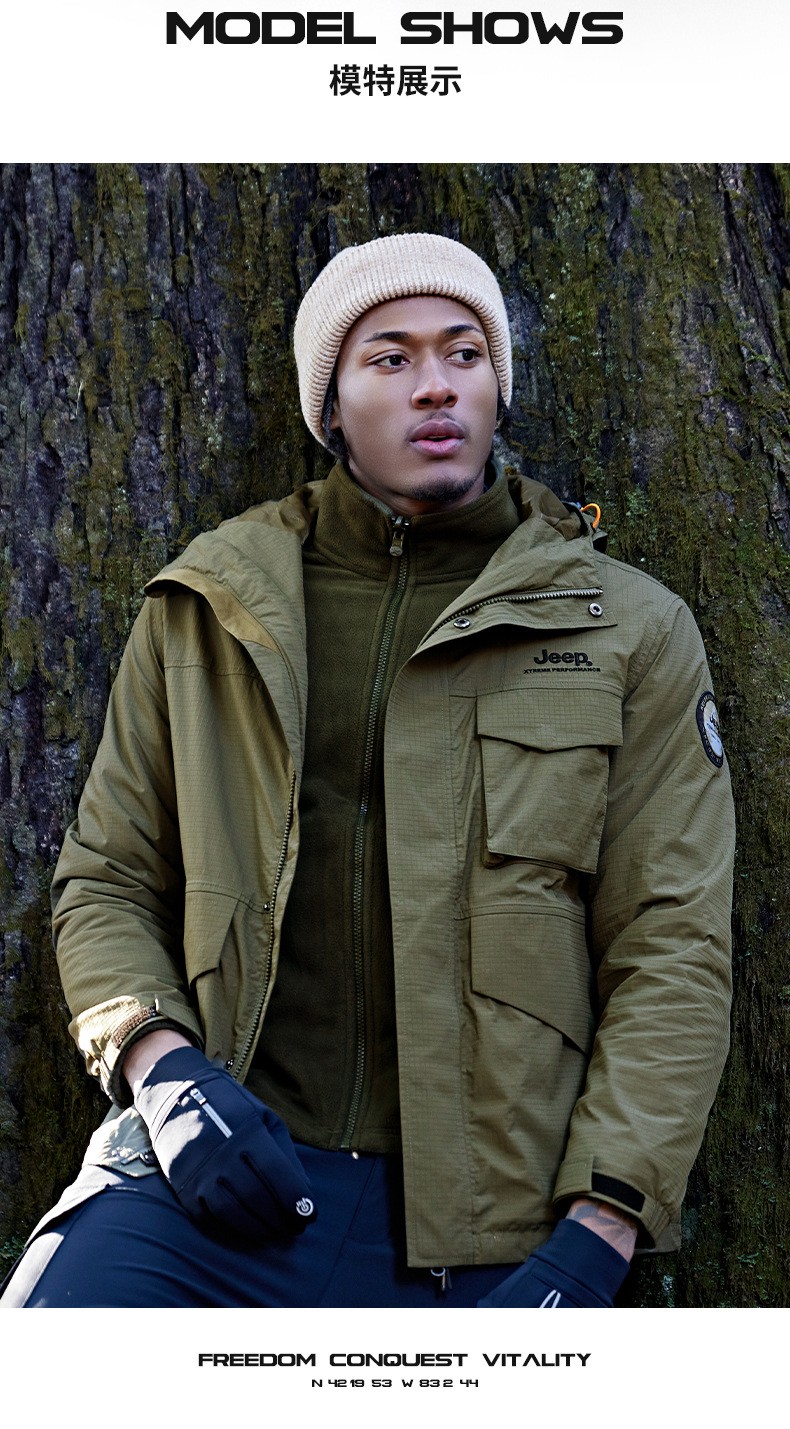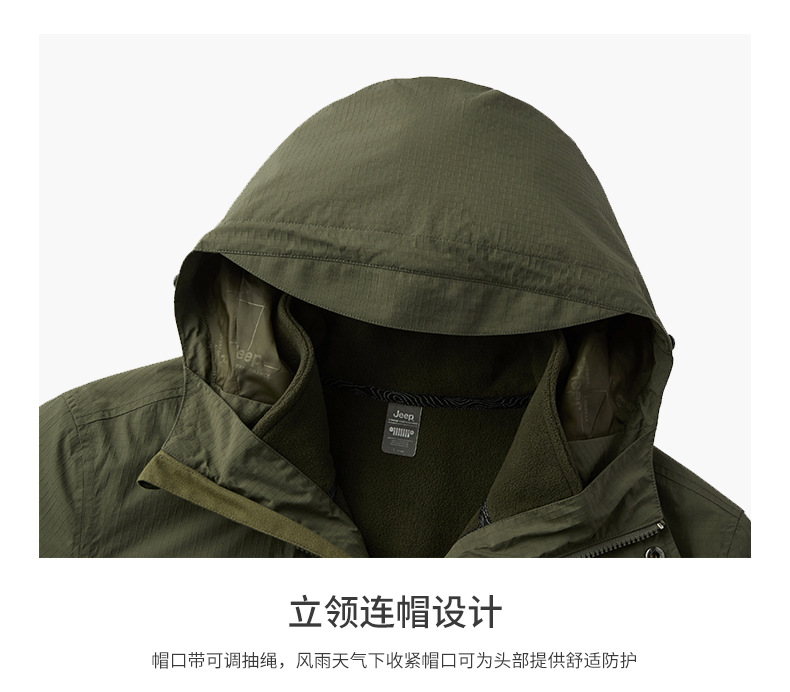 JEEP 秋冬季新款男式休闲冲锋衣抓绒休闲舒适保暖防刮耐磨防水J342094091