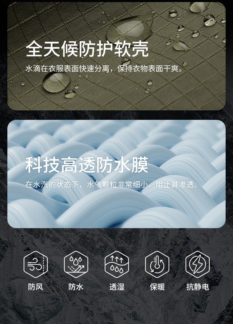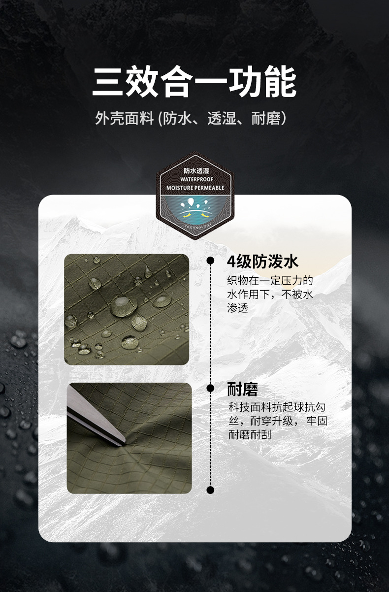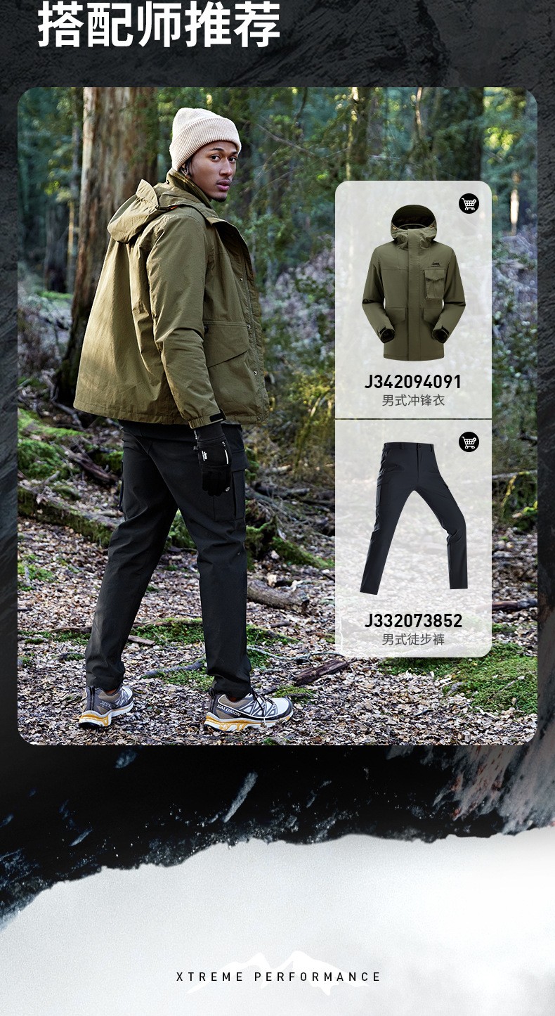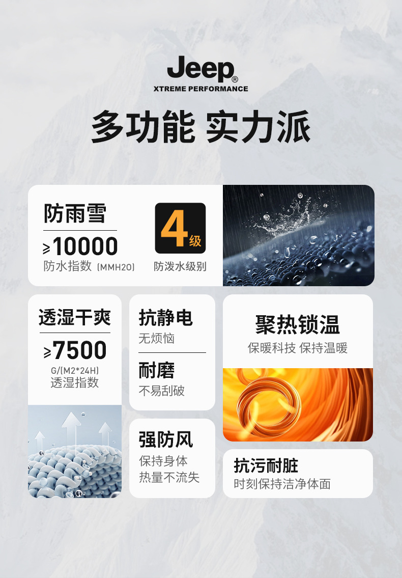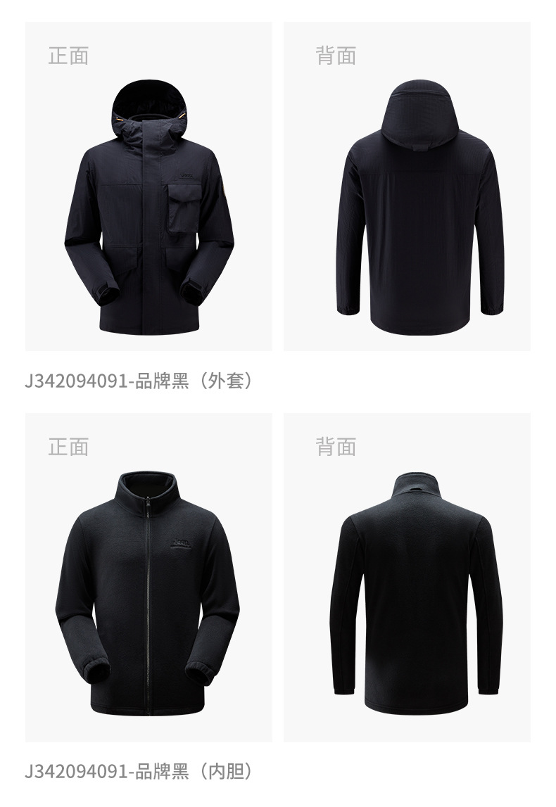 JEEP 秋冬季新款男式休闲冲锋衣抓绒休闲舒适保暖防刮耐磨防水J342094091