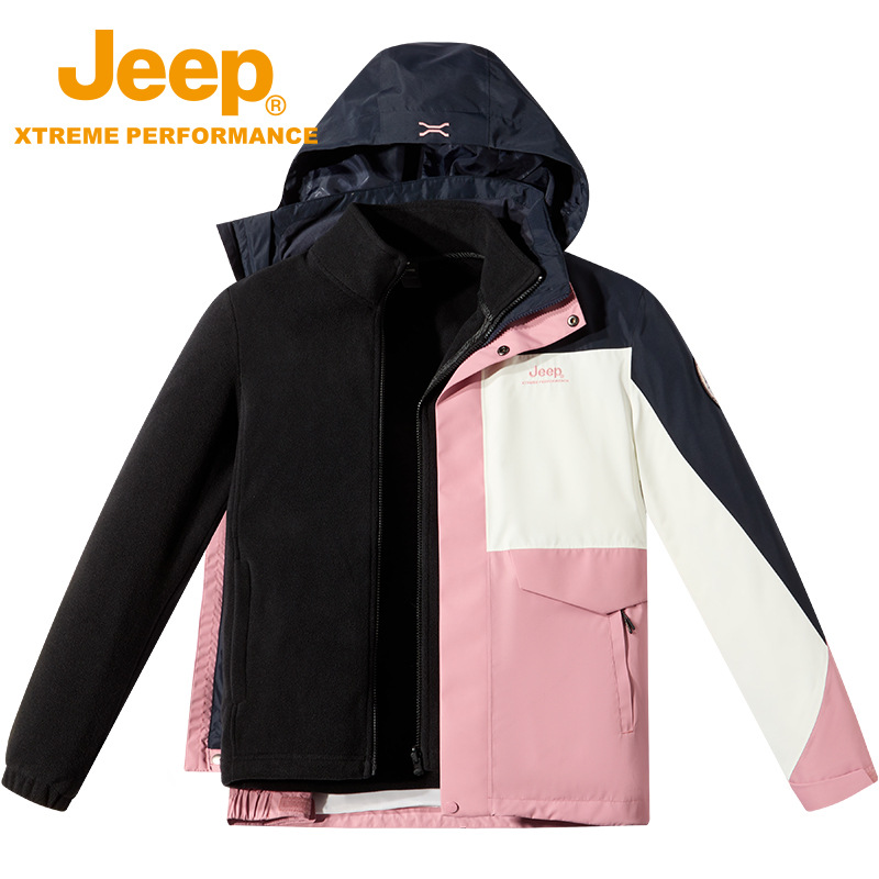 JEEP 秋冬季新款男女情侣款冲锋衣抓绒两件套保暖防水防油耐磨J342074052
