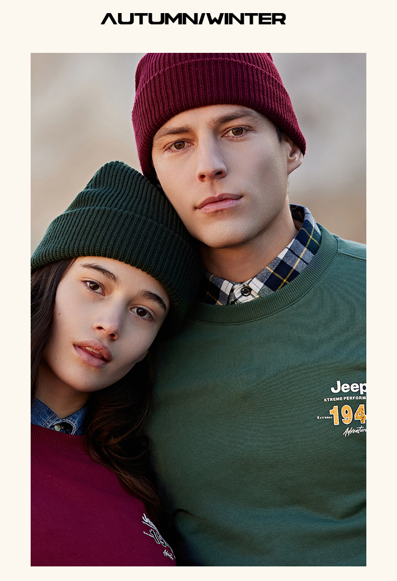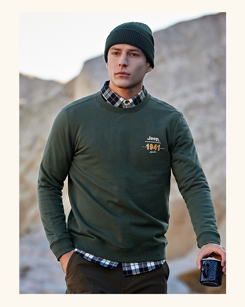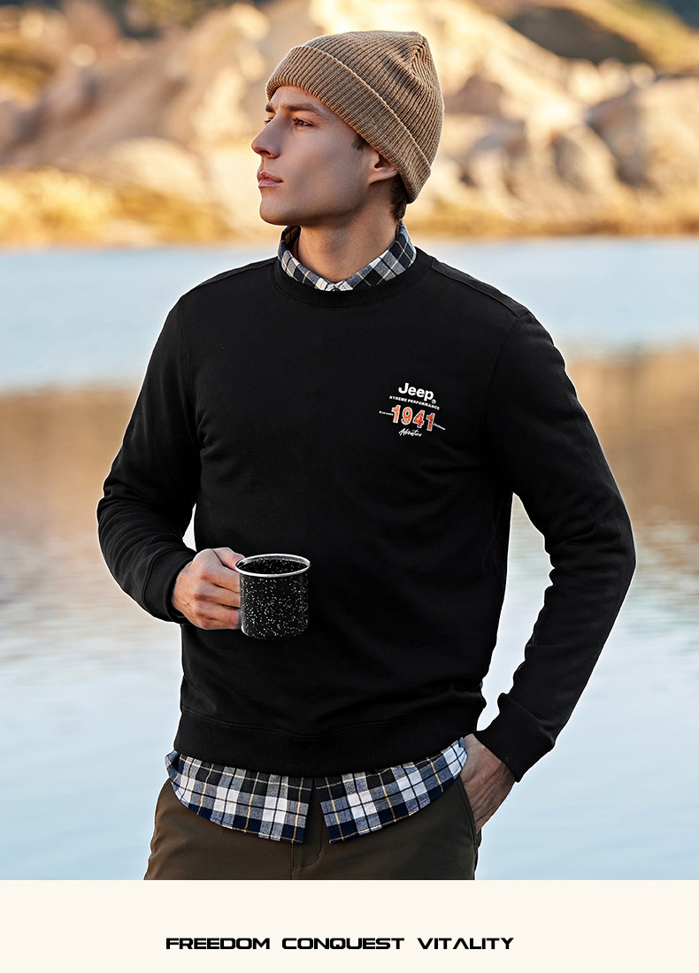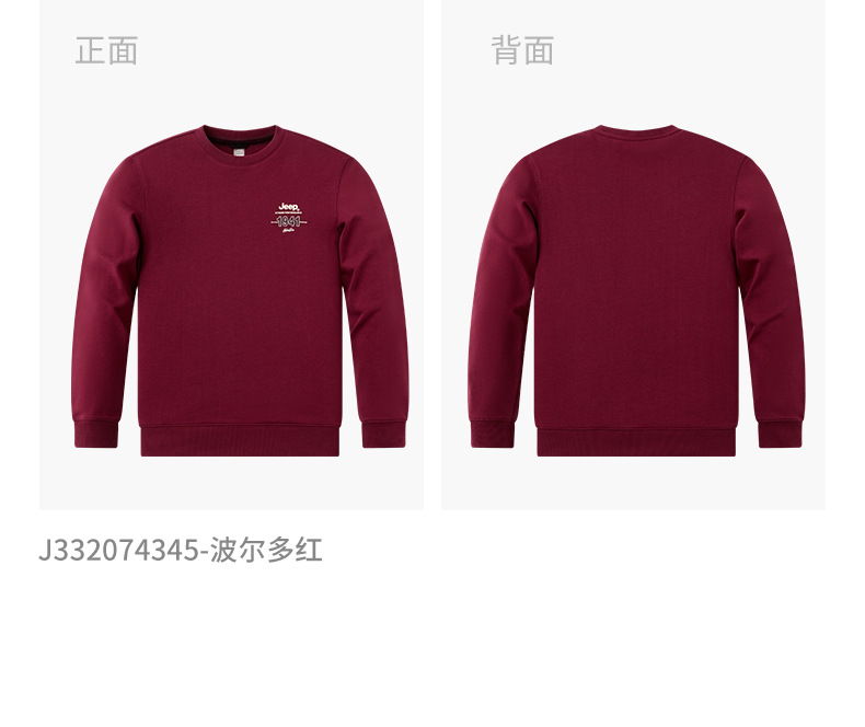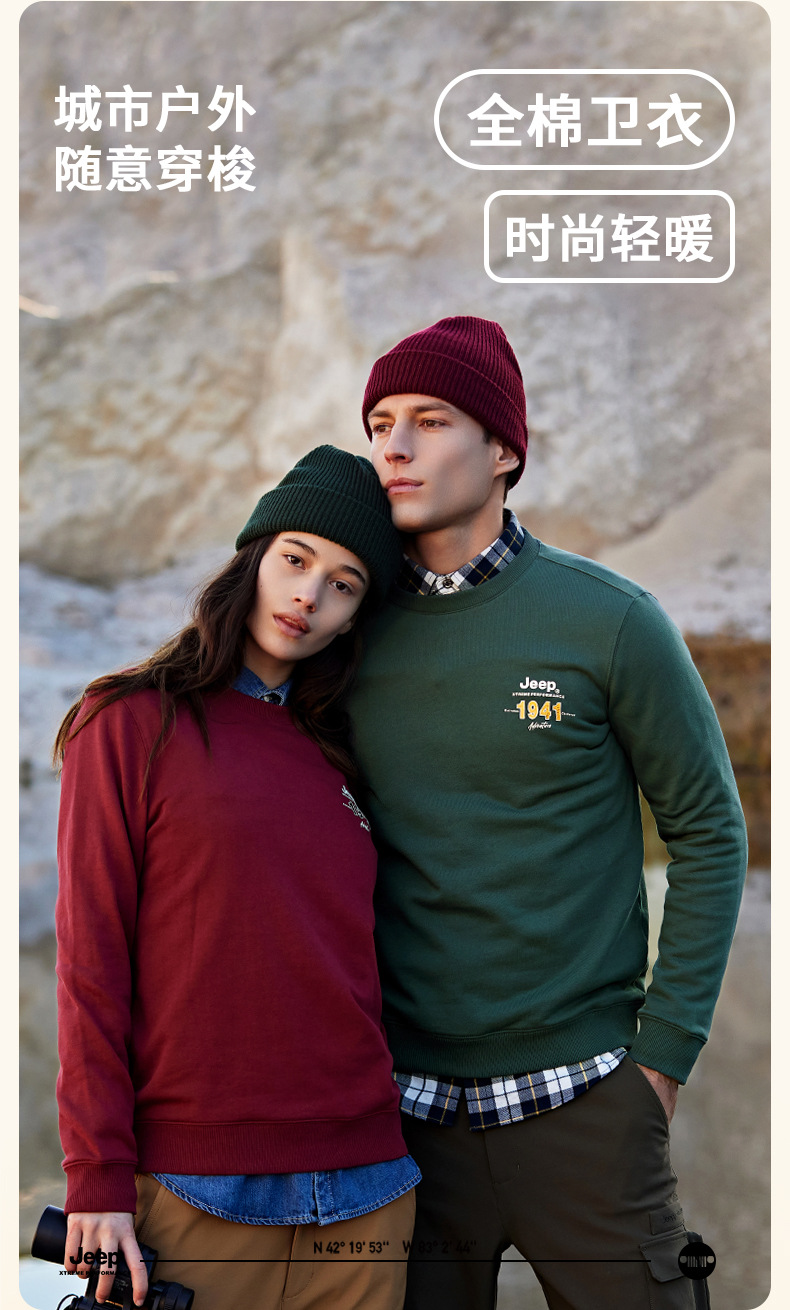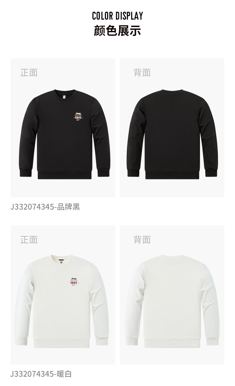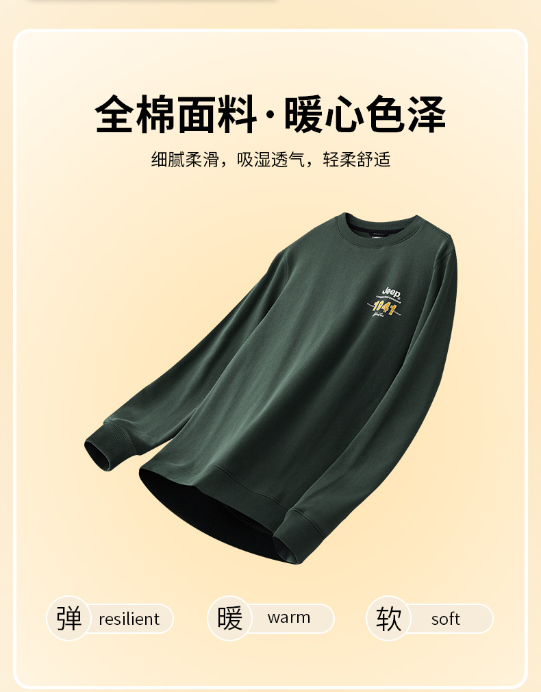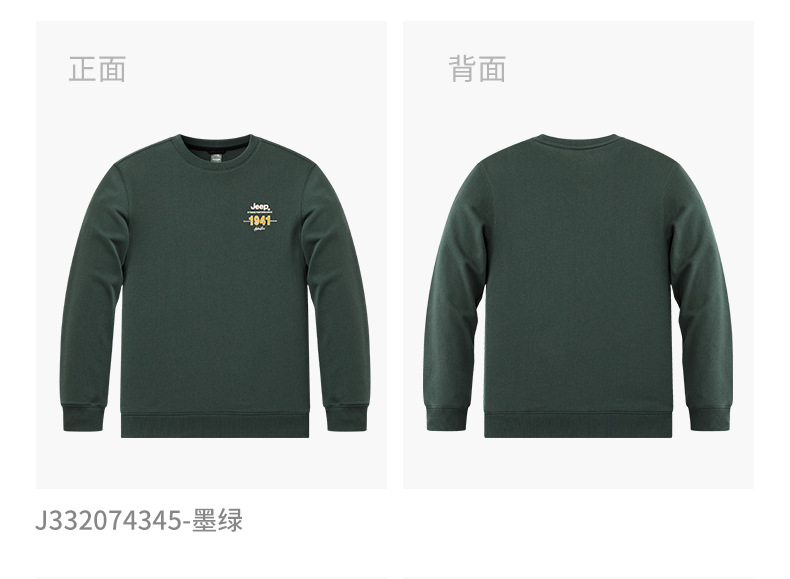 服饰配饰>男装>套头衫/卫衣> JEEP 秋冬季新款男式女同款休闲圆领卫衣舒适透气柔软亲肤保暖J332074345