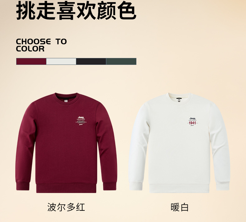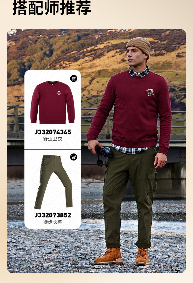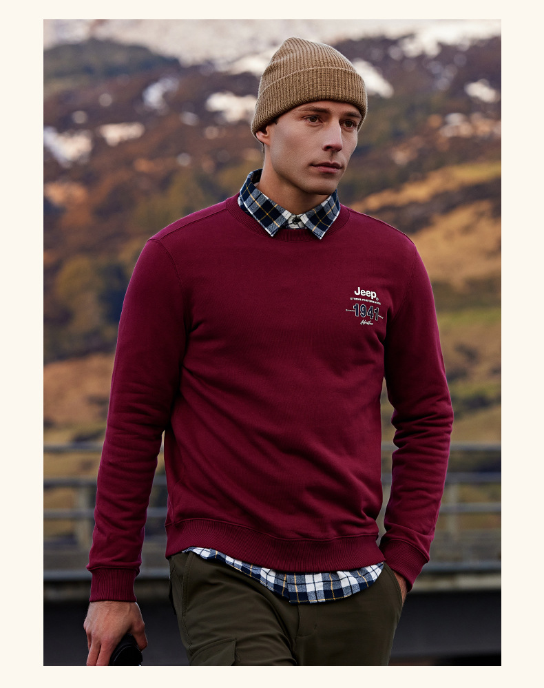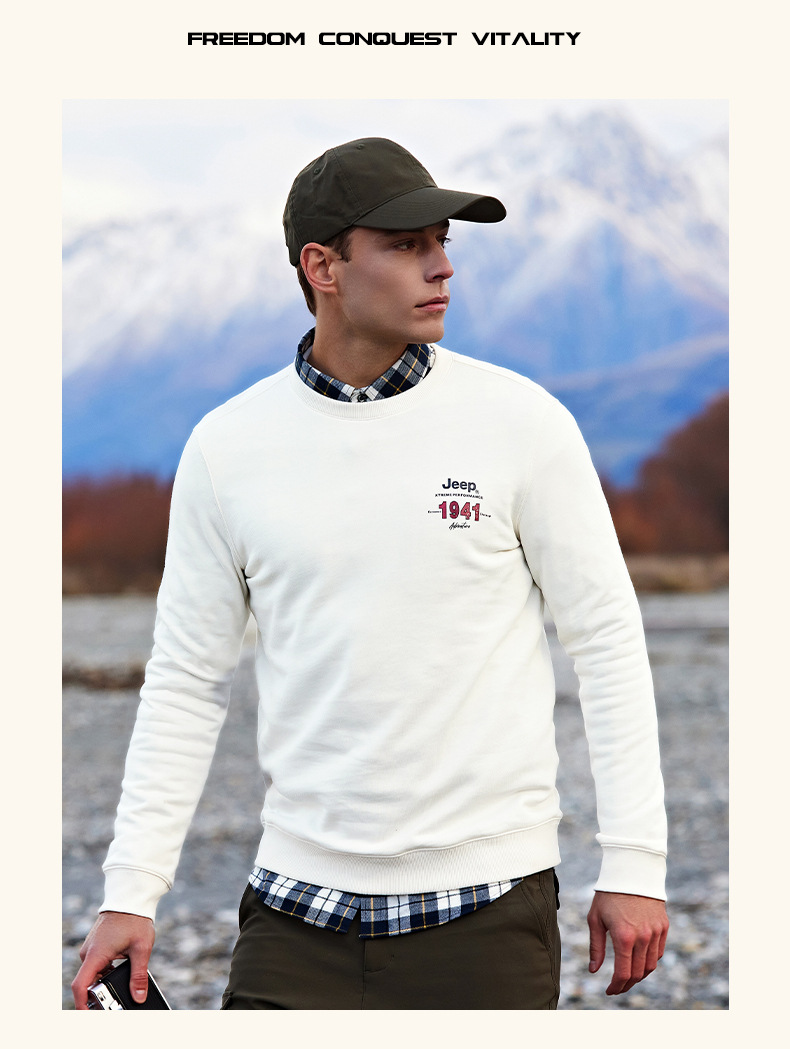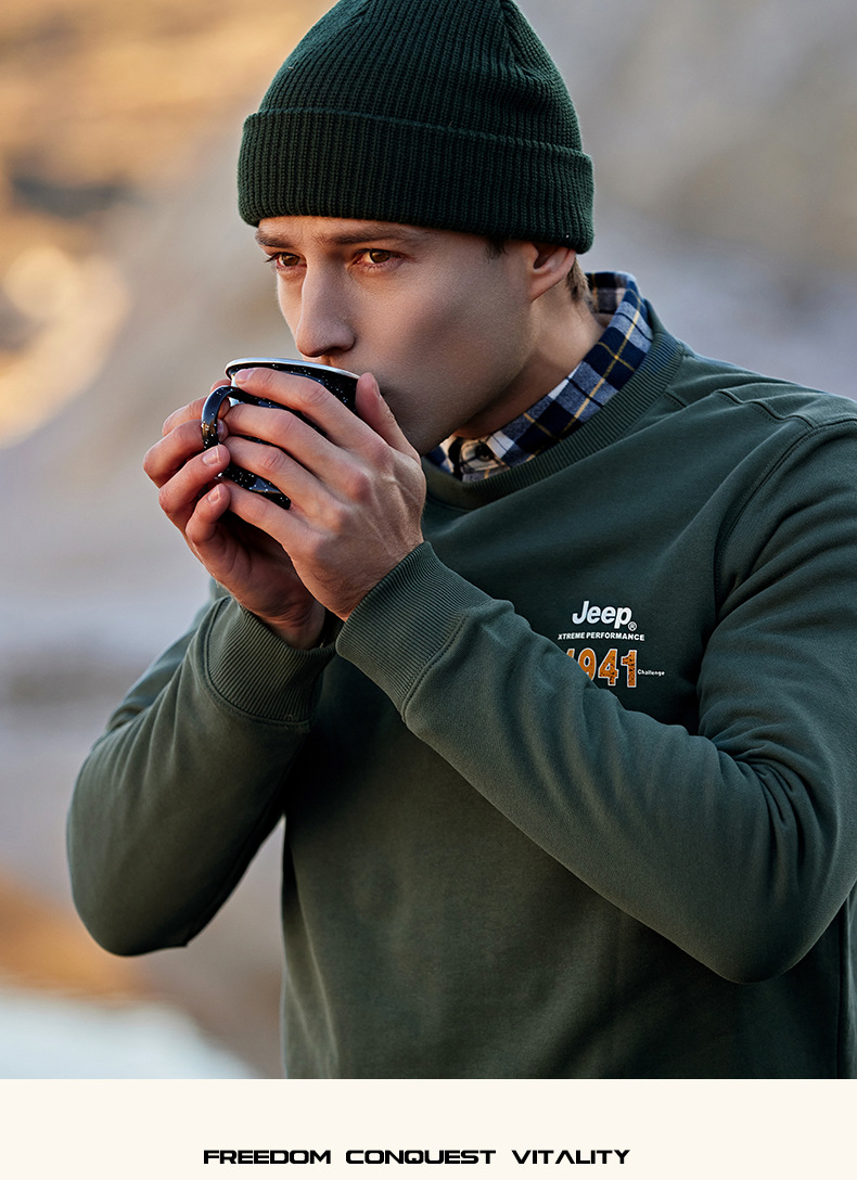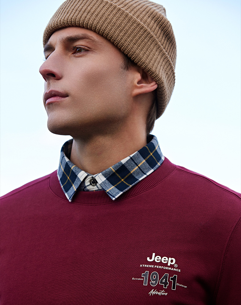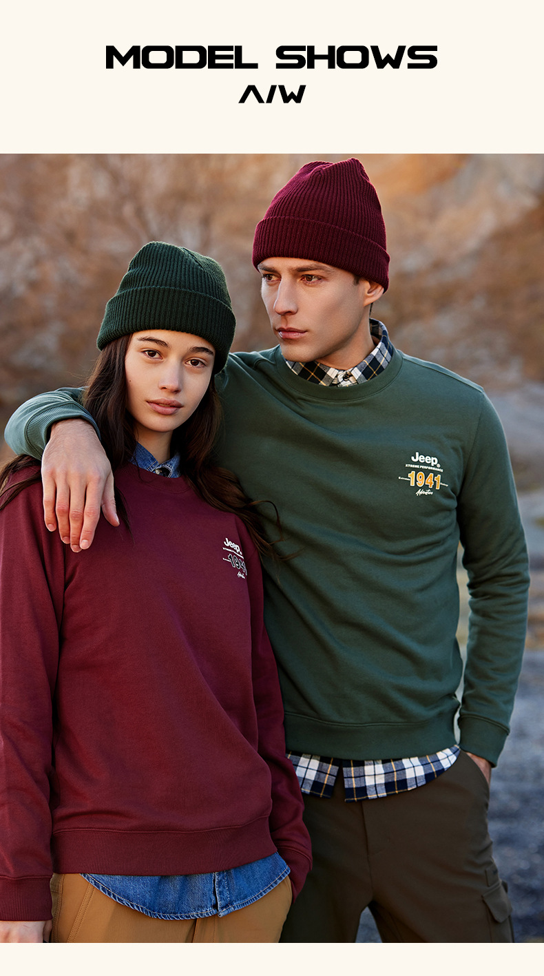 服饰配饰>男装>套头衫/卫衣> JEEP 秋冬季新款男式女同款休闲圆领卫衣舒适透气柔软亲肤保暖J332074345