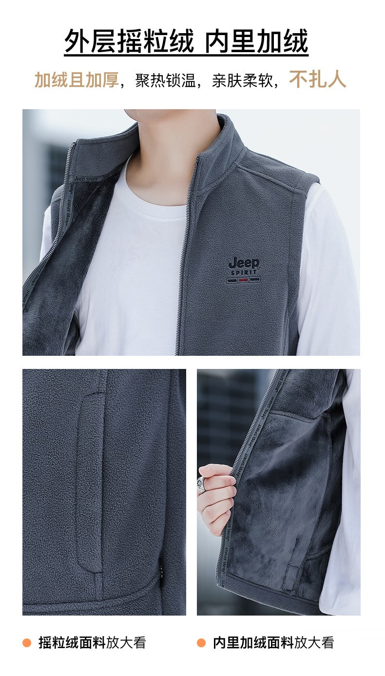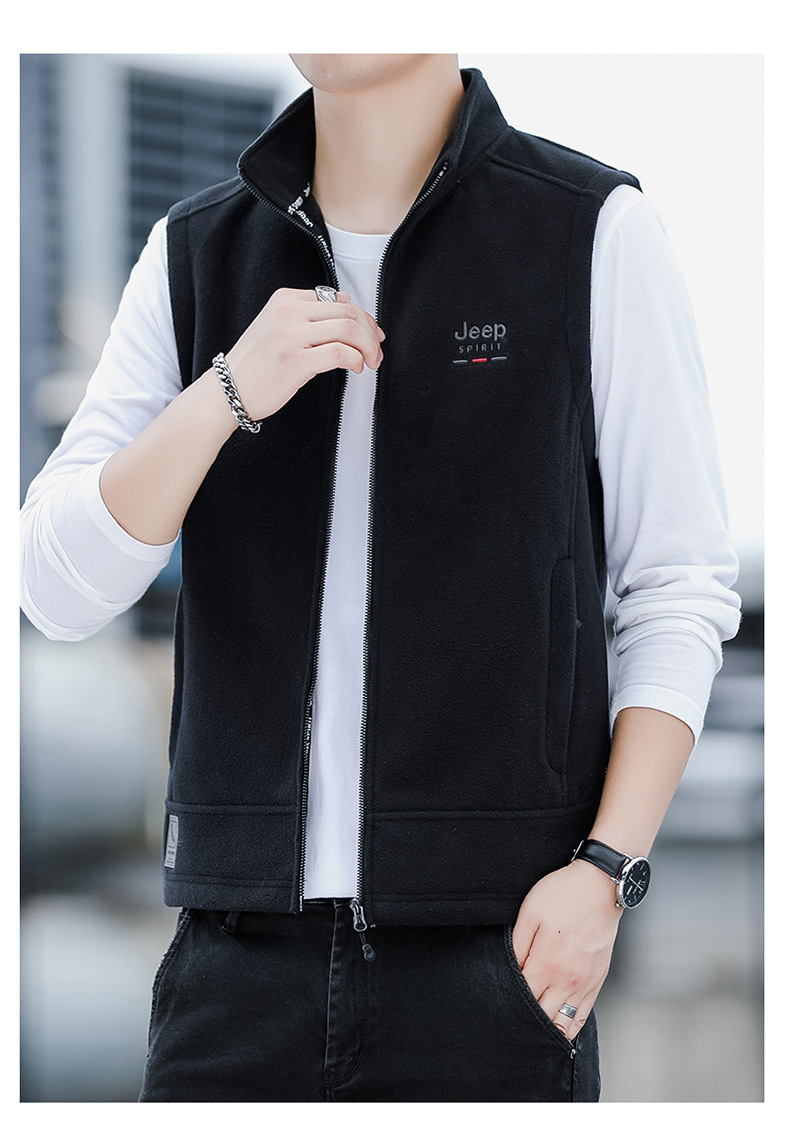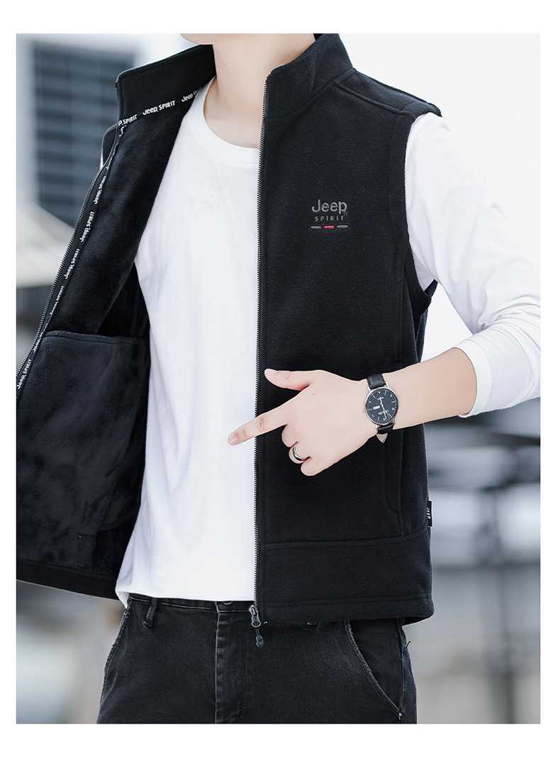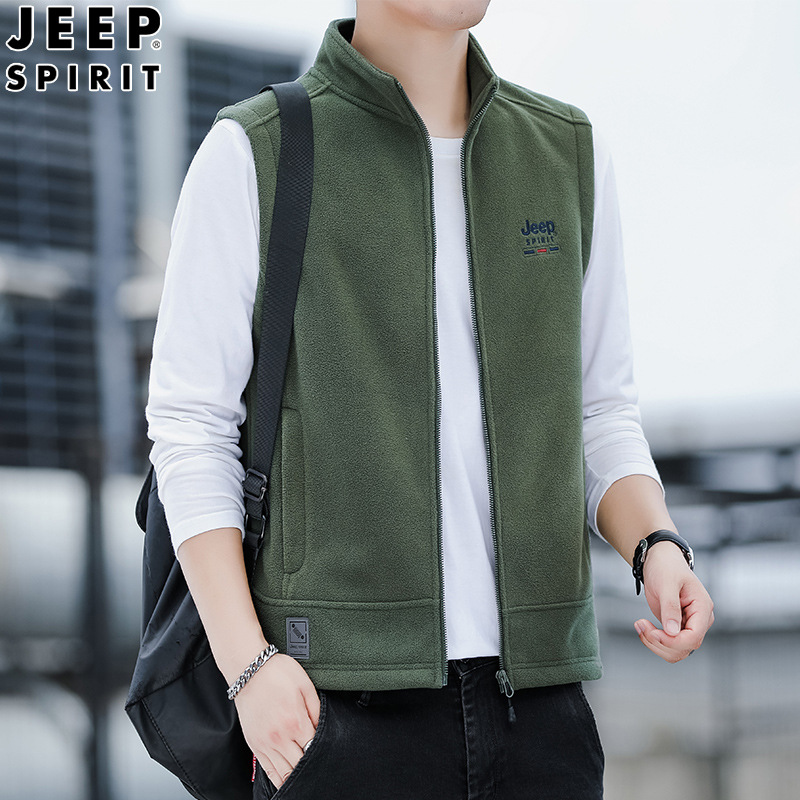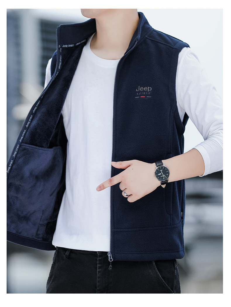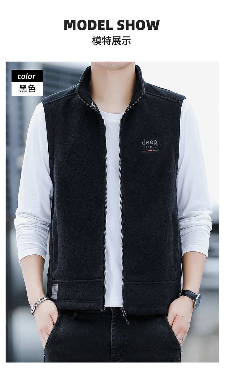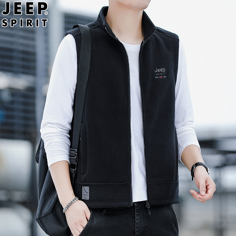 JEEP SPIRIT秋冬季新款男式休闲摇粒绒加绒马甲高领设计色泽牢固H-7018