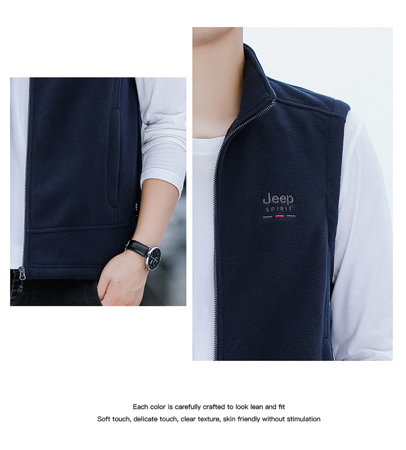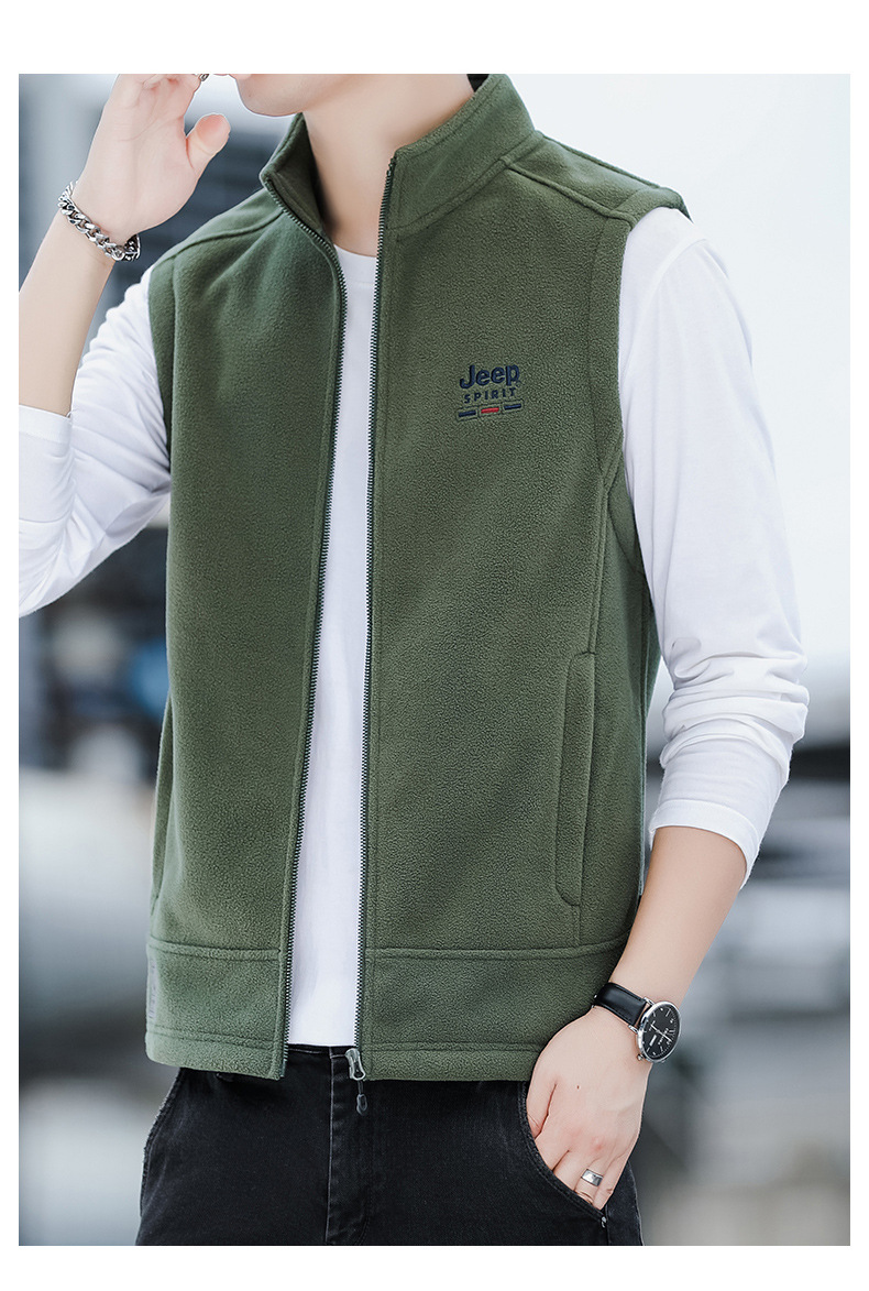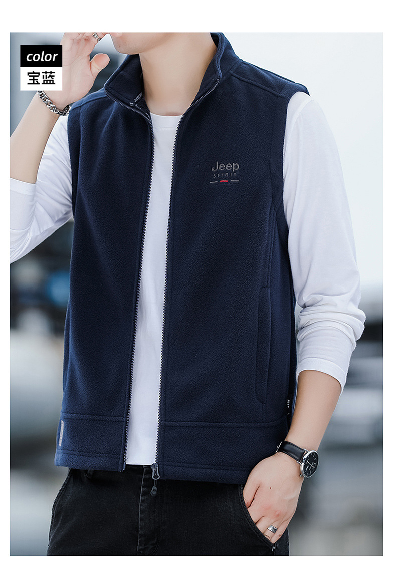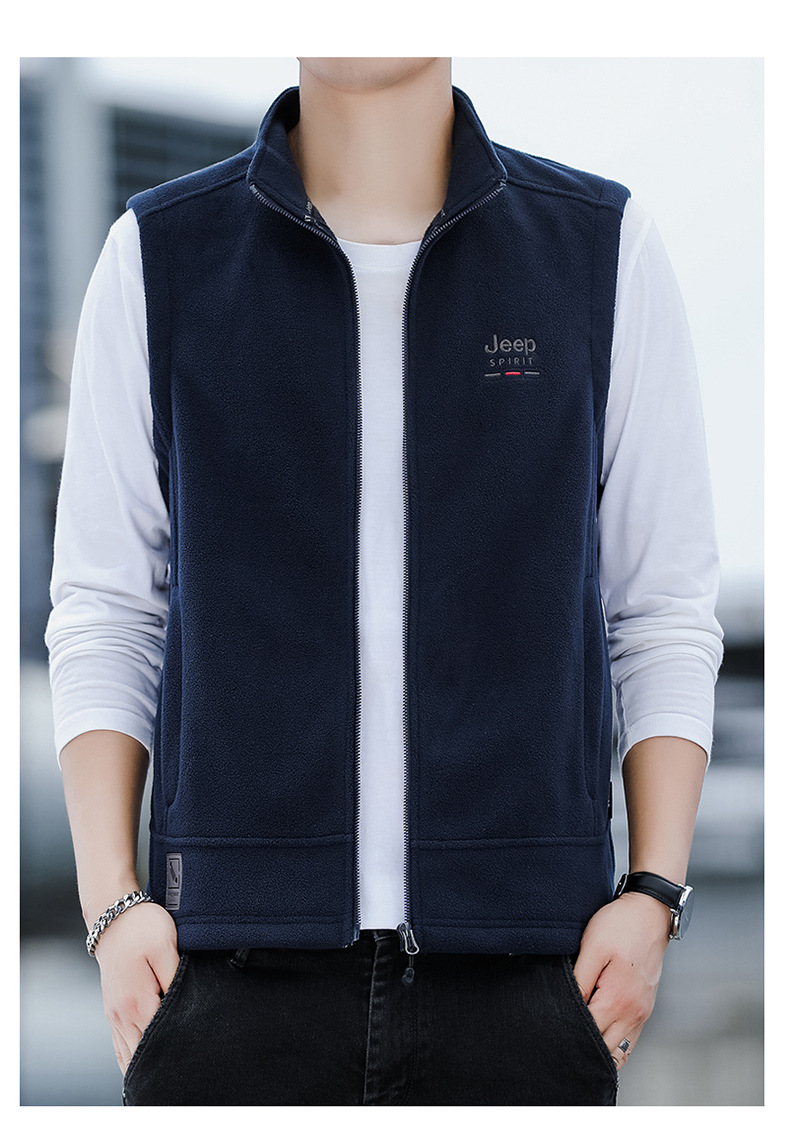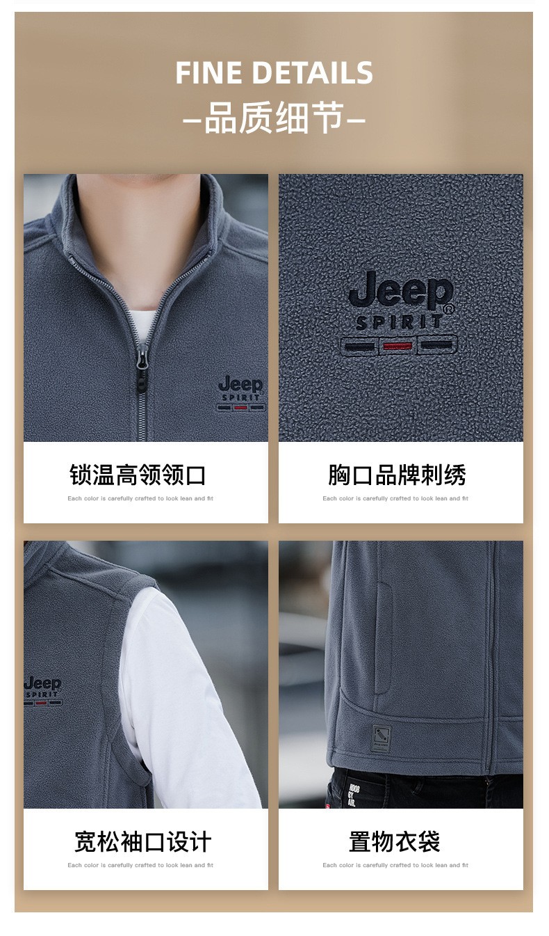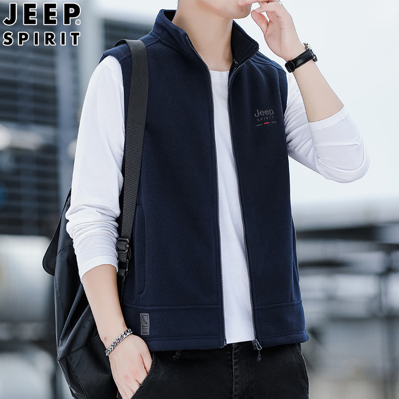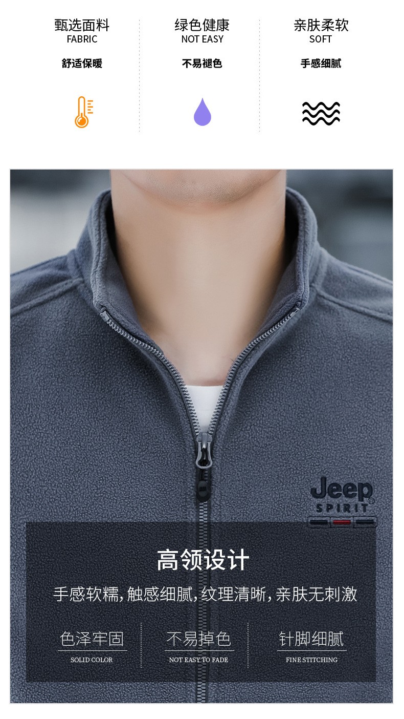 JEEP SPIRIT秋冬季新款男式休闲摇粒绒加绒马甲高领设计色泽牢固H-7018
