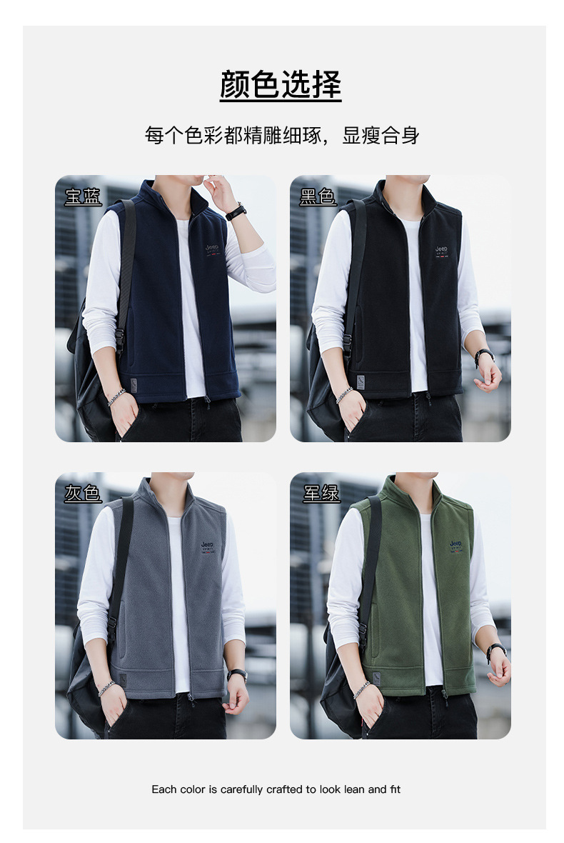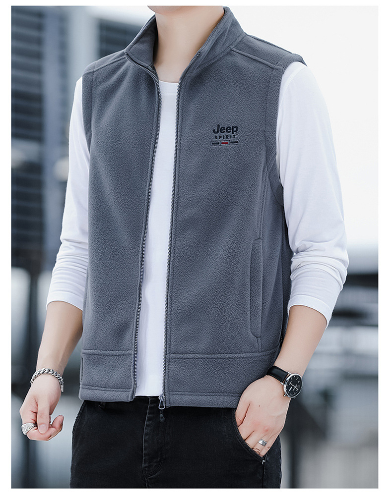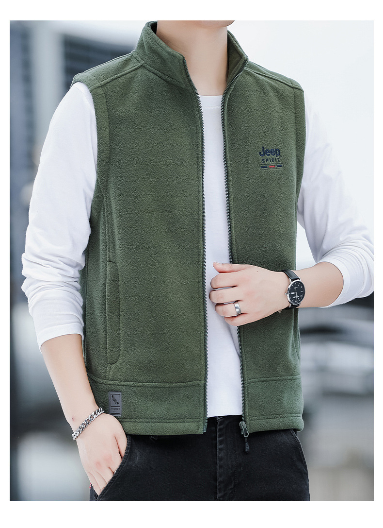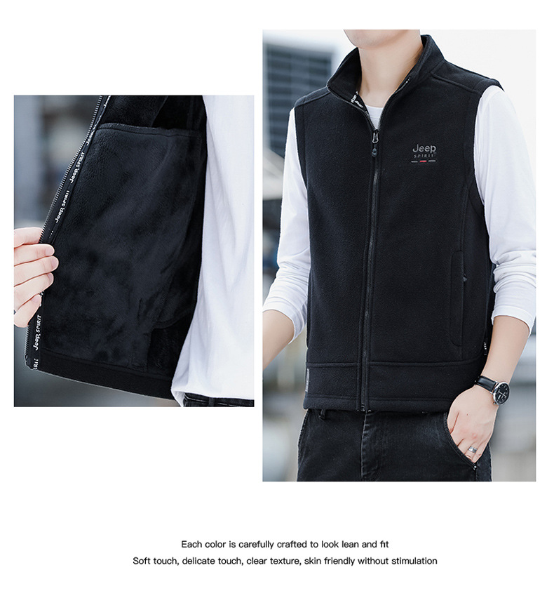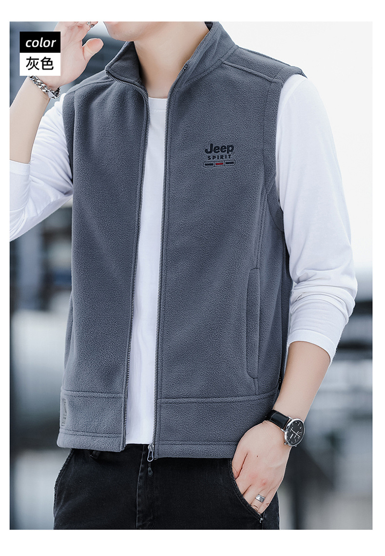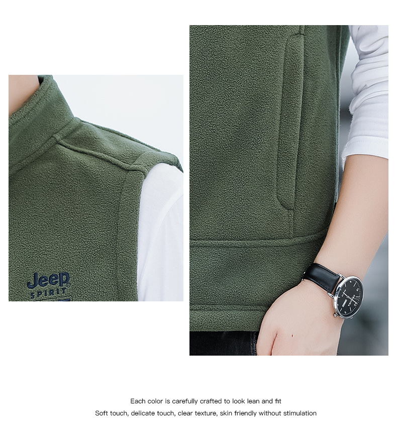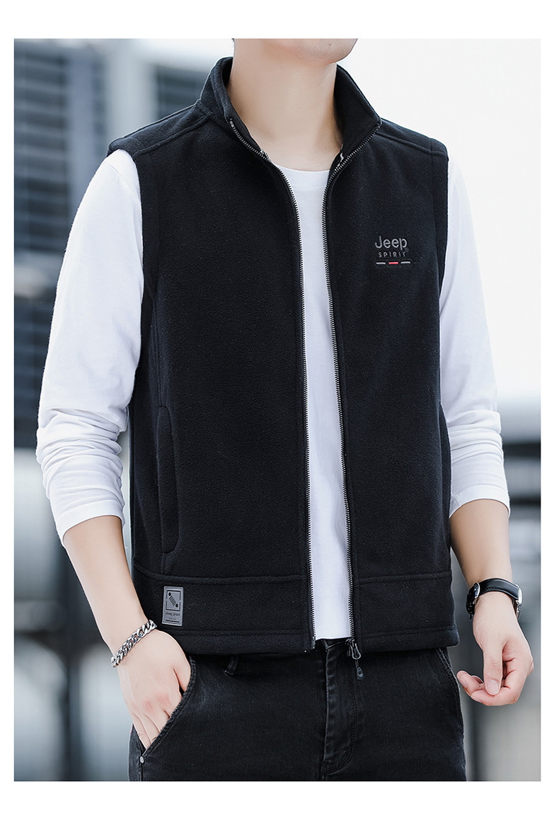 JEEP SPIRIT秋冬季新款男式休闲摇粒绒加绒马甲高领设计色泽牢固H-7018