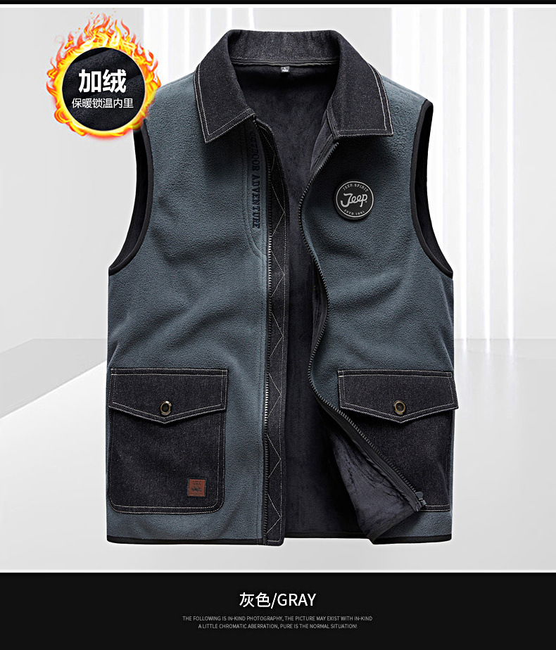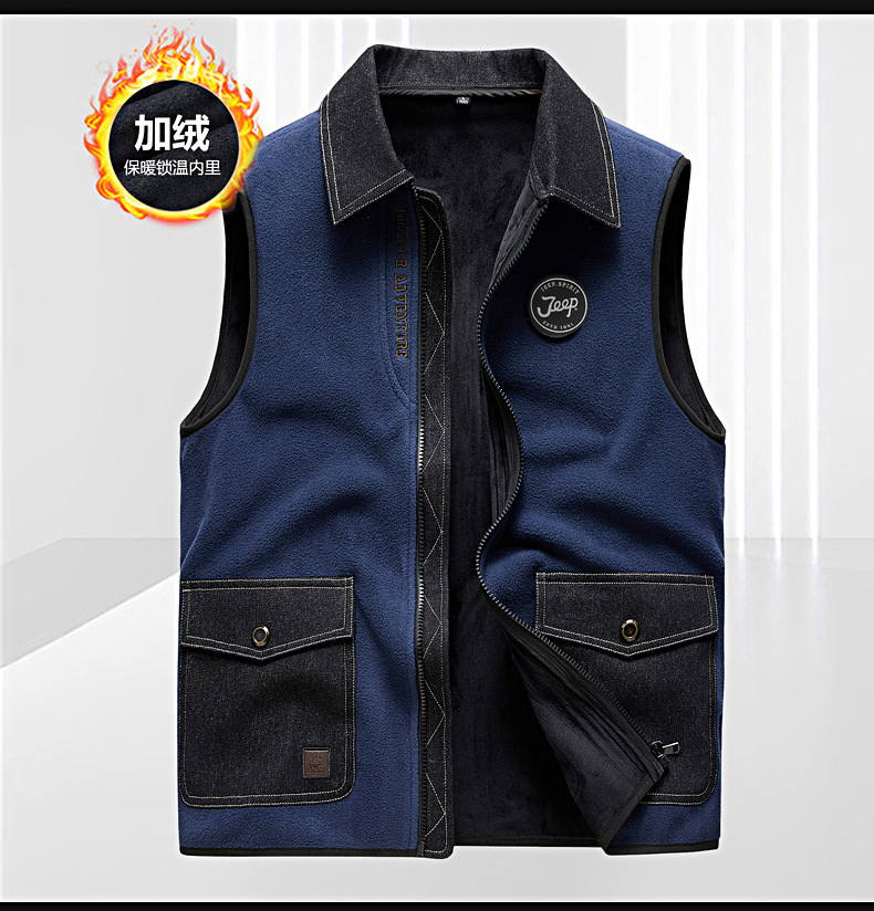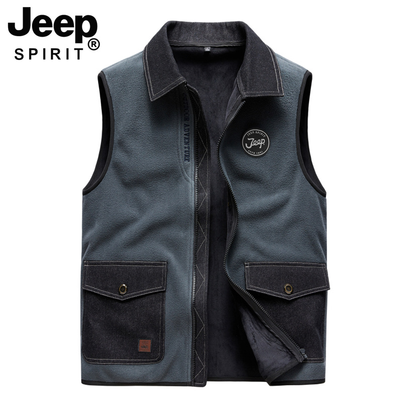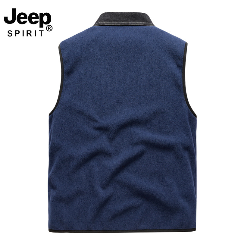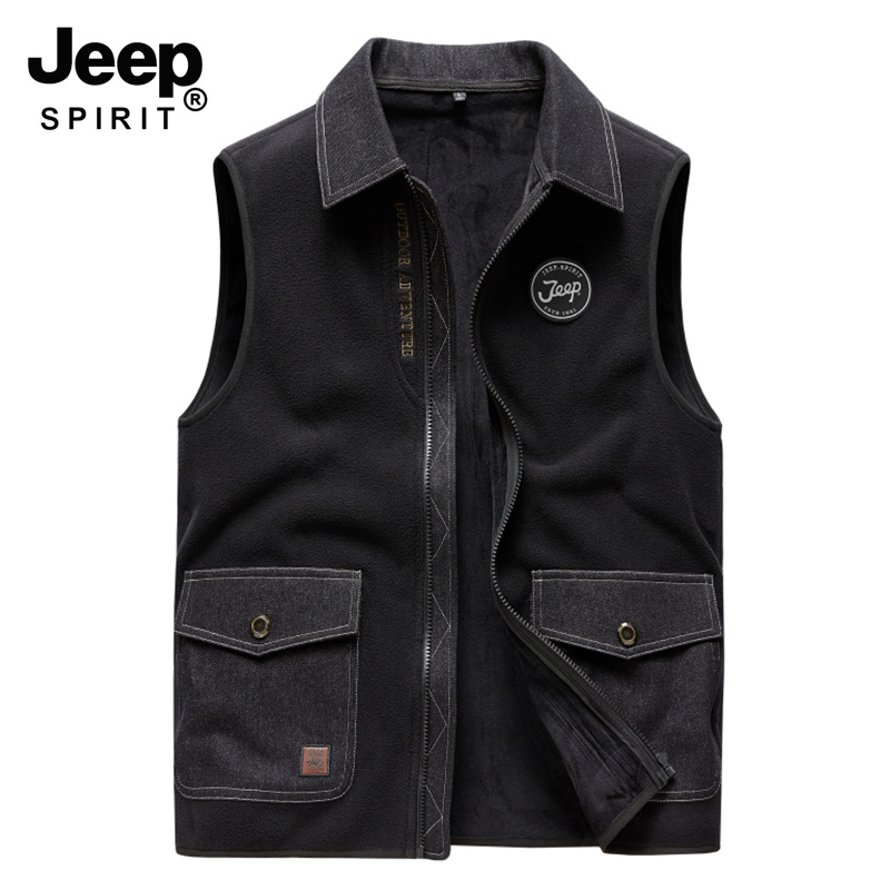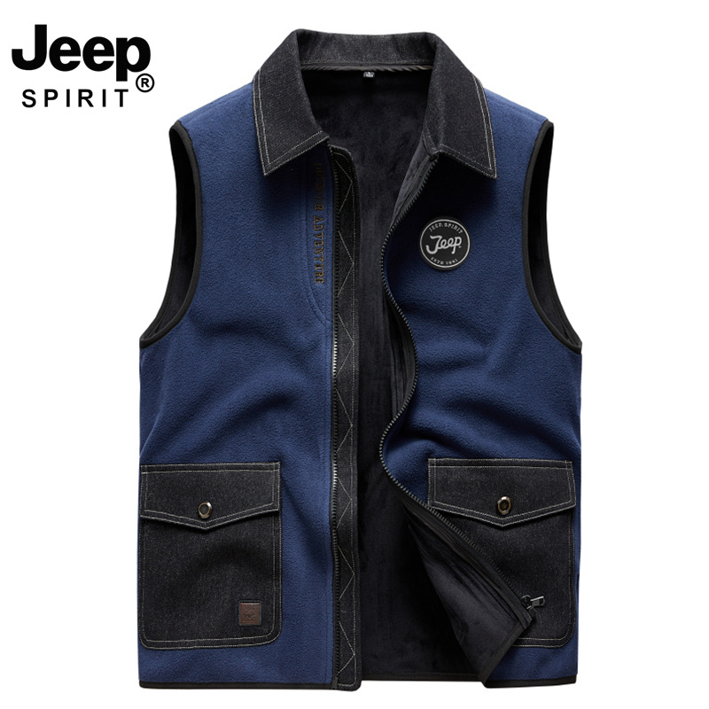 JEEP SPIRIT秋冬季新款男式摇粒绒休闲马甲牛仔拼接舒适柔软亲肤不闷热HM-0707