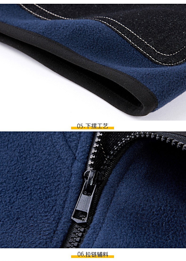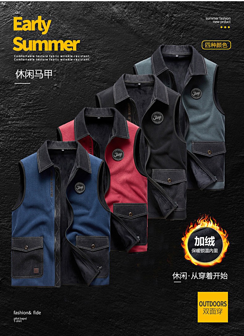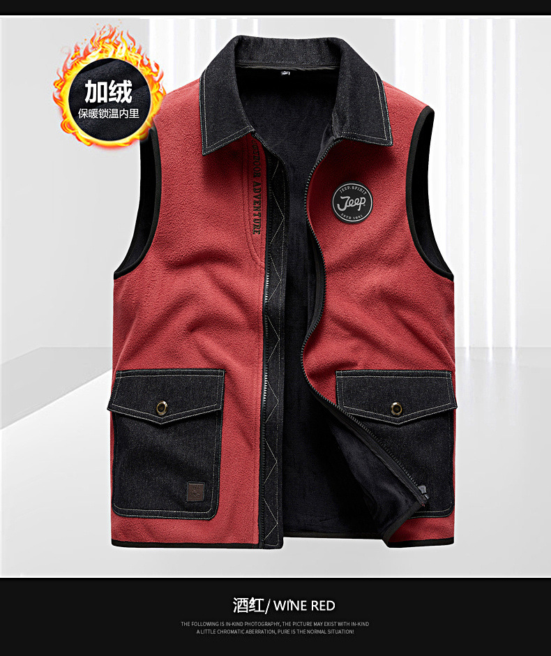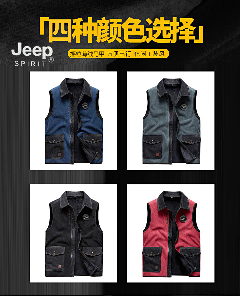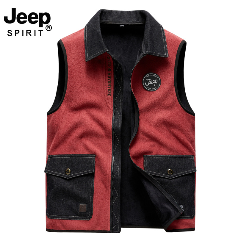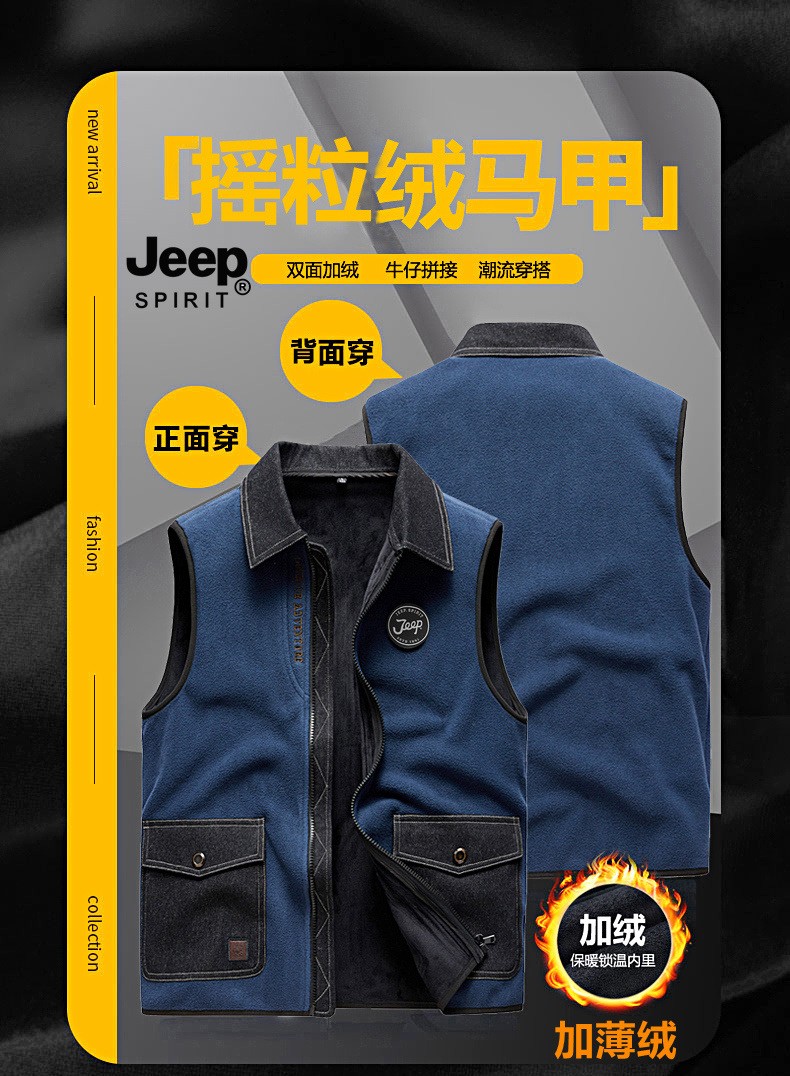 JEEP SPIRIT秋冬季新款男式摇粒绒休闲马甲牛仔拼接舒适柔软亲肤不闷热HM-0707