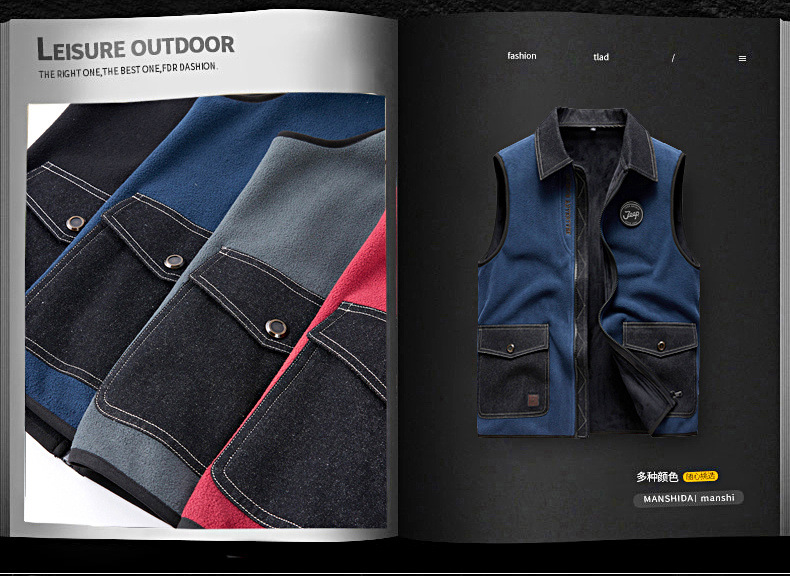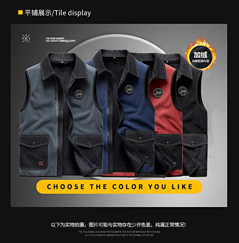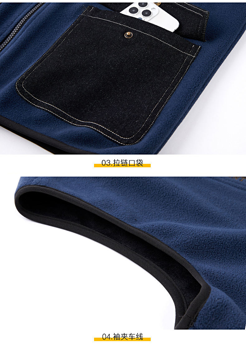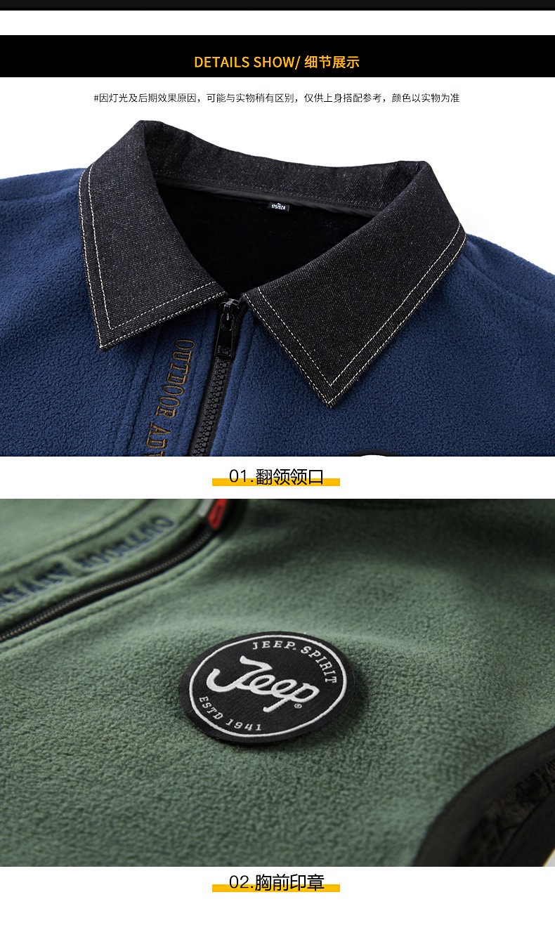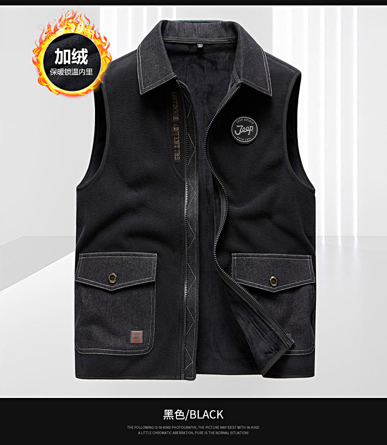 JEEP SPIRIT秋冬季新款男式摇粒绒休闲马甲牛仔拼接舒适柔软亲肤不闷热HM-0707