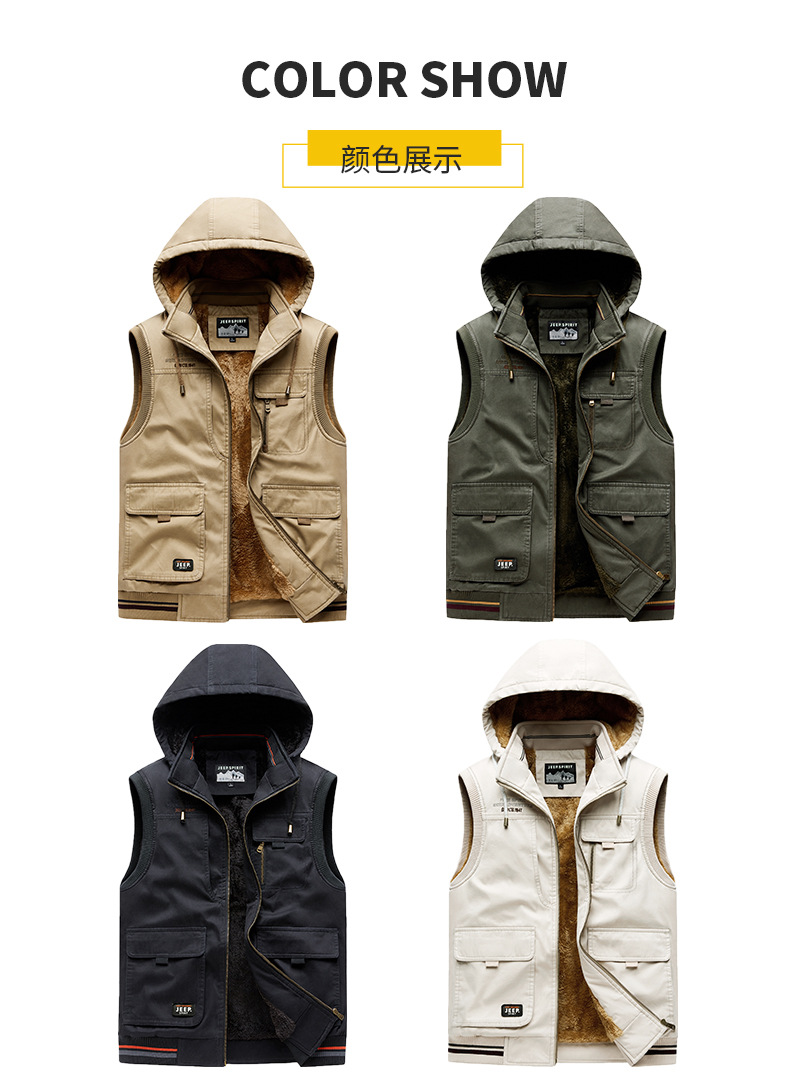 服饰配饰>男装>马甲> JEEP SPIRIT秋冬季新款男式休闲保暖马甲加绒加厚保暖舒适抵御严寒HM-0708