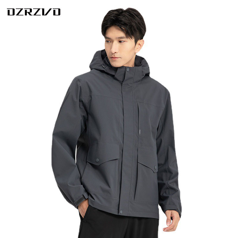 DZRZVD/杜戛地春秋新款国标压胶冲锋衣男女大口袋防风防水户外工装外套印花230803