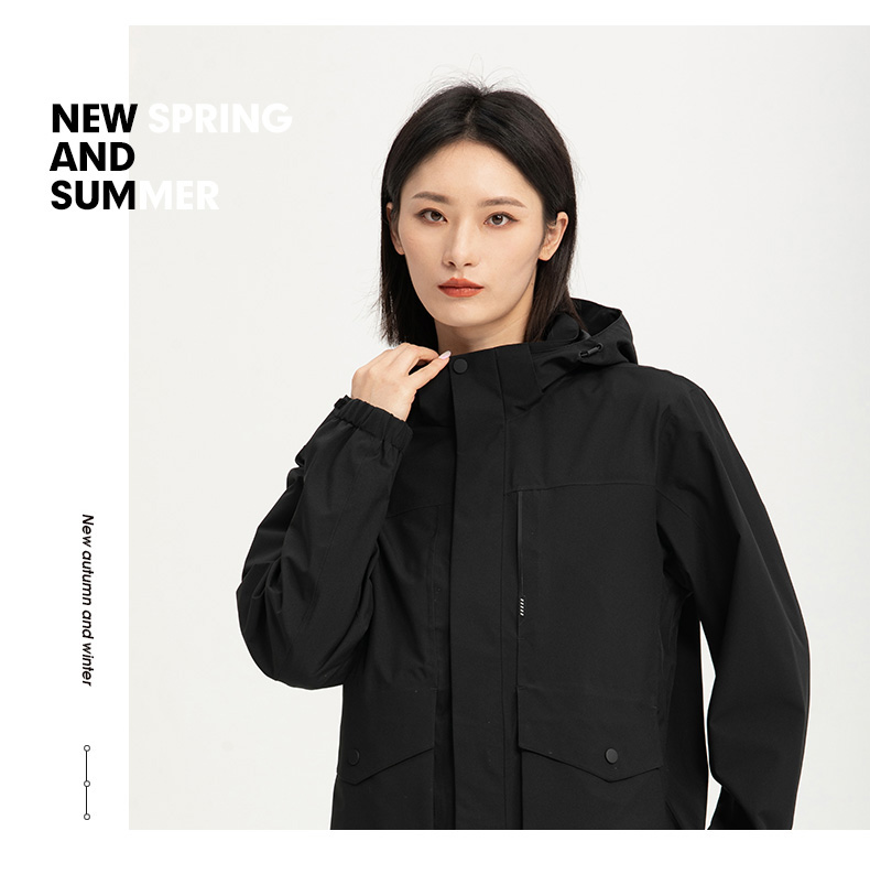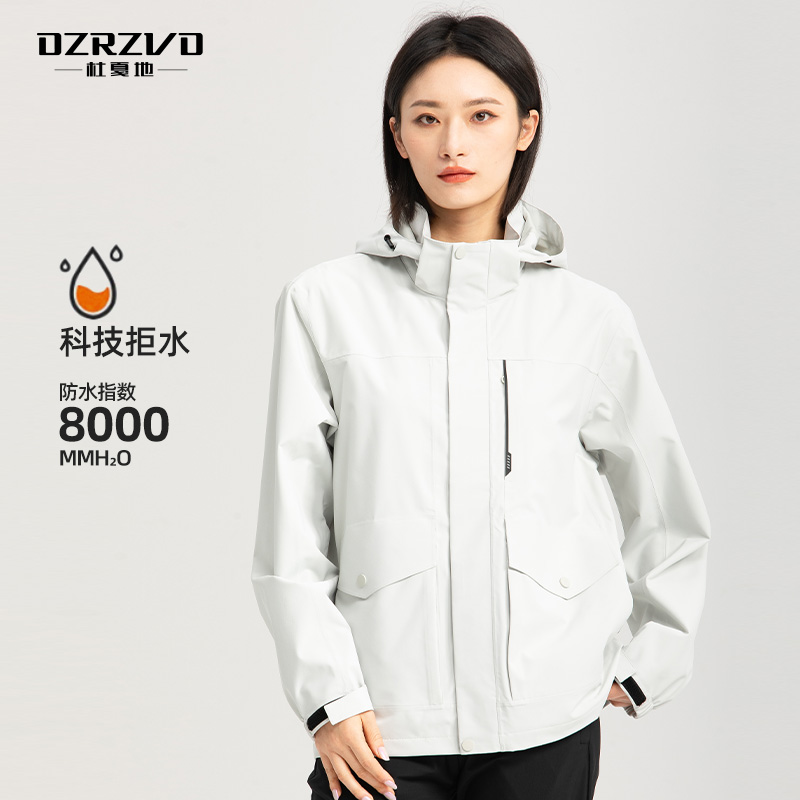 DZRZVD/杜戛地春秋新款国标压胶冲锋衣男女大口袋防风防水户外工装外套印花230803