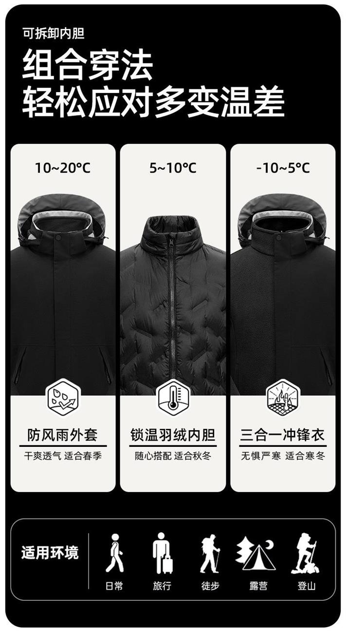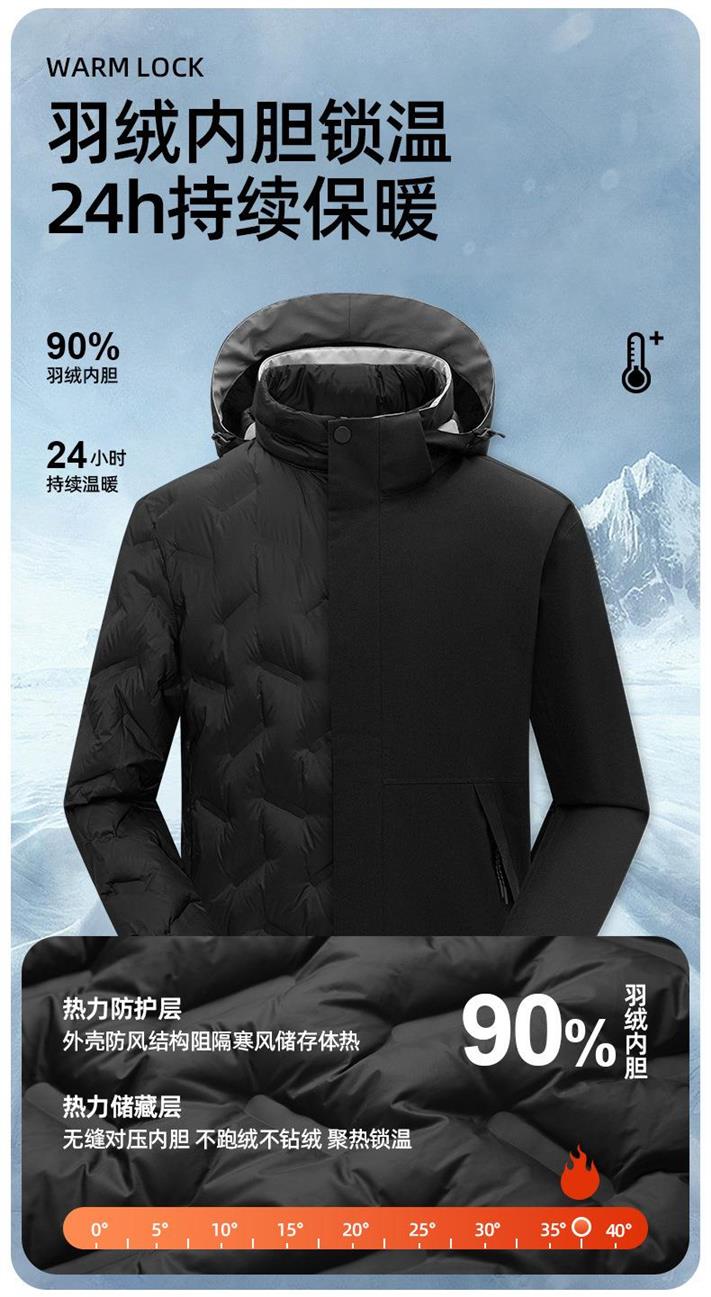 DZRZVD/杜戛地黑金羽绒冲锋衣女户外三合一秋冬防风防水白鸭绒保暖登山外套男潮流230831Y