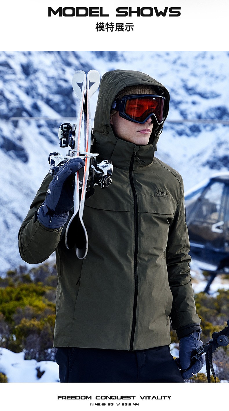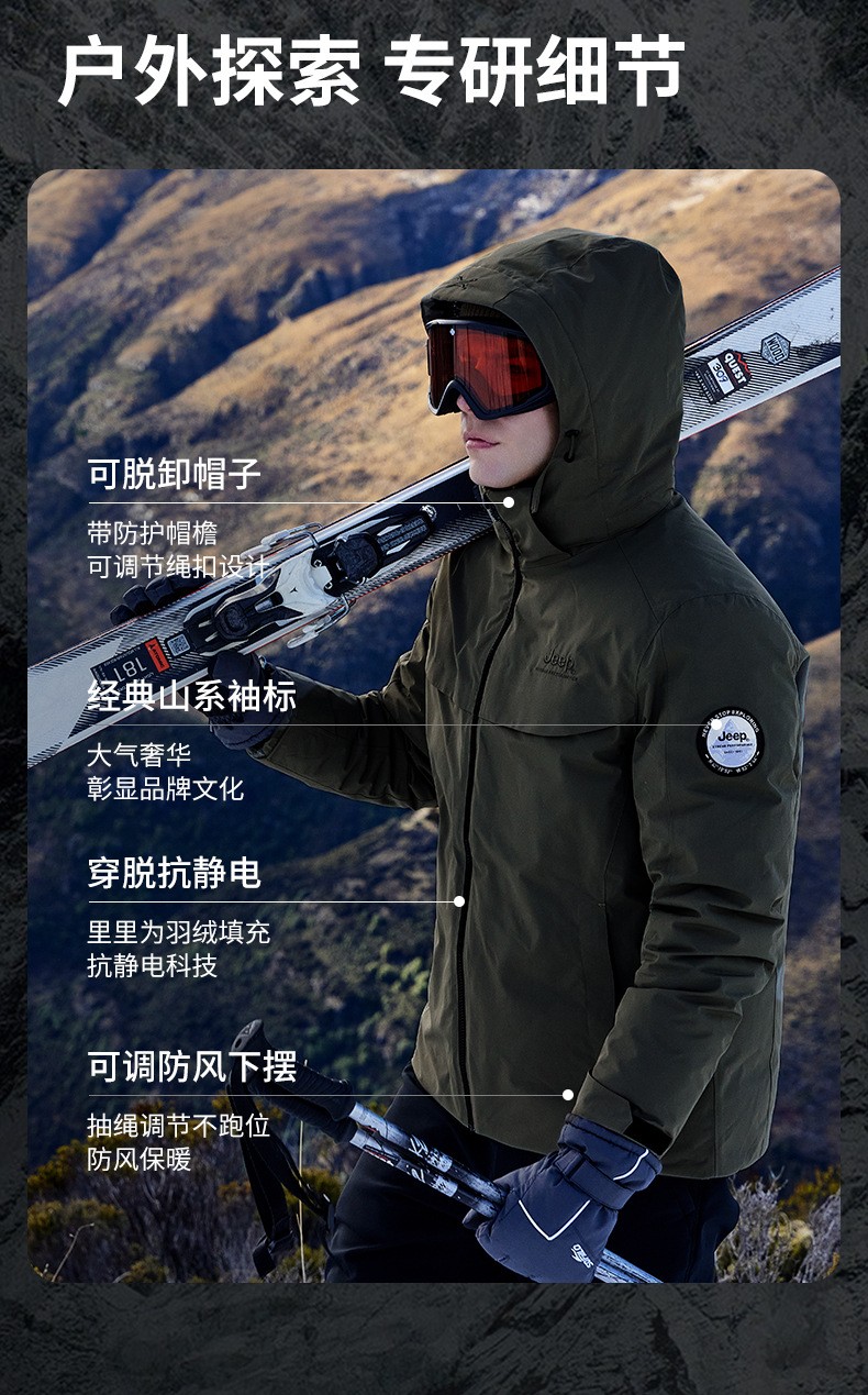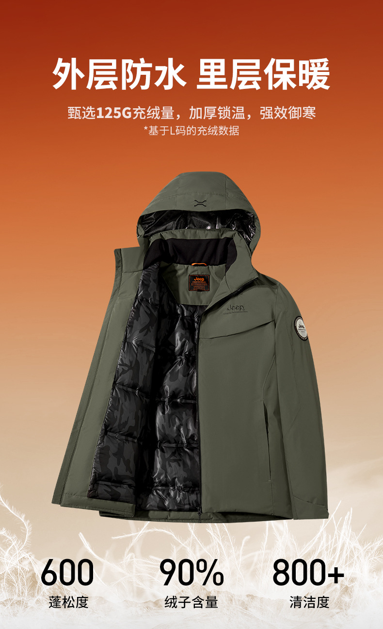 JEEP 秋冬季新款男式休闲羽绒冲锋衣防静电保暖防风防水耐磨J342094796