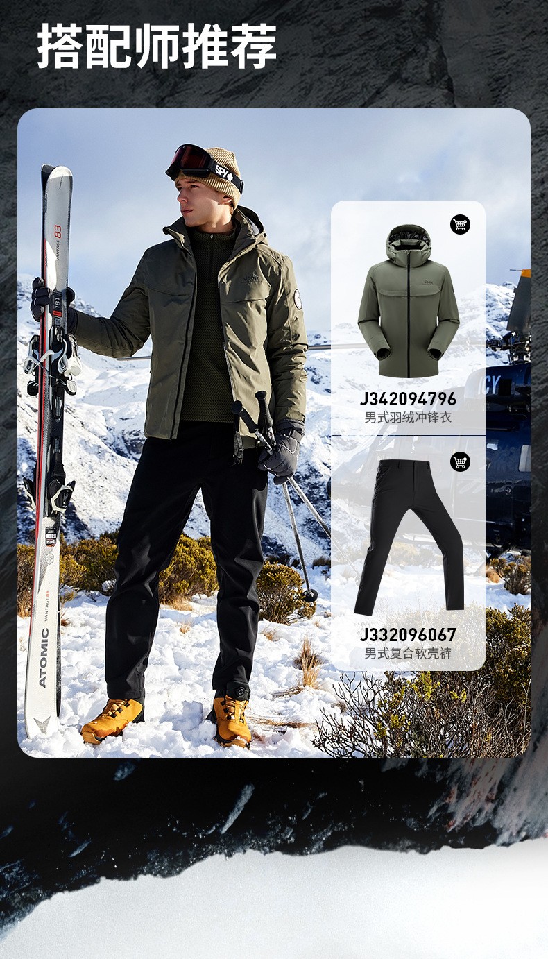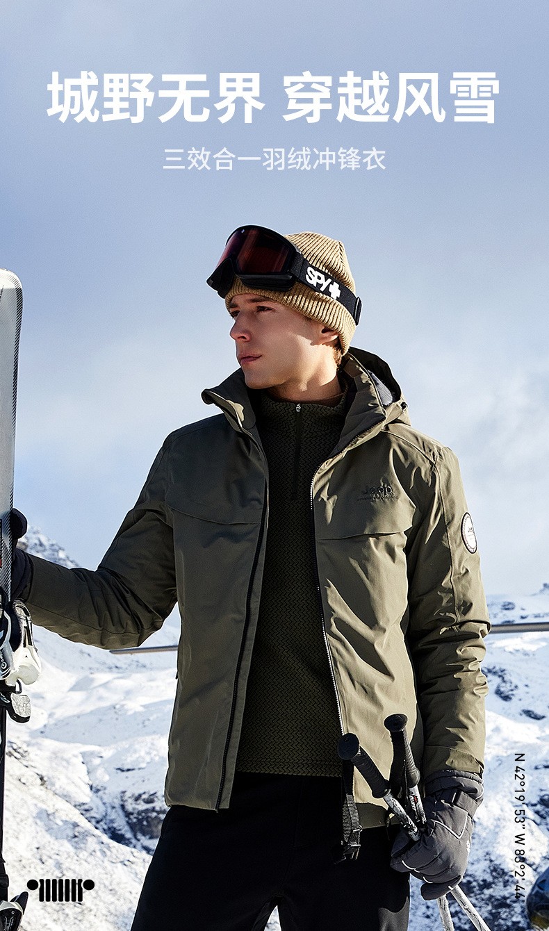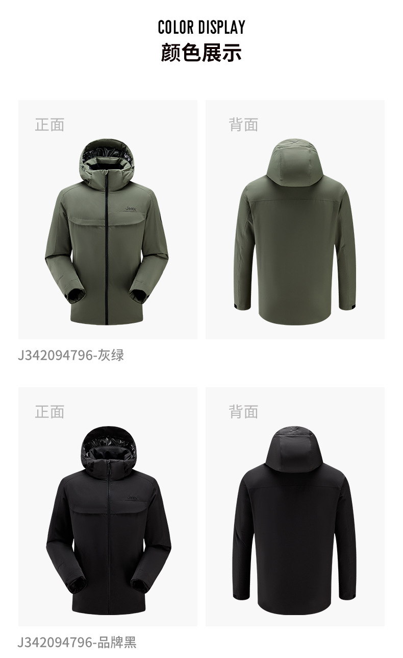 JEEP 秋冬季新款男式休闲羽绒冲锋衣防静电保暖防风防水耐磨J342094796
