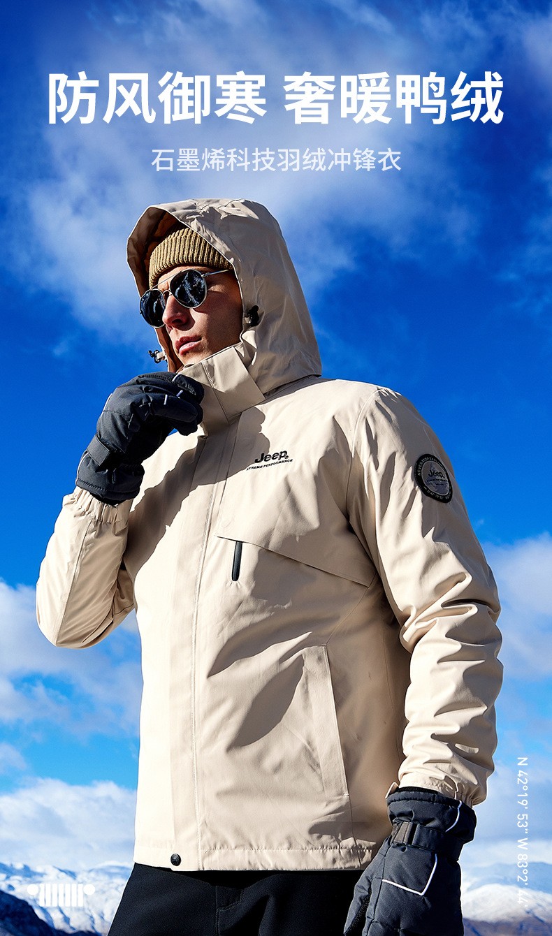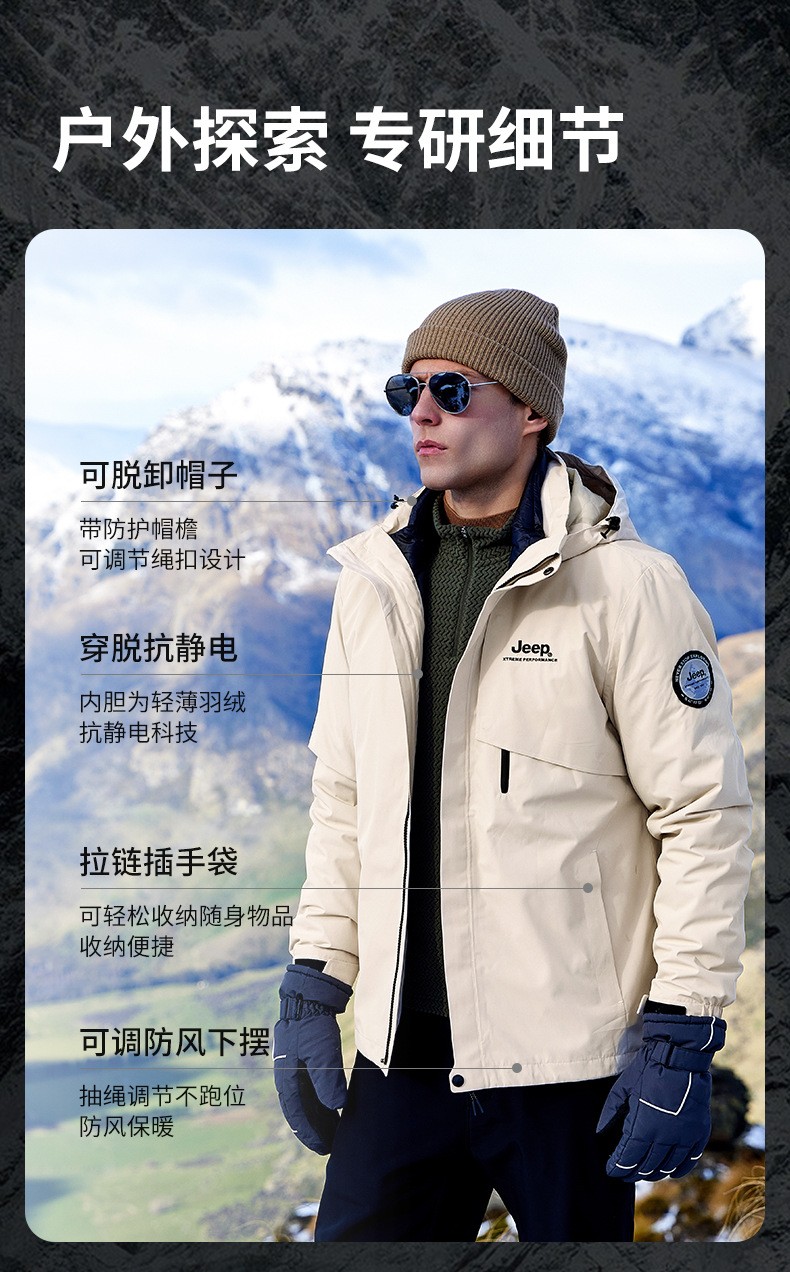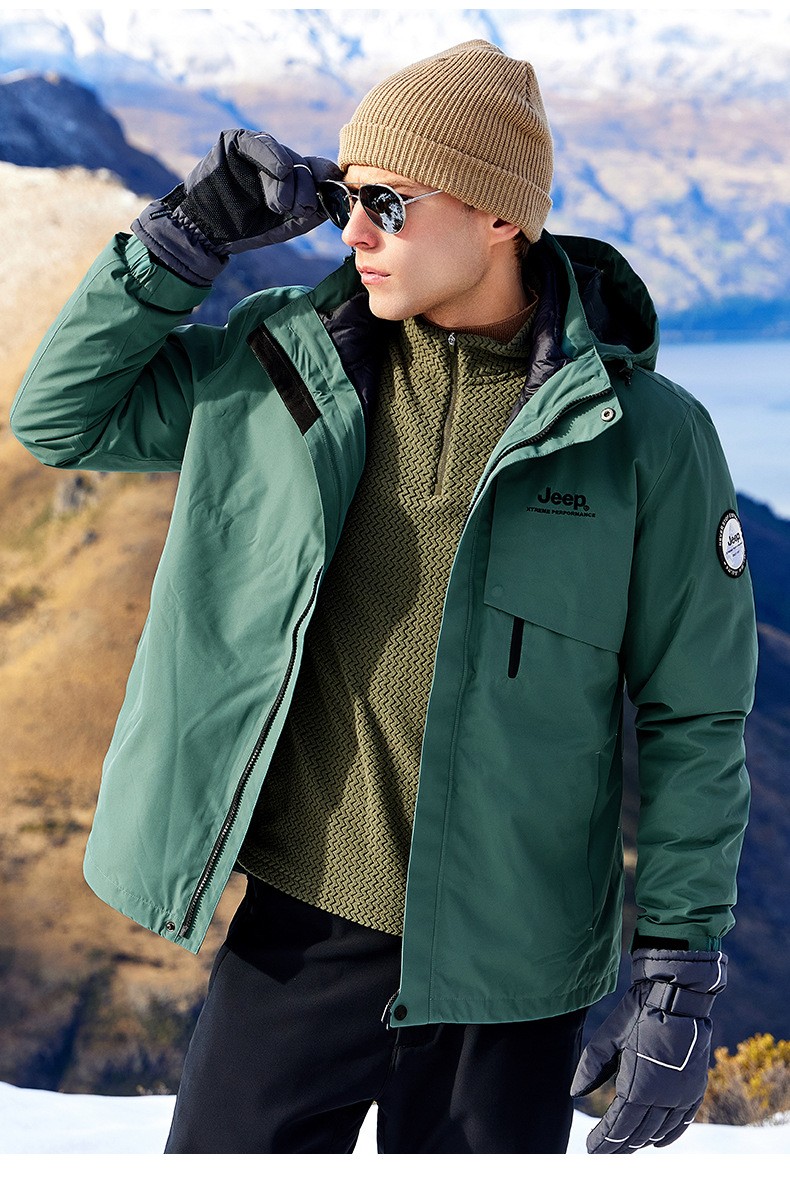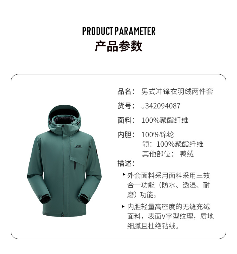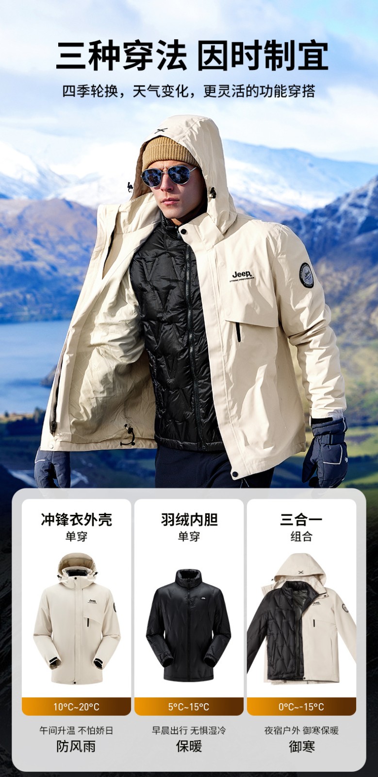JEEP 秋冬季新款男式冲锋衣羽绒两件套防水透湿耐磨保暖舒适J342094087