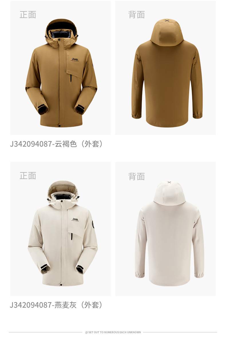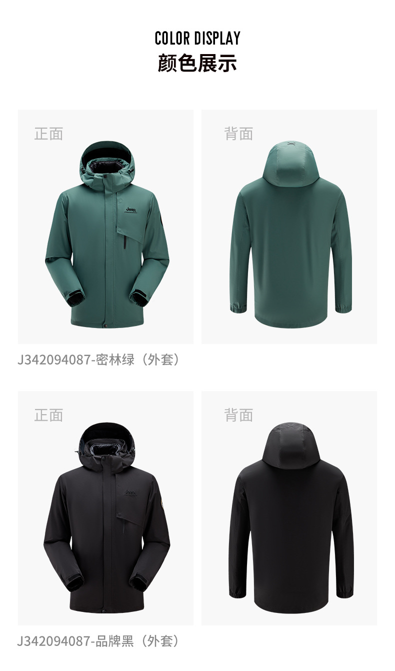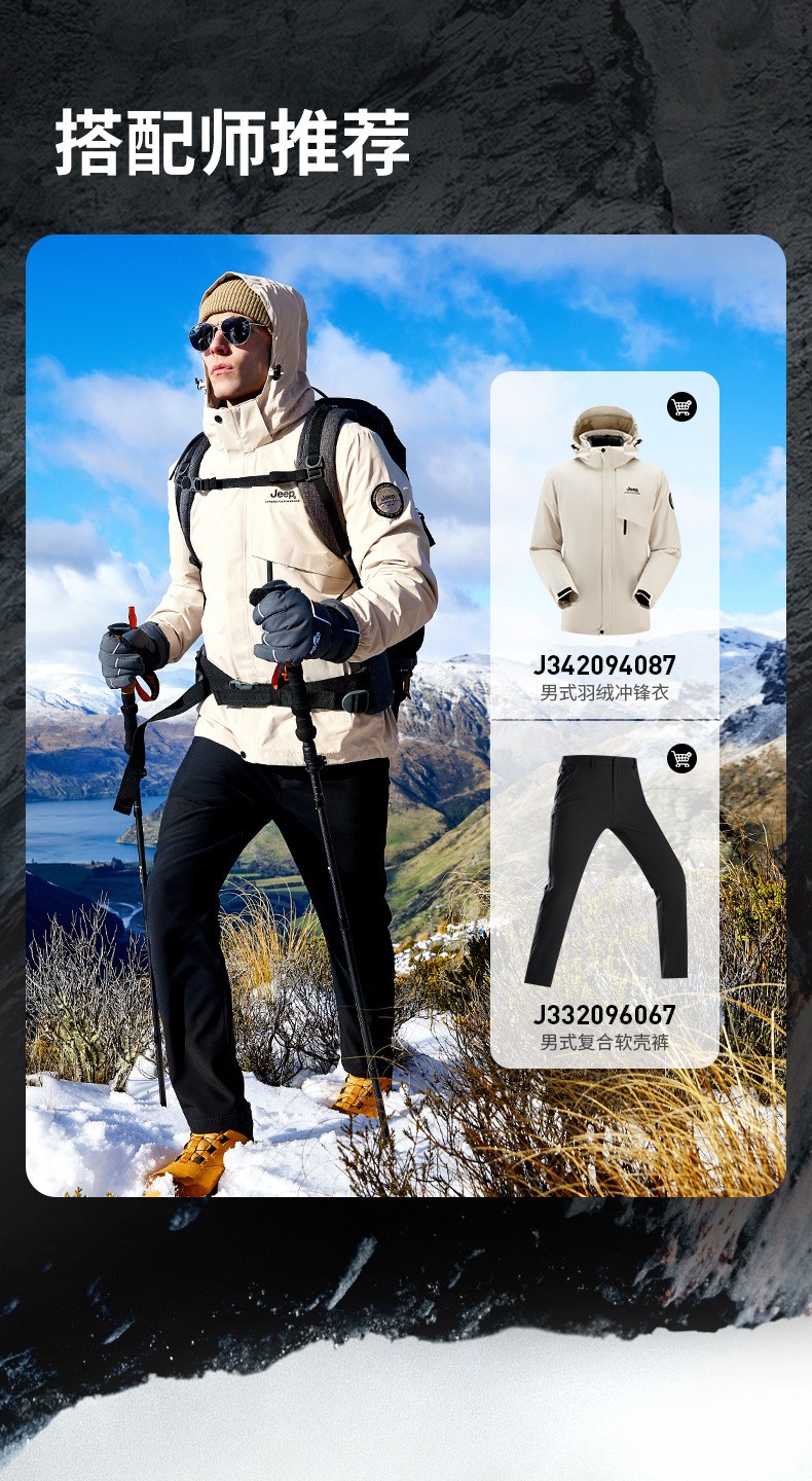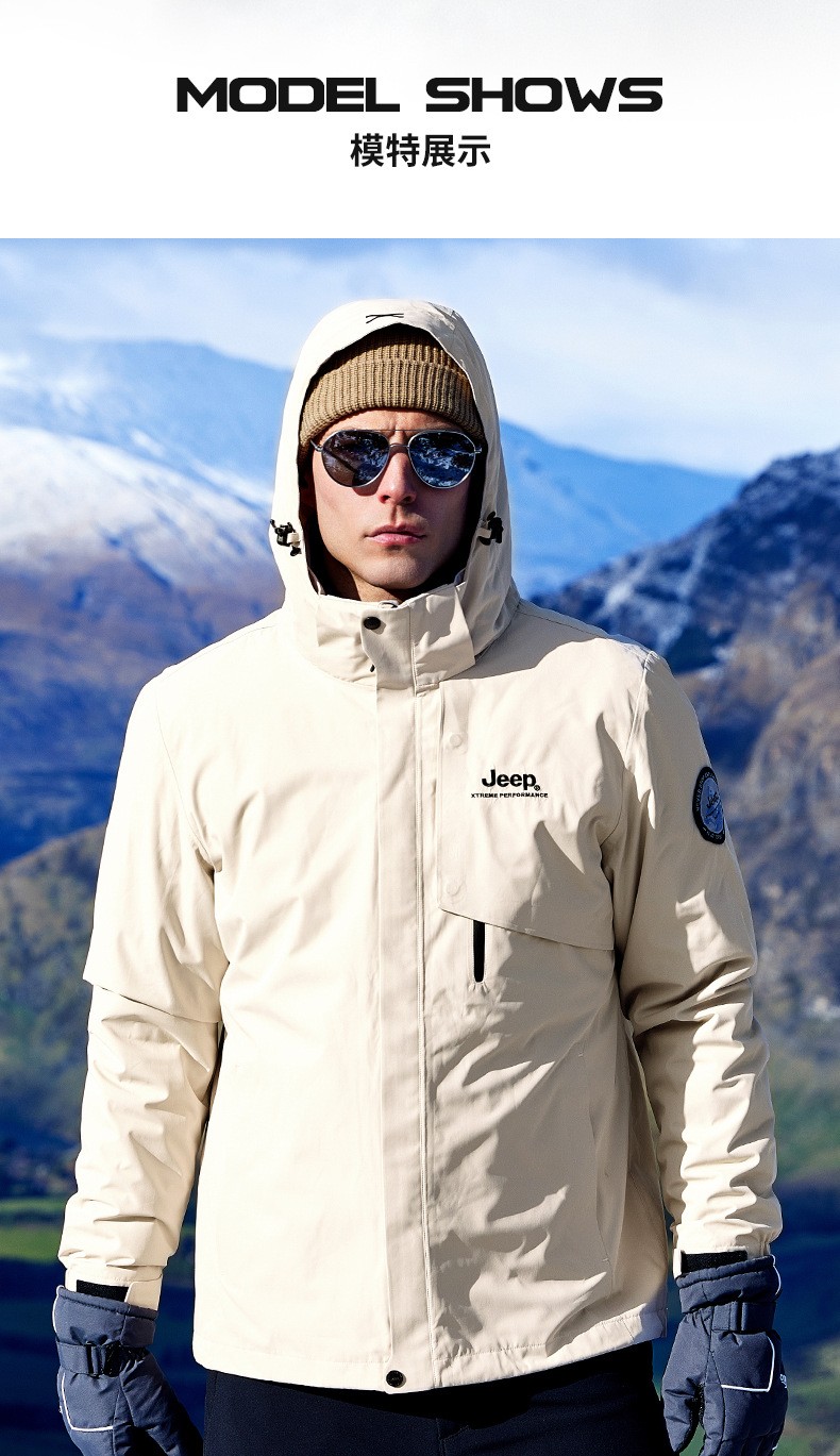 JEEP 秋冬季新款男式冲锋衣羽绒两件套防水透湿耐磨保暖舒适J342094087